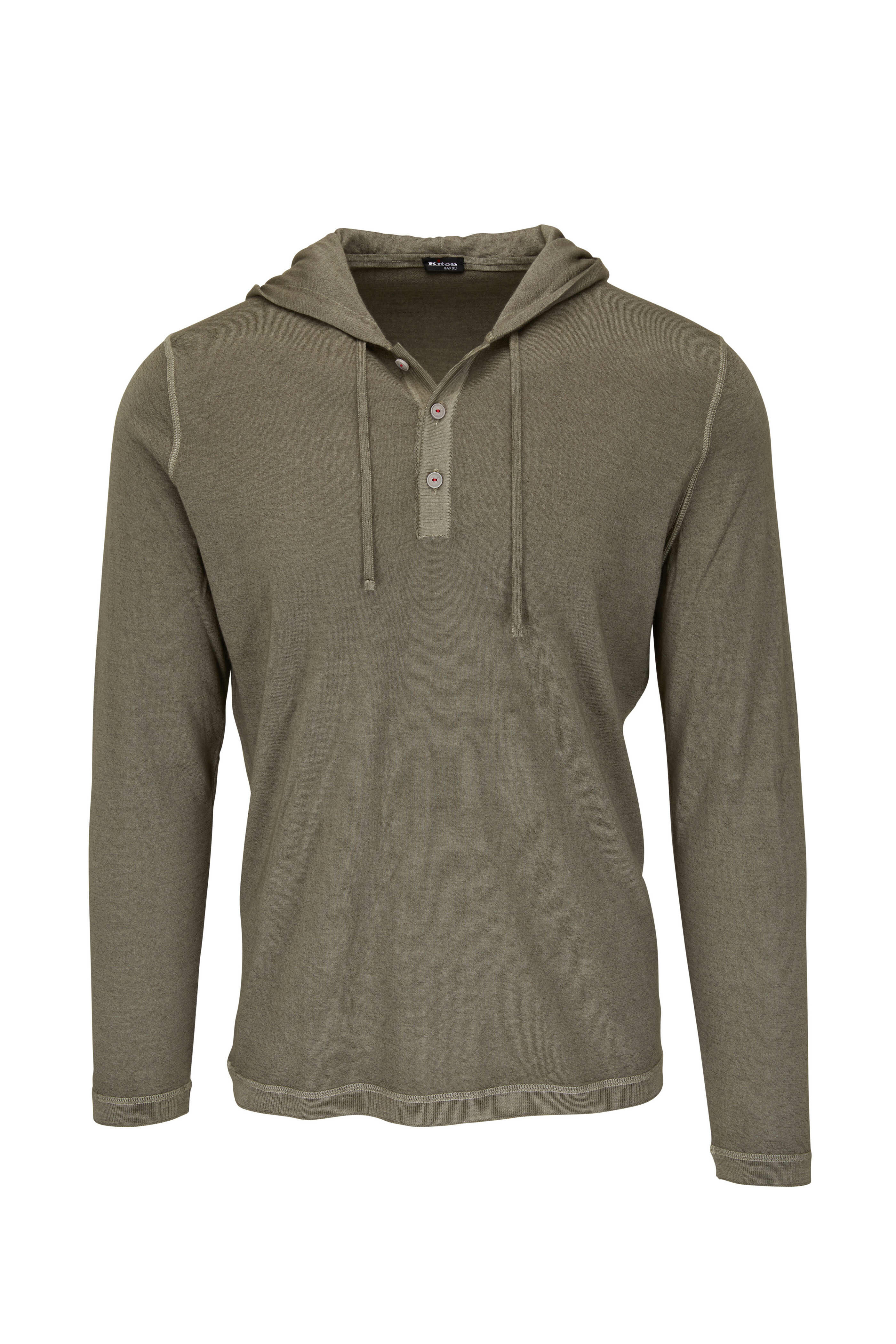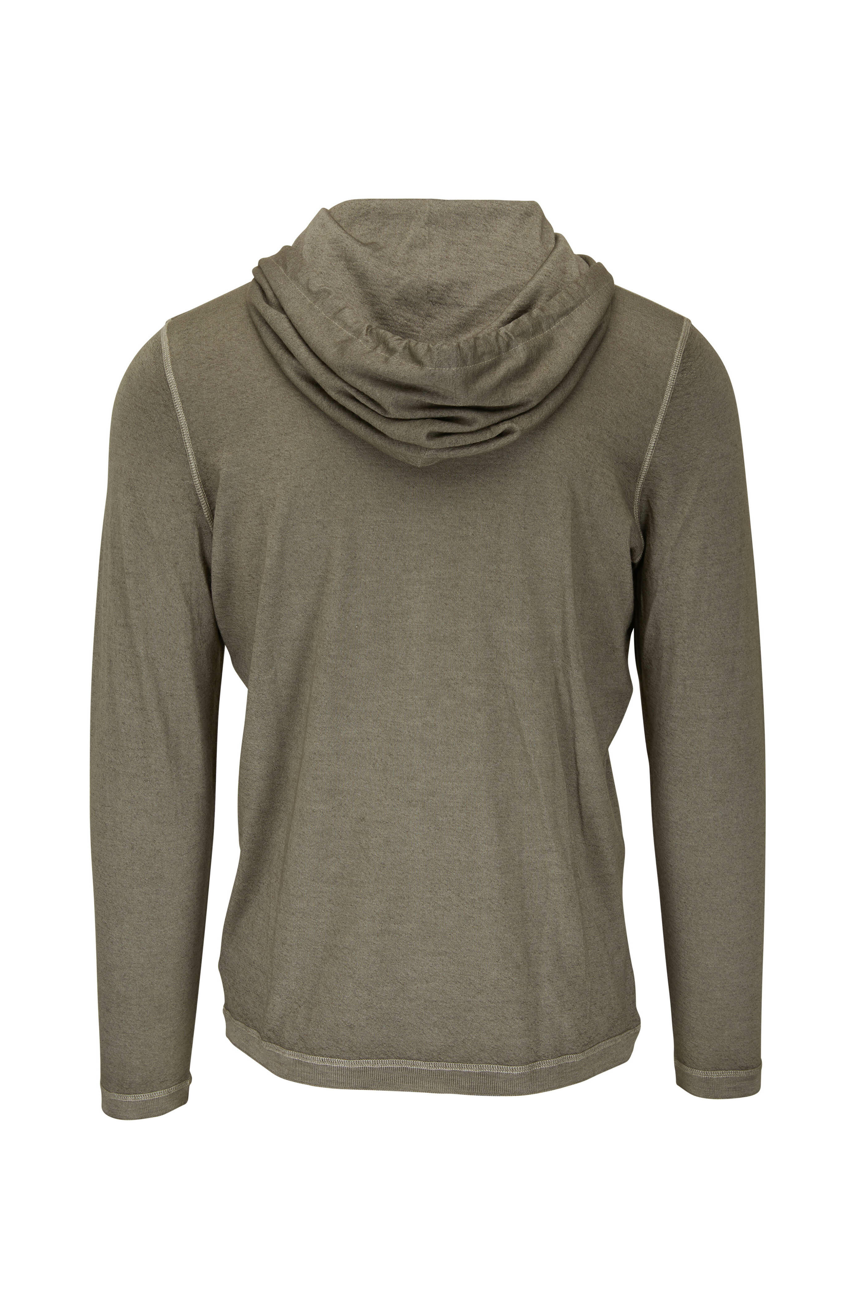 Attached drawstring hood. Quarter-button placket. Made in Italy. 80% cashmere, 20% silk. Dry clean.