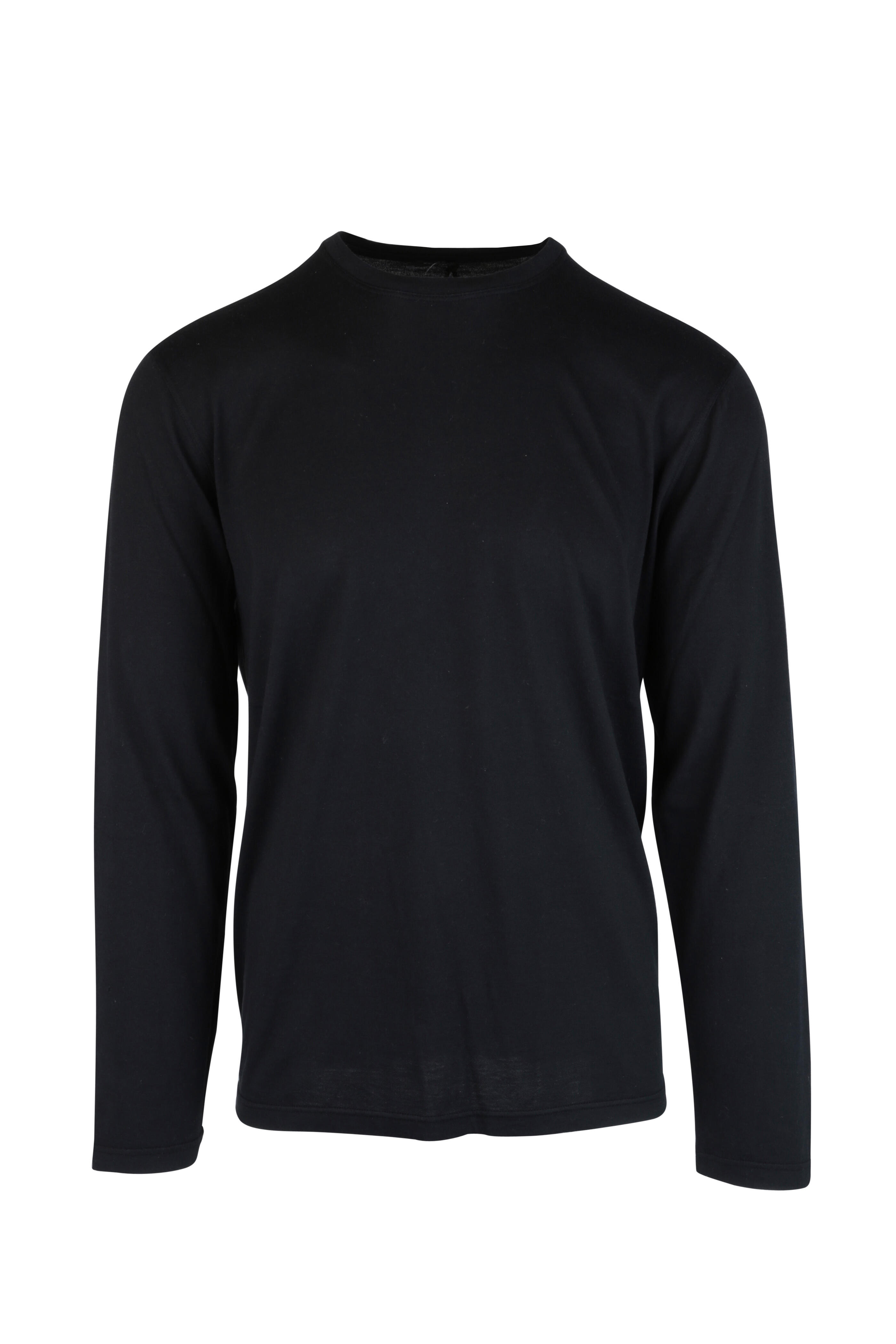 Black Cotton & Cashmere Long Sleeve T-Shirt
