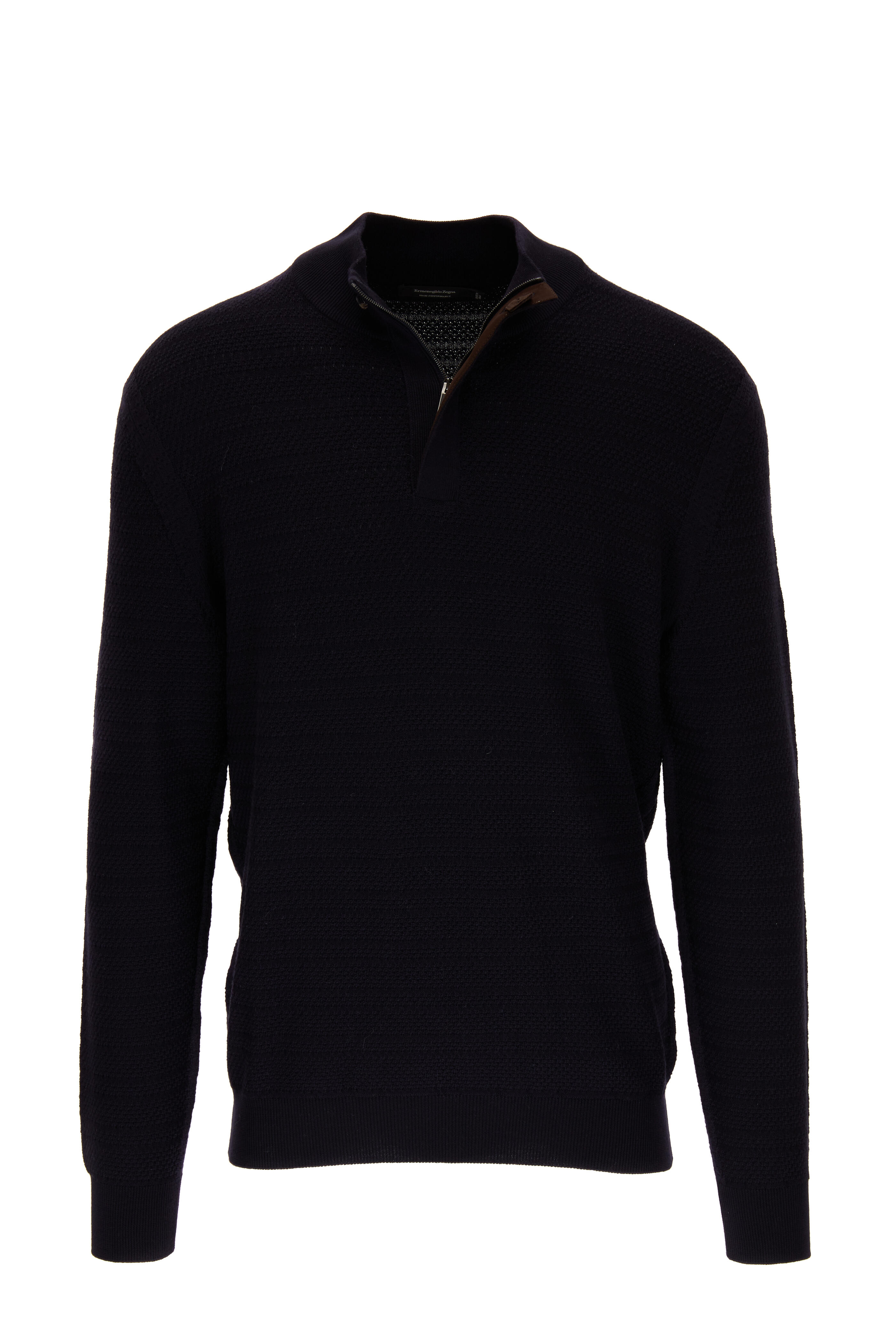 • Zegna - Navy Wool Quarter-Zip Pullover