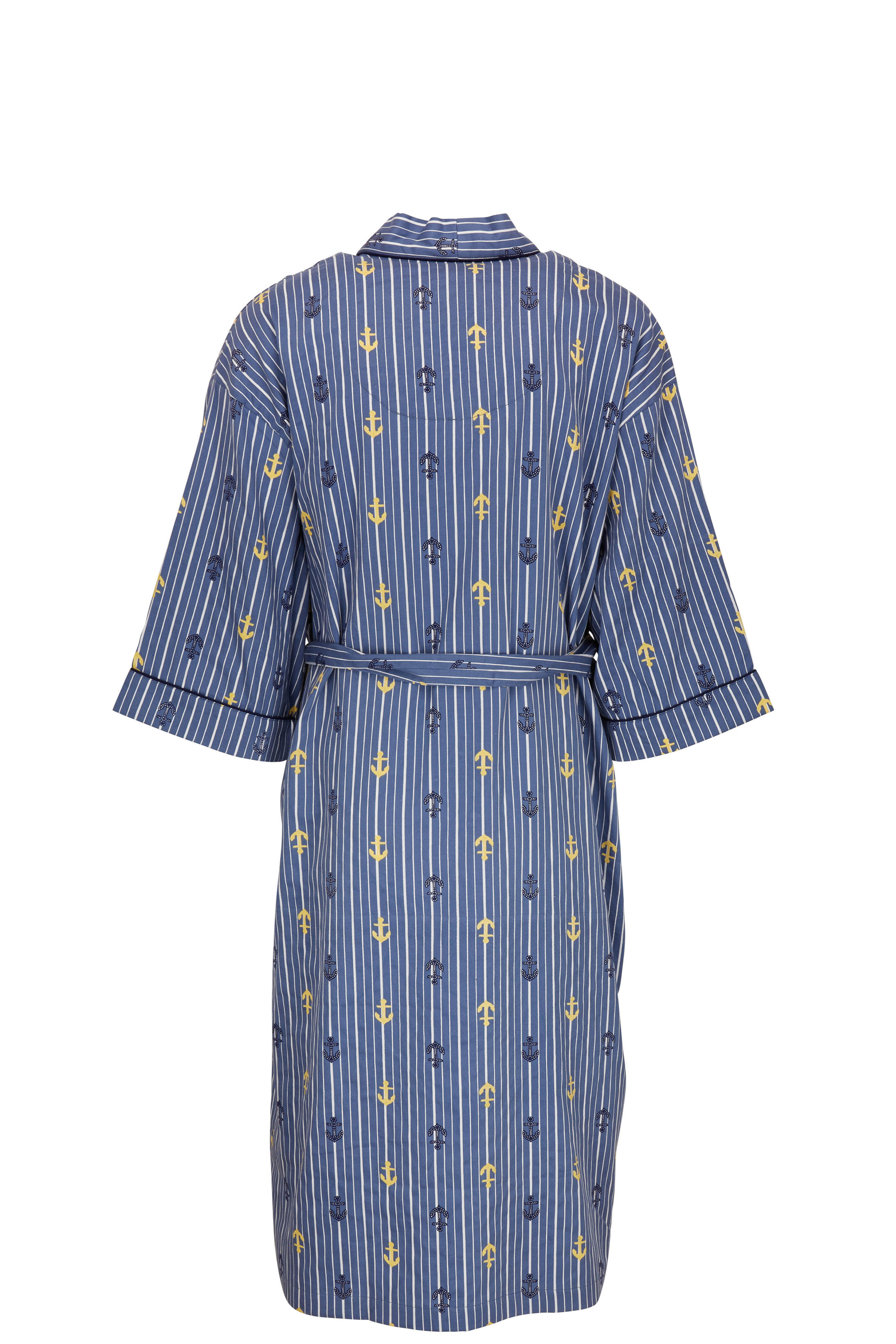 Open front; self belt. Lower patch pockets. Imported. 100% cotton. Machine wash.