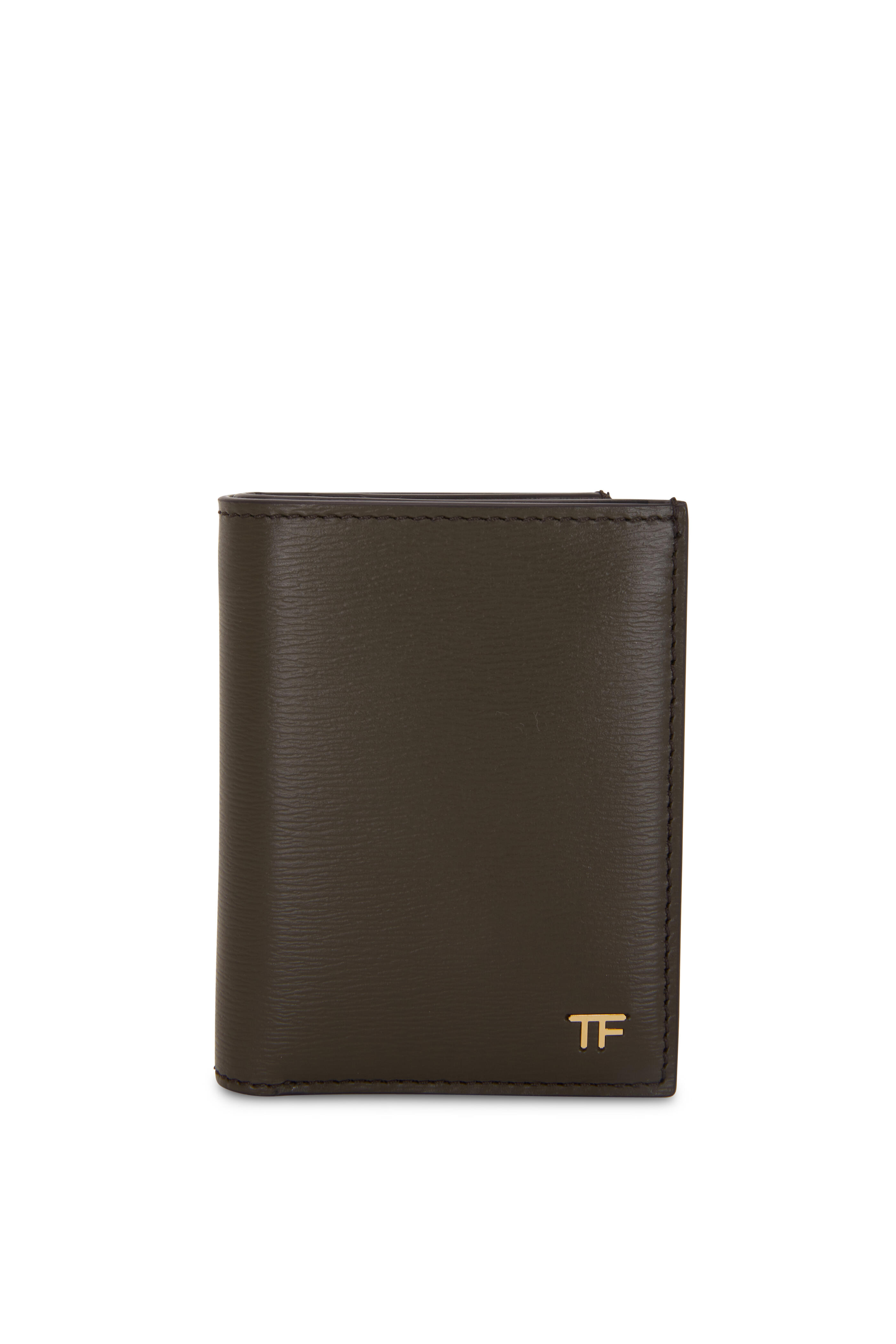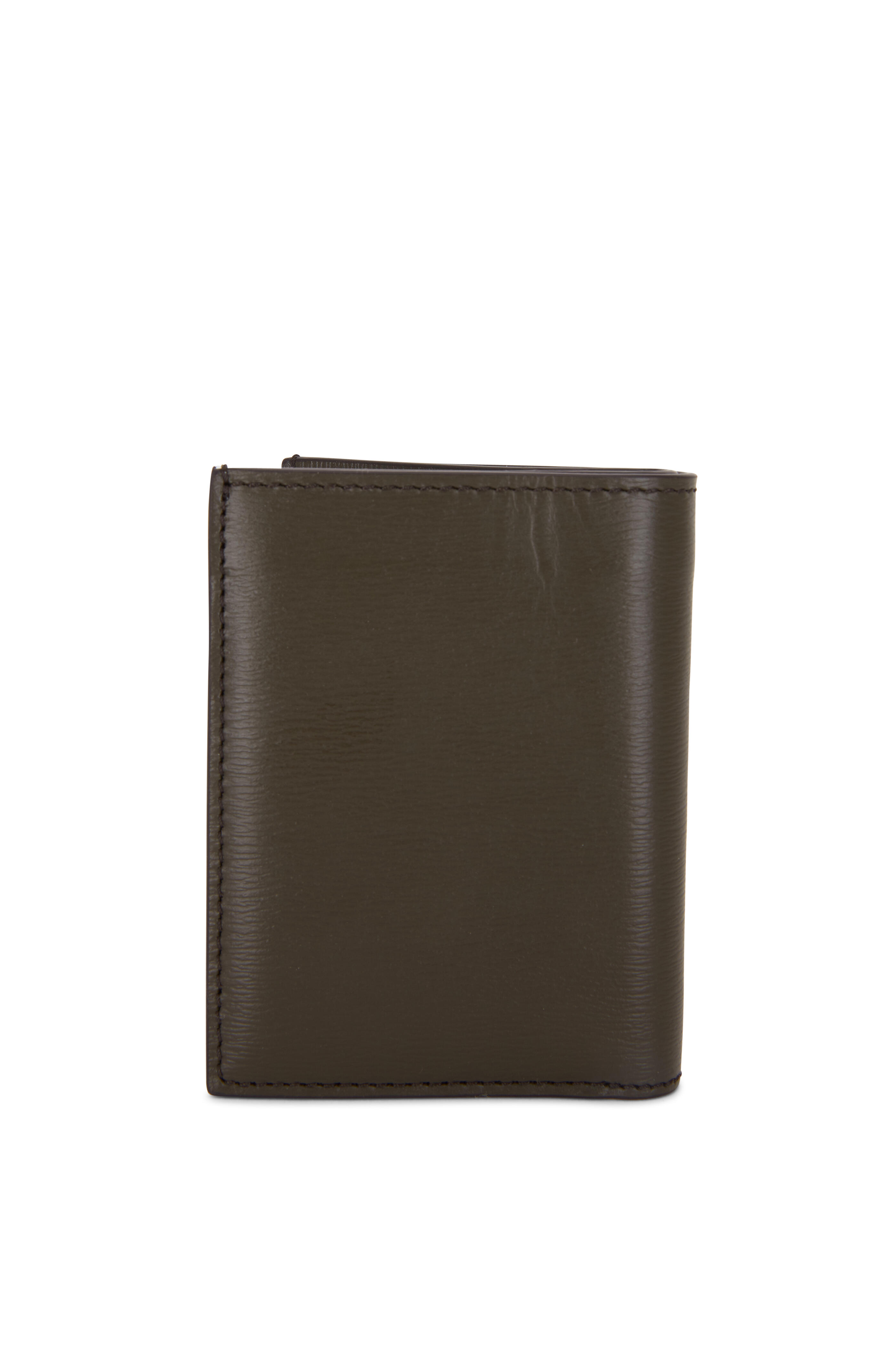 T-Line Olive Green Grained Leather Small Wallet