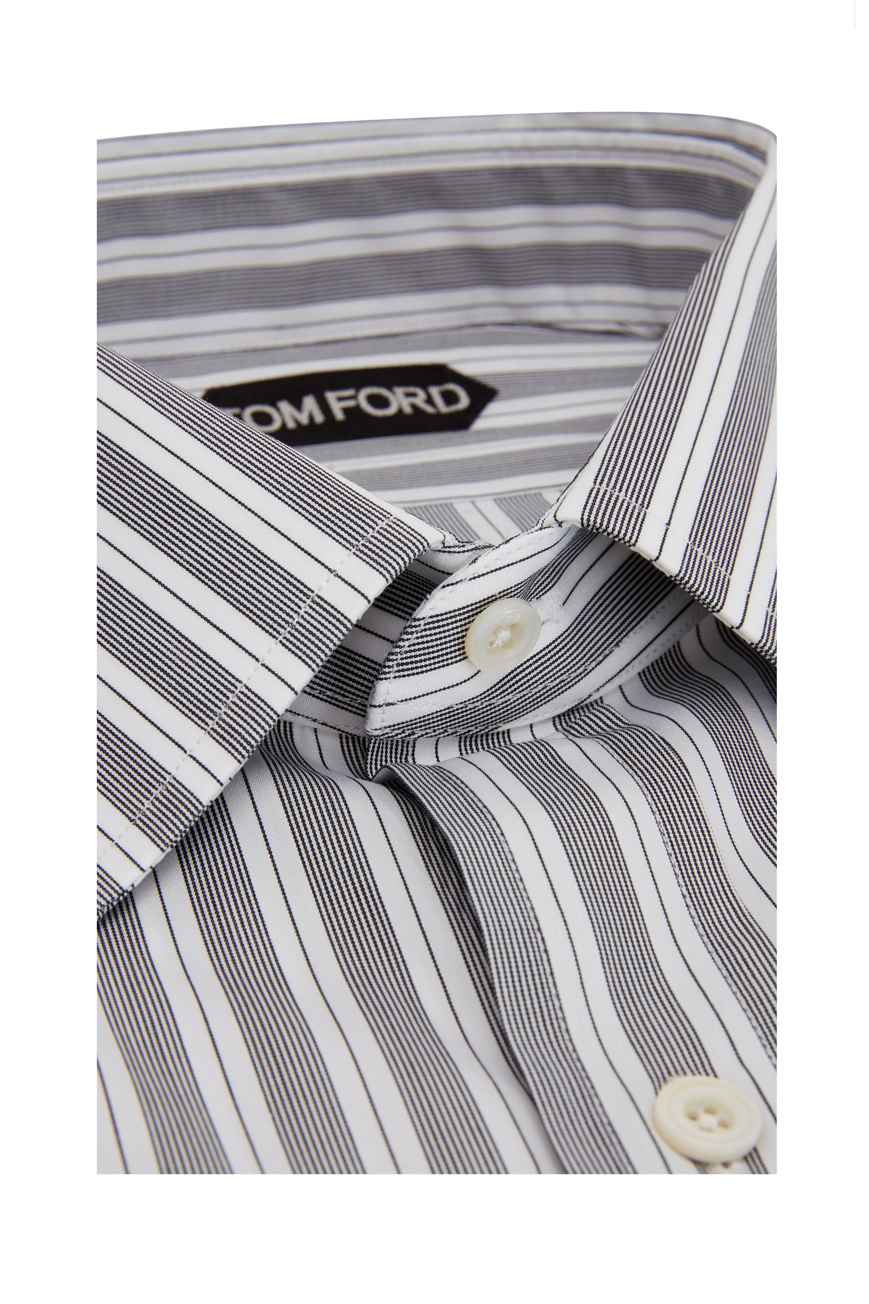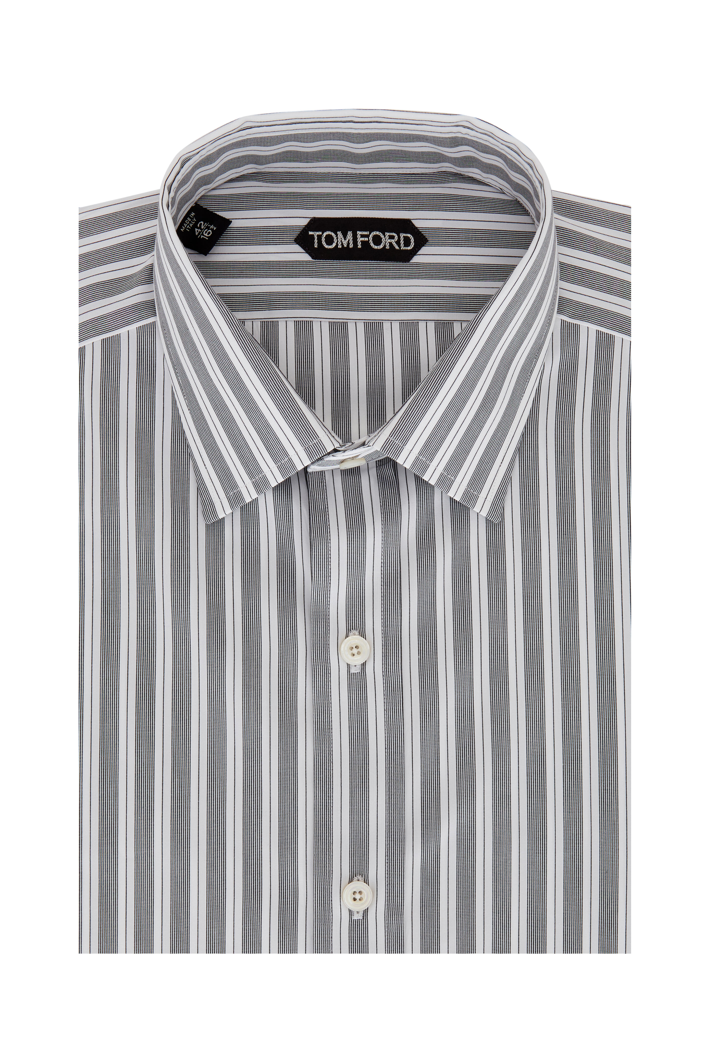 Spread collar. Double button mitered cuffs. Made in Italy. 100% cotton. Dry clean.