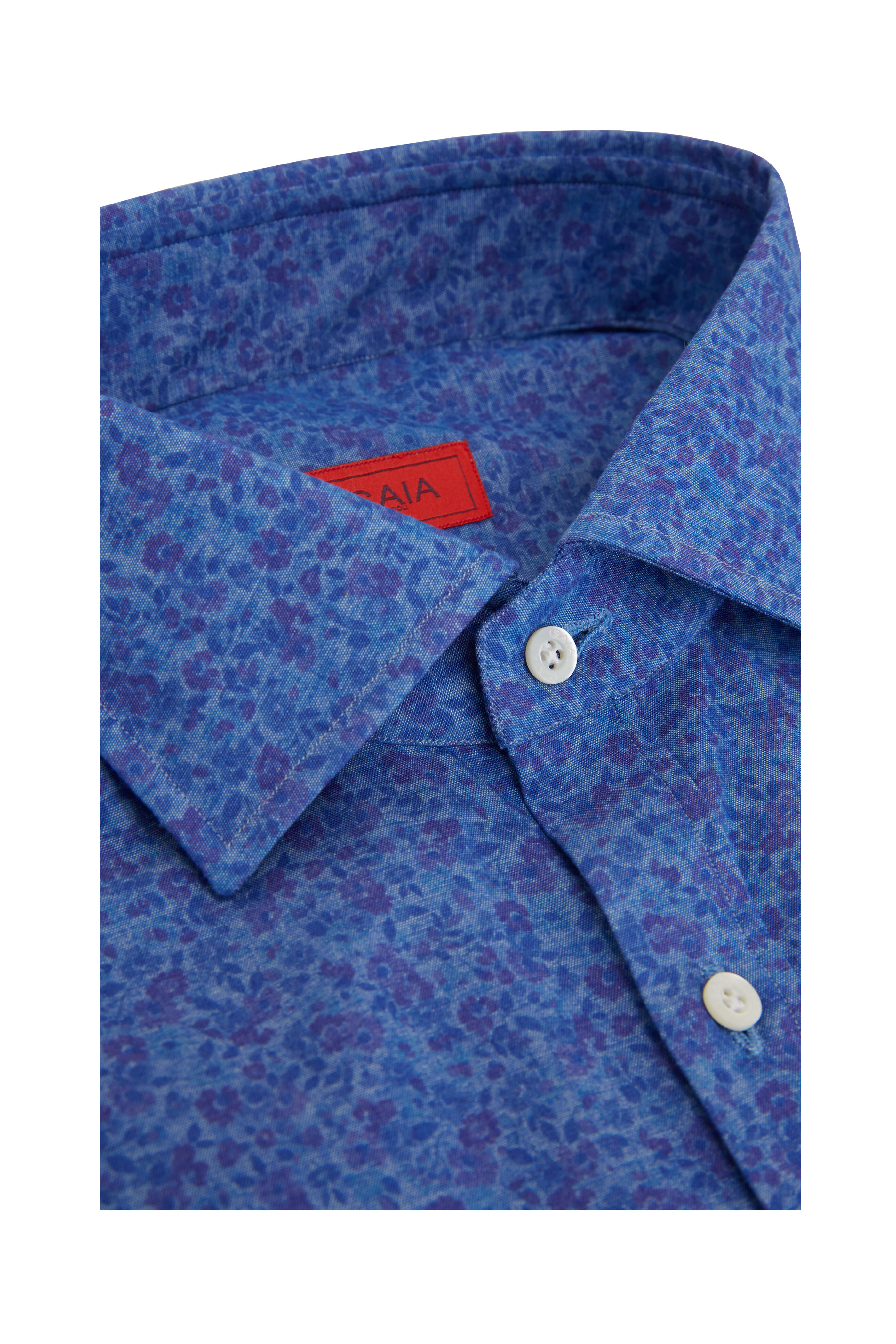Spread collar. Single button barrel cuffs. Made in Italy. 100% cotton. Machine wash.