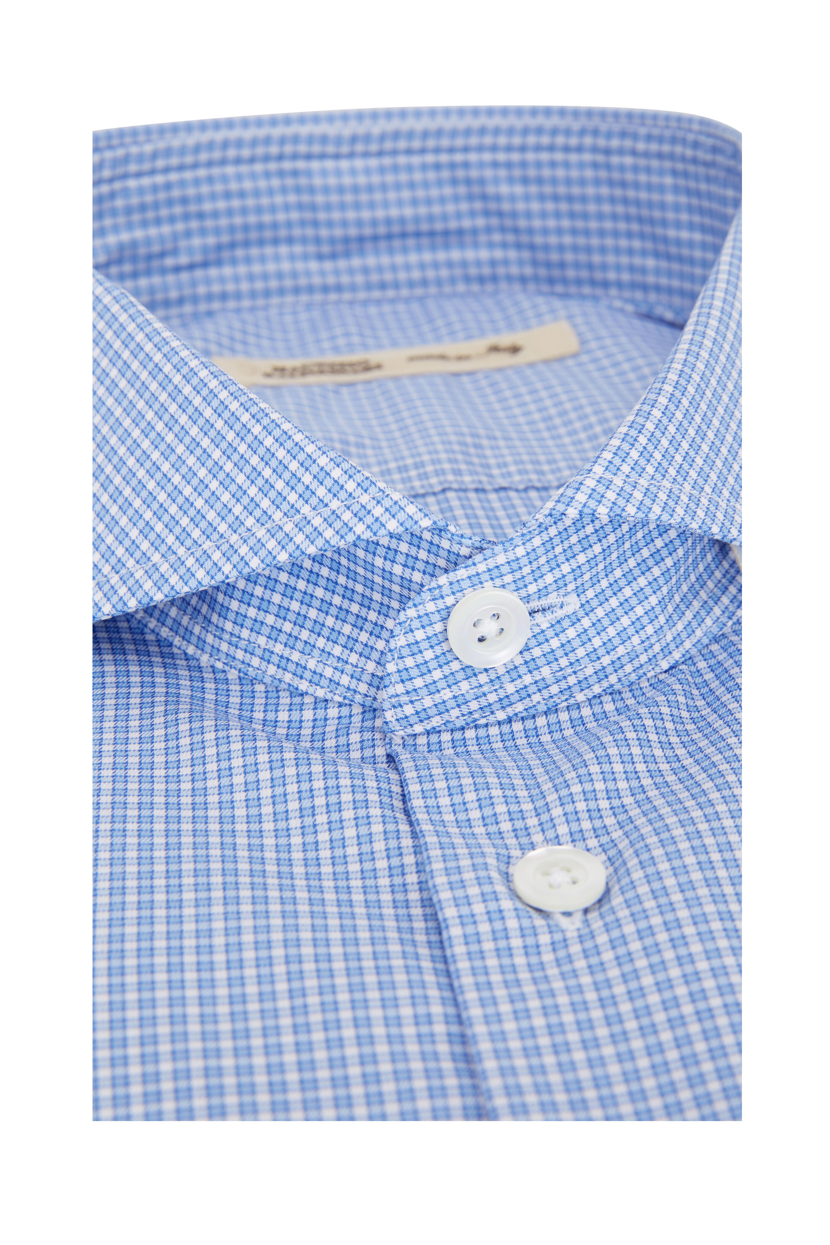 Spread collar. Single button barrel cuffs. Made in Italy. 100% cotton. Machine wash.