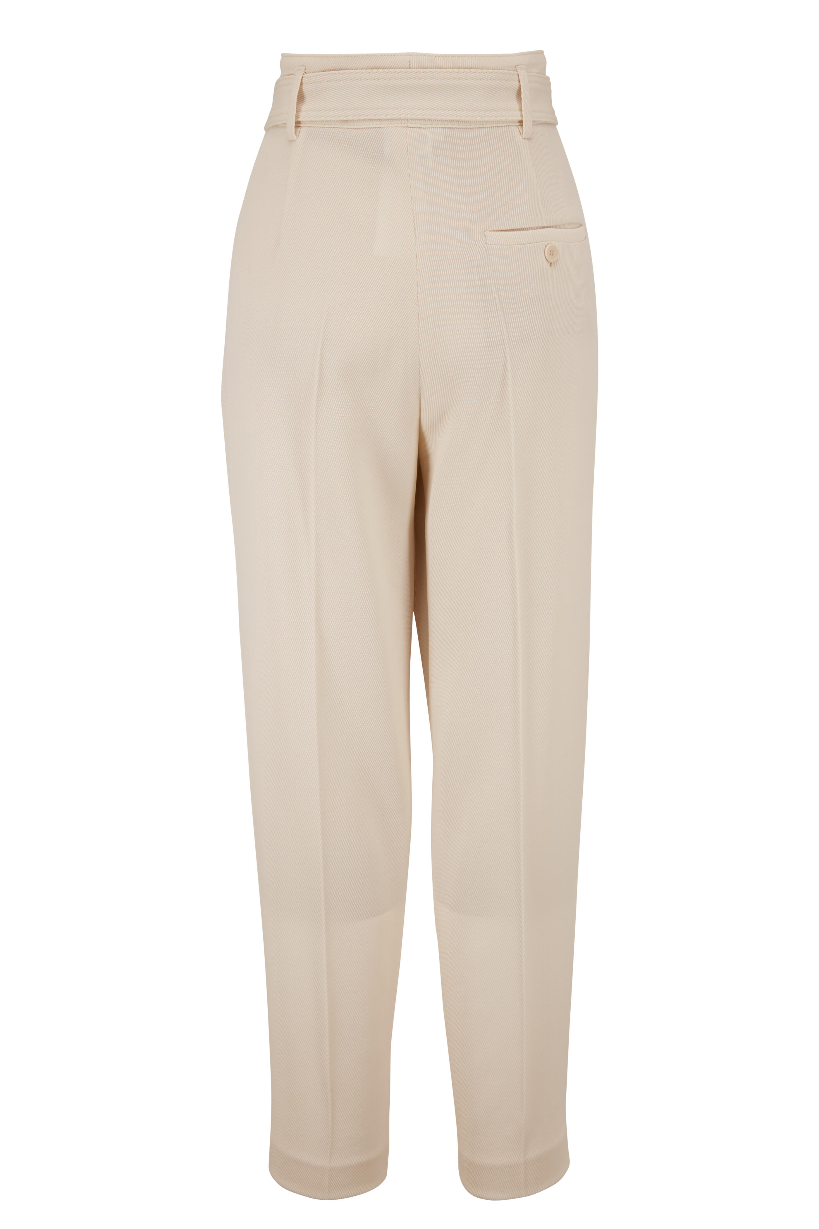 Fred Beige Wool High-Rise Belted Pleat Pant