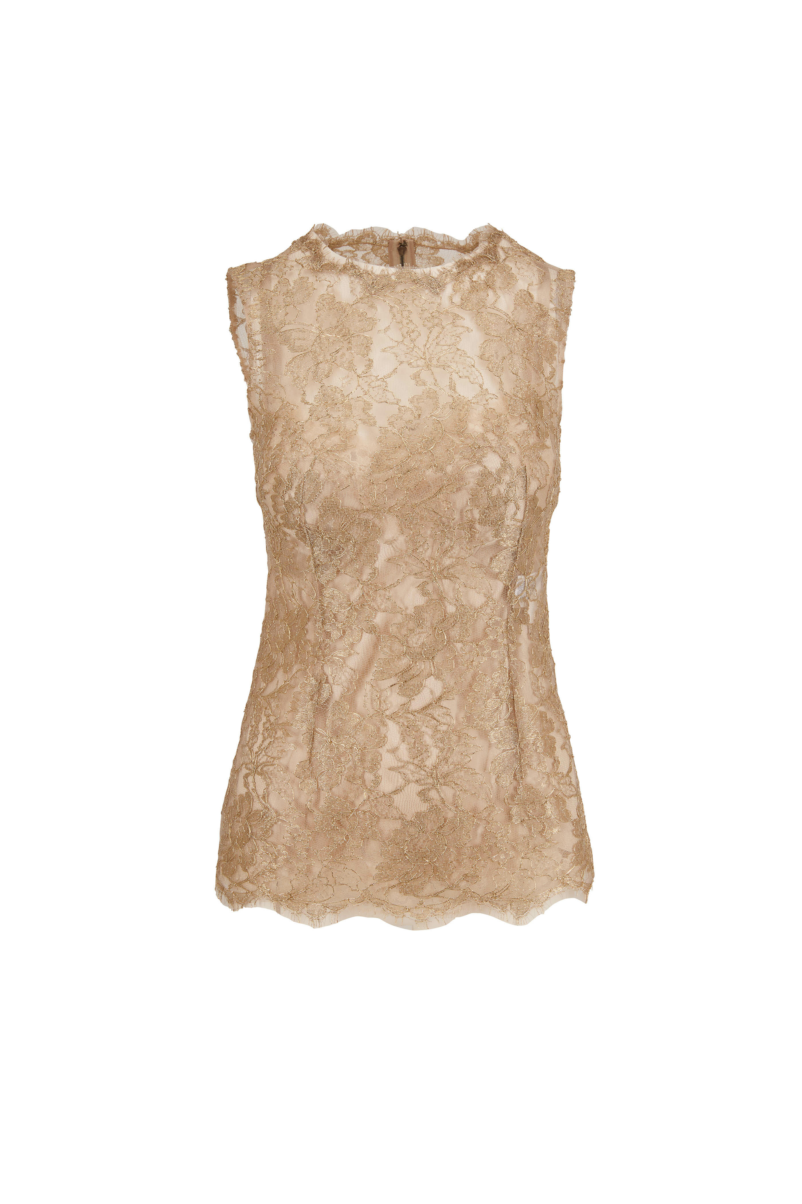 Round neckline. Concealed back zip closure. Shaping darts. Flared hem. Scalloped edges. Made in Italy. 70% polyamide, 19% polyester, 11% metallic; lined. Dry clean.