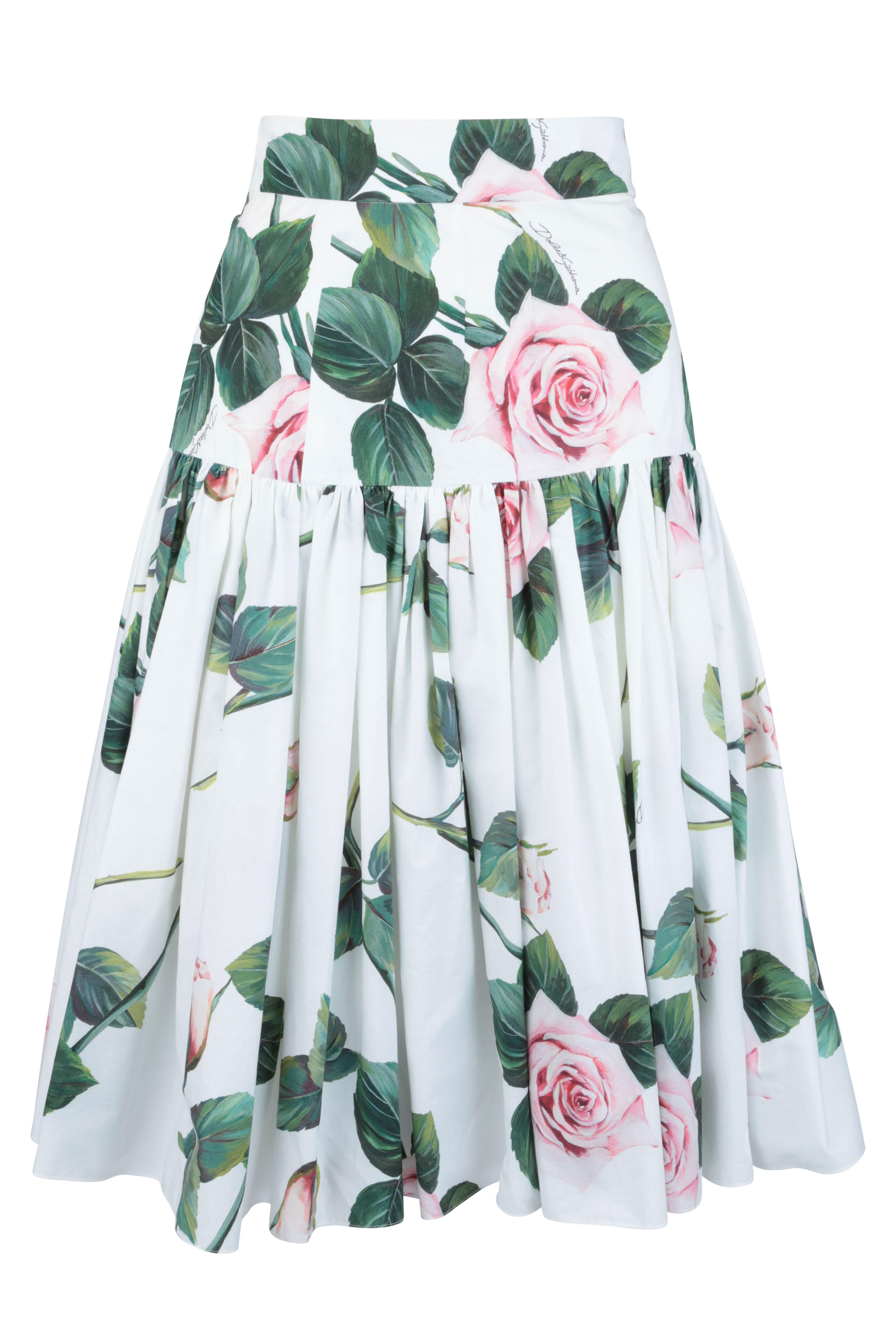 Banded waist. Concealed side zip and snap button closure. Pleated hem. Made in Italy. Length: 27". 100% cotton; partially lined. Dry clean.