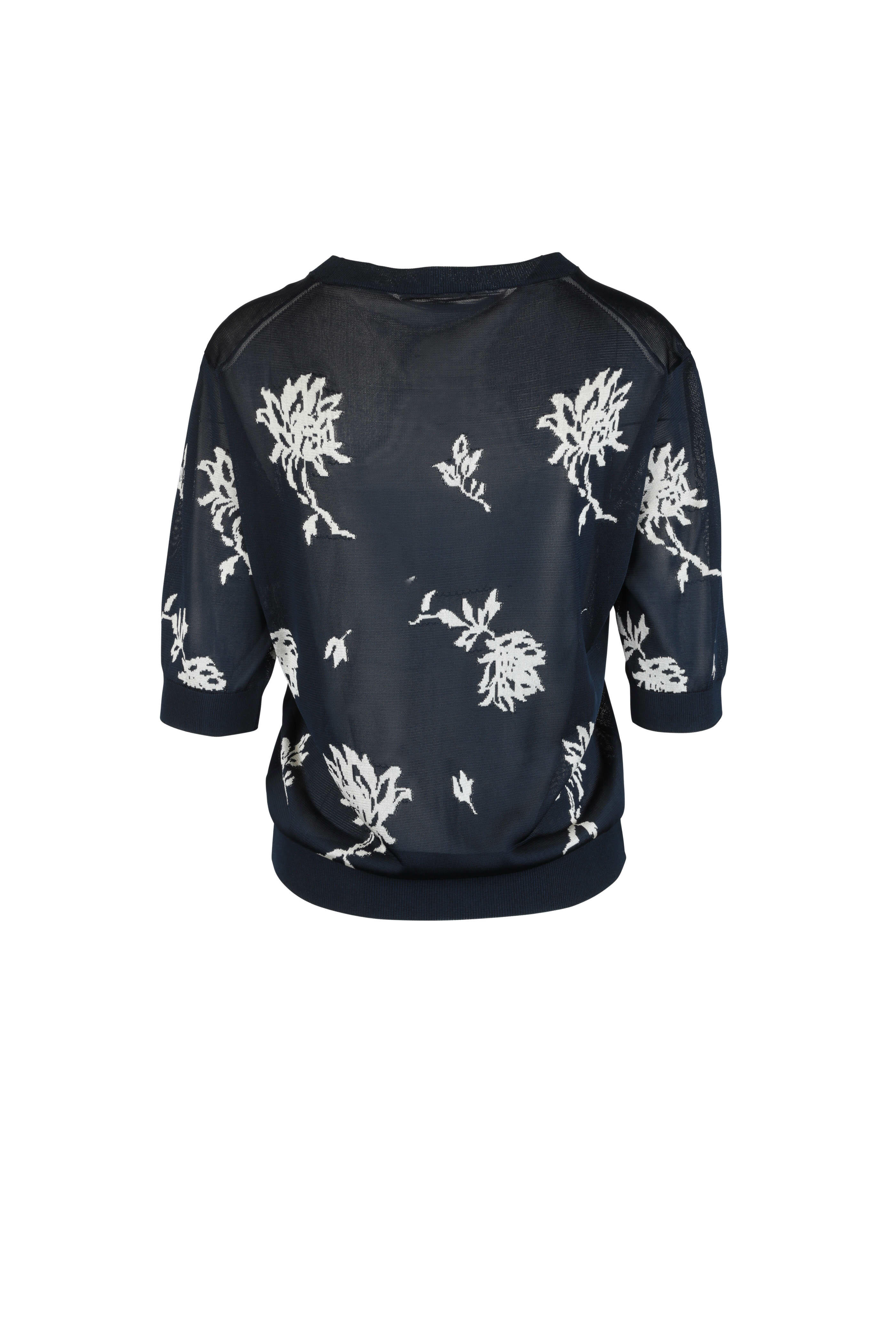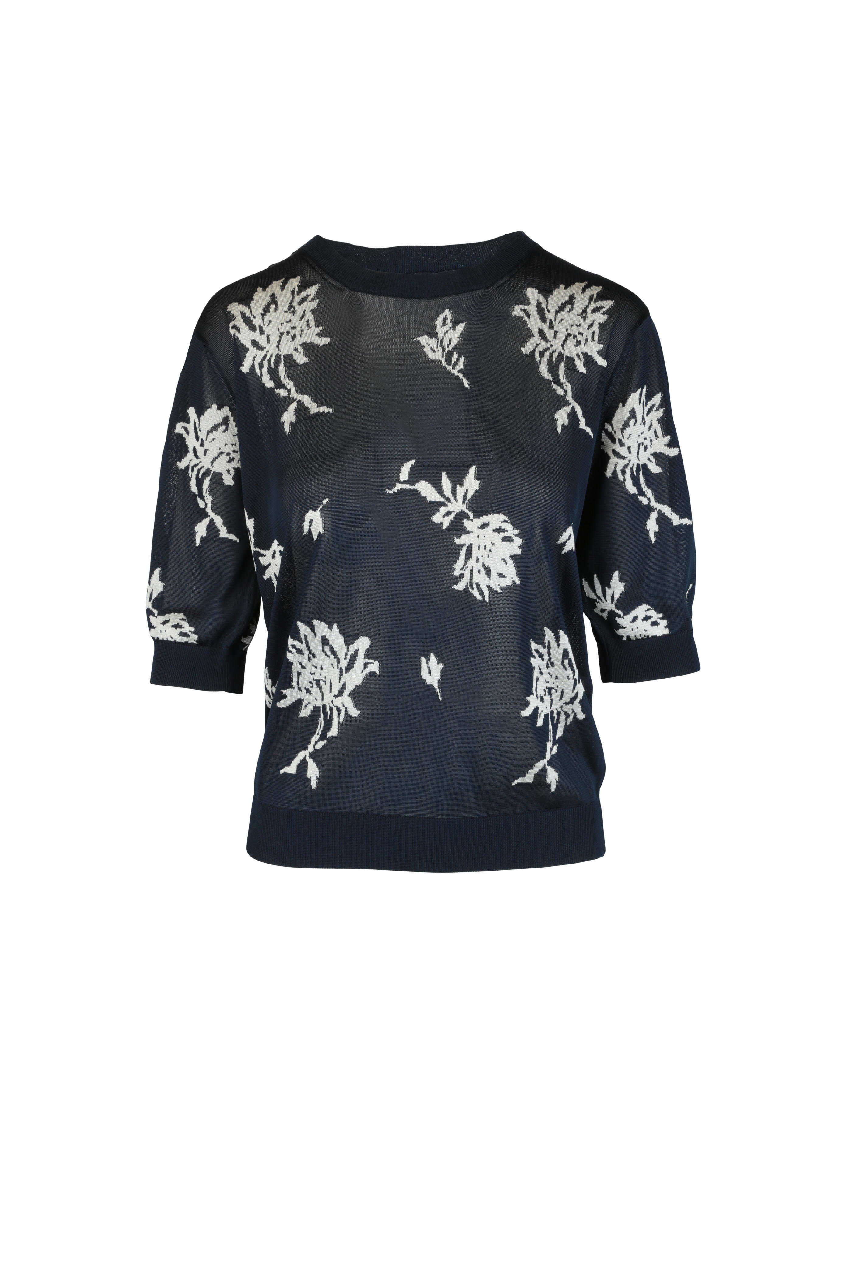 Round neckline. Ribbed trim. Made in Italy. 100% viscose. Dry clean.