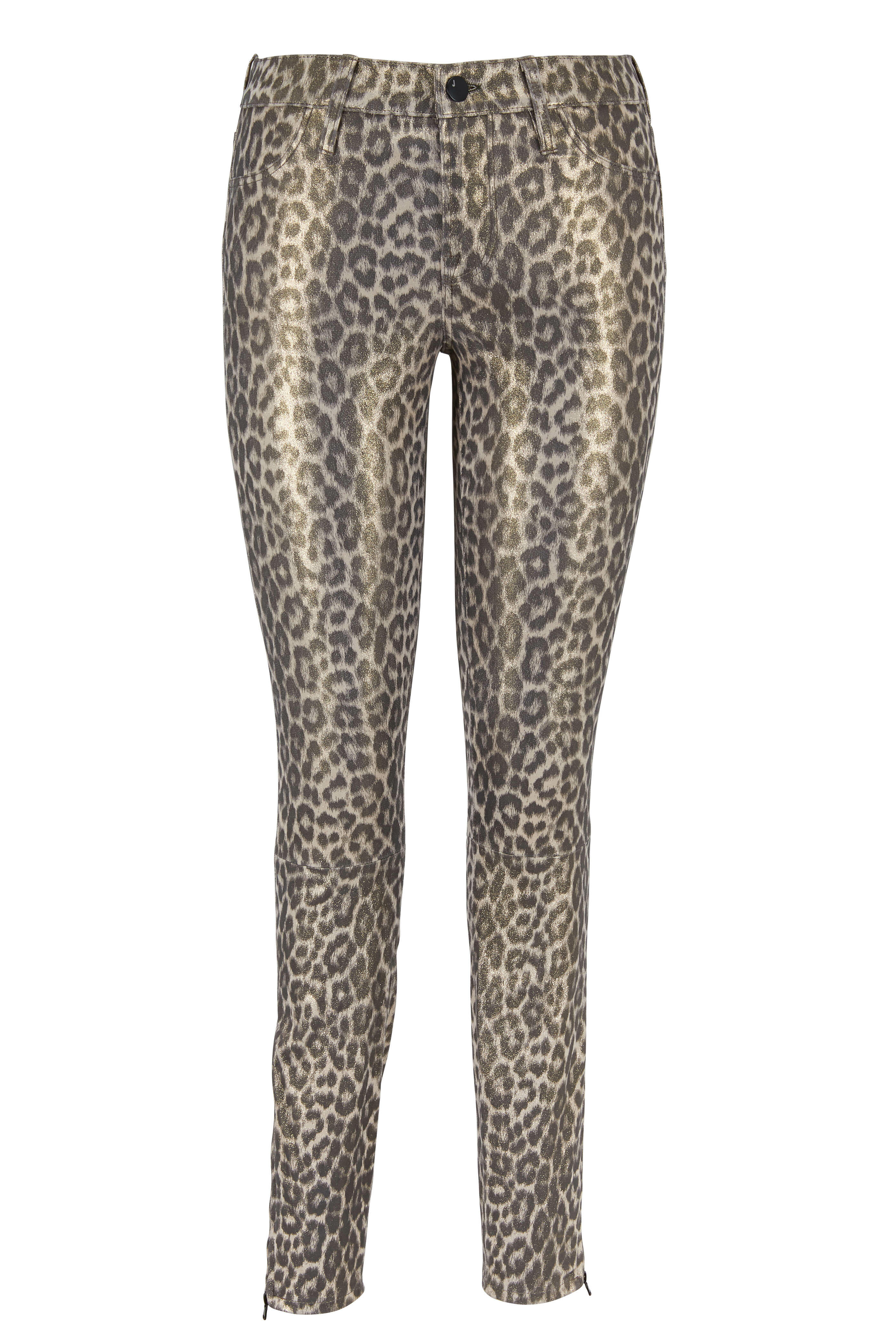 Metallic Jaguar Print Leather Mid-Rise Pant