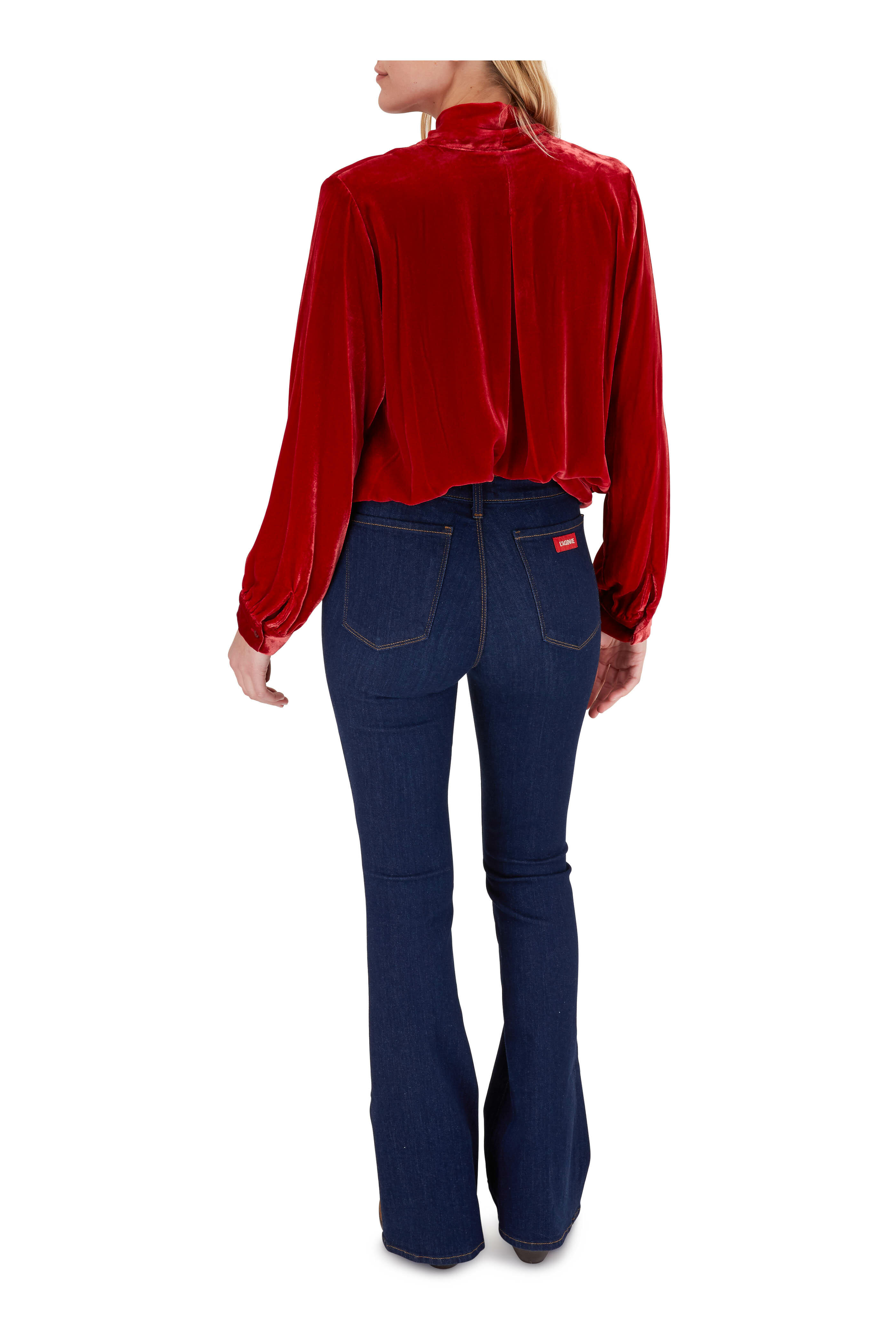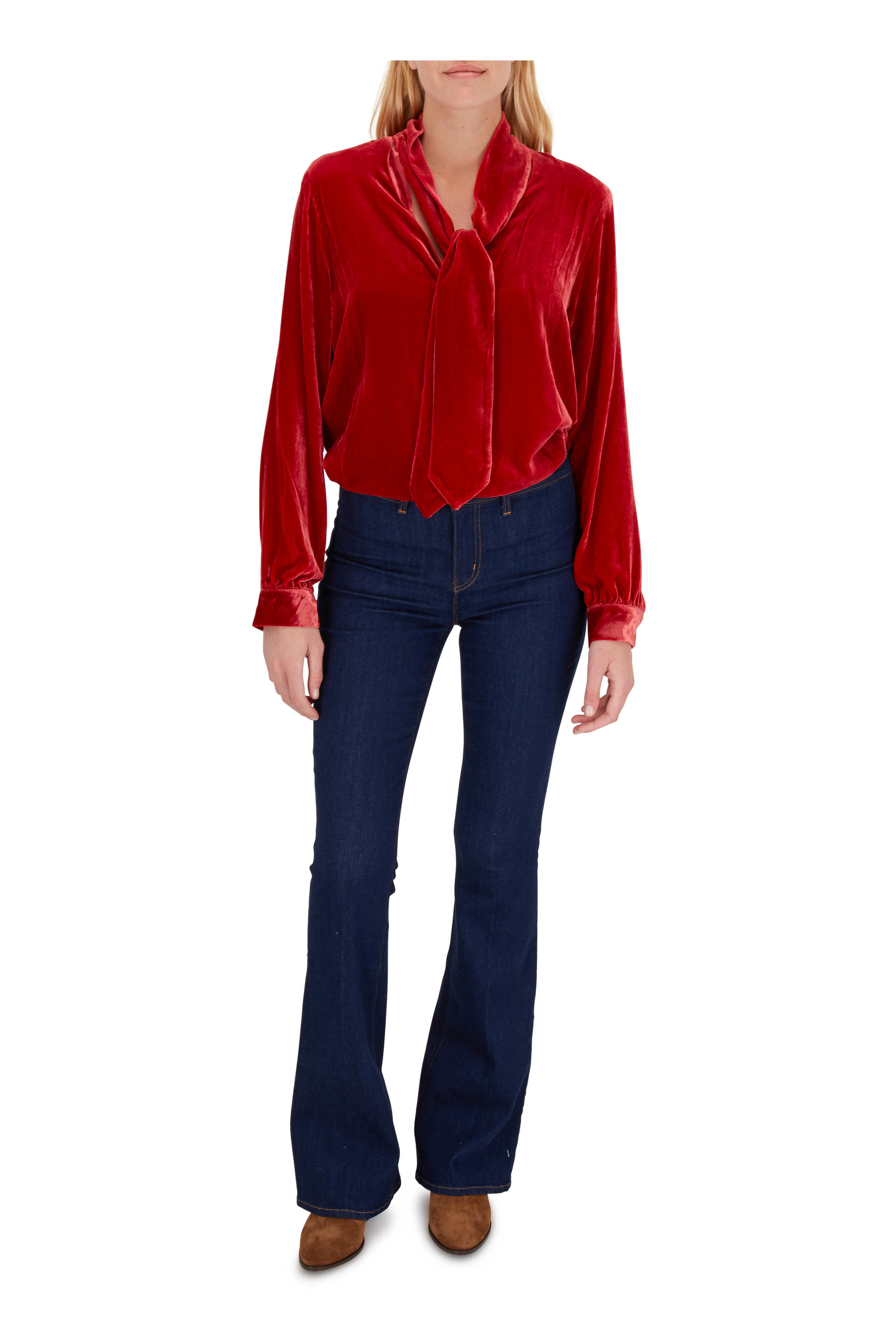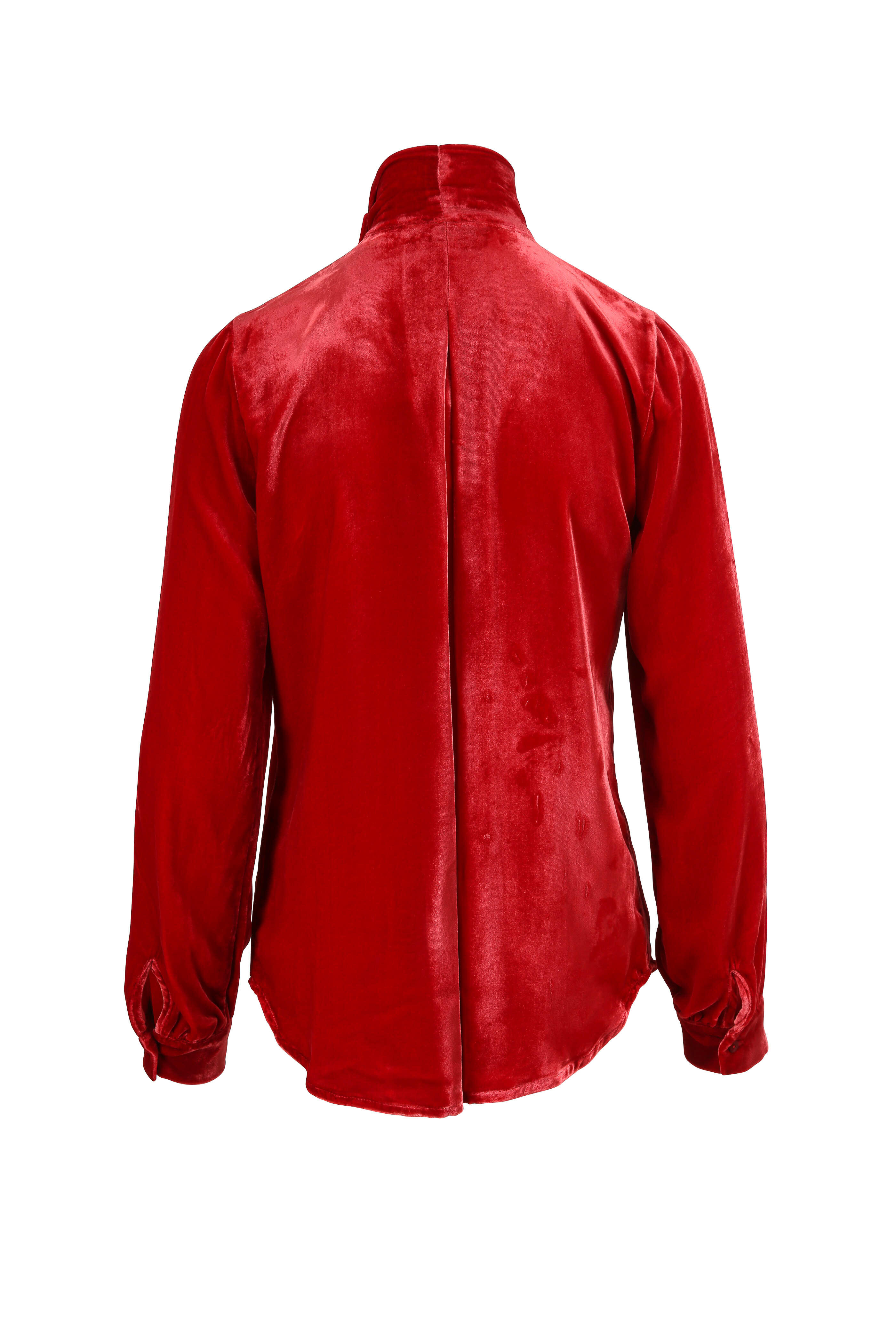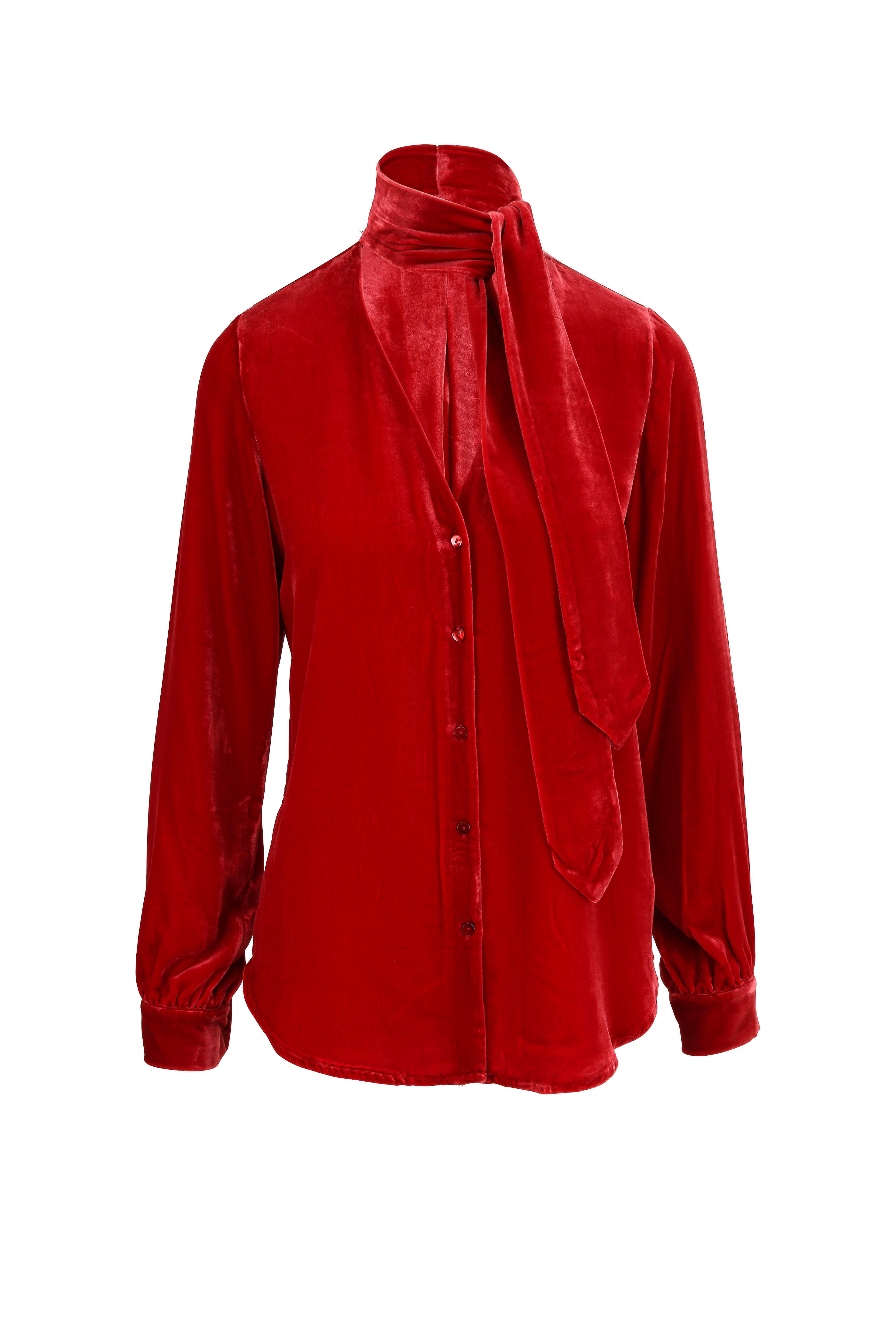 Gisele Barbados Red Velvet Tie Neck Blouse
