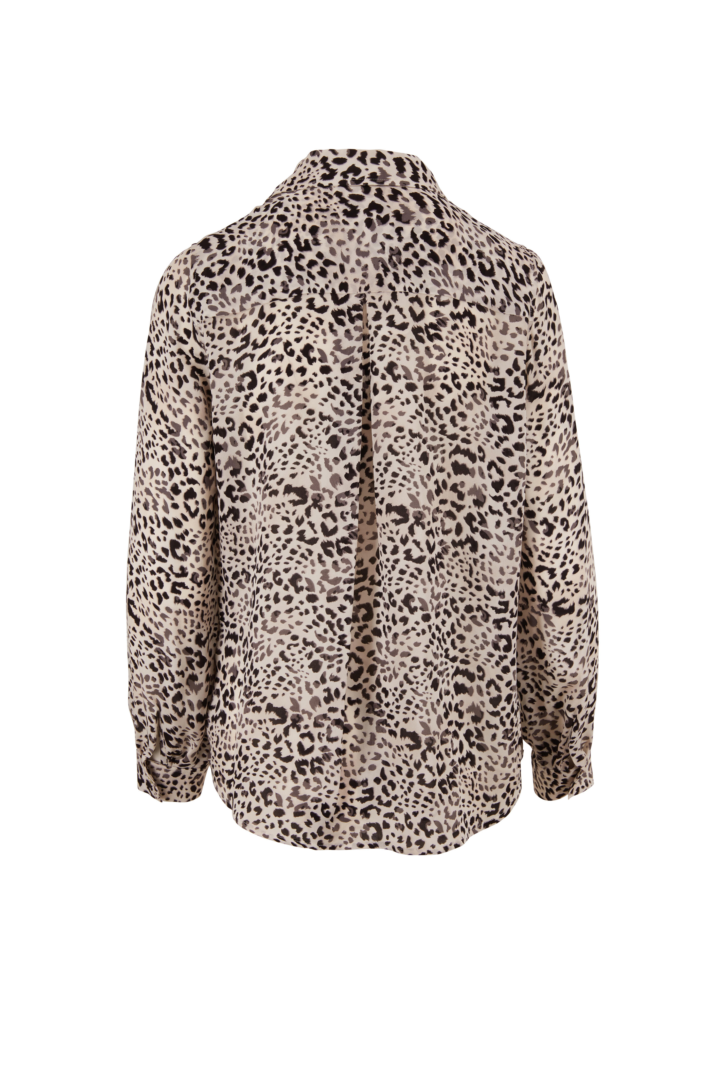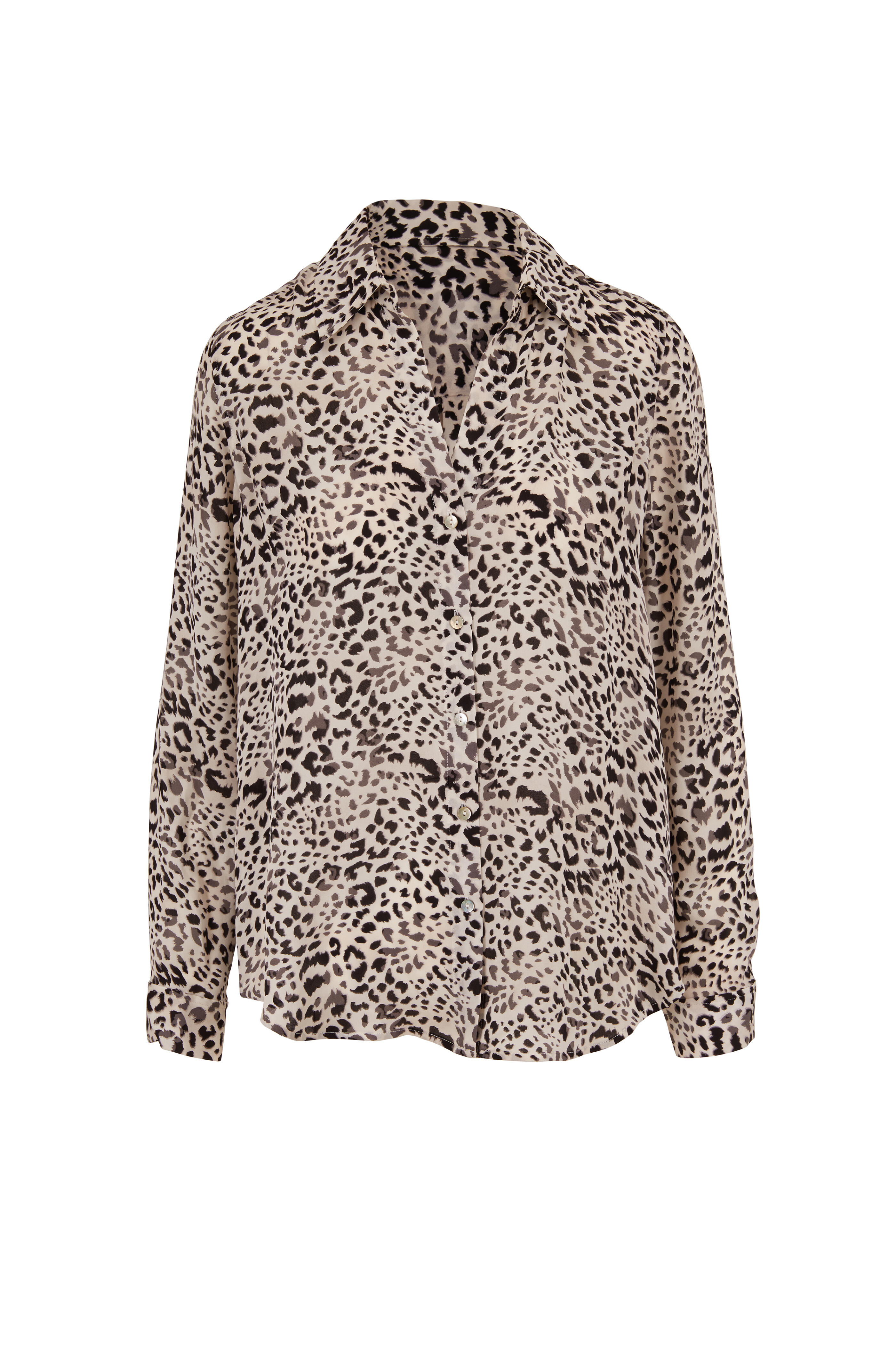 Spread collar. Split neckline. Button-up front closure. Single button squared cuffs. Imported. 100% silk. Dry clean.