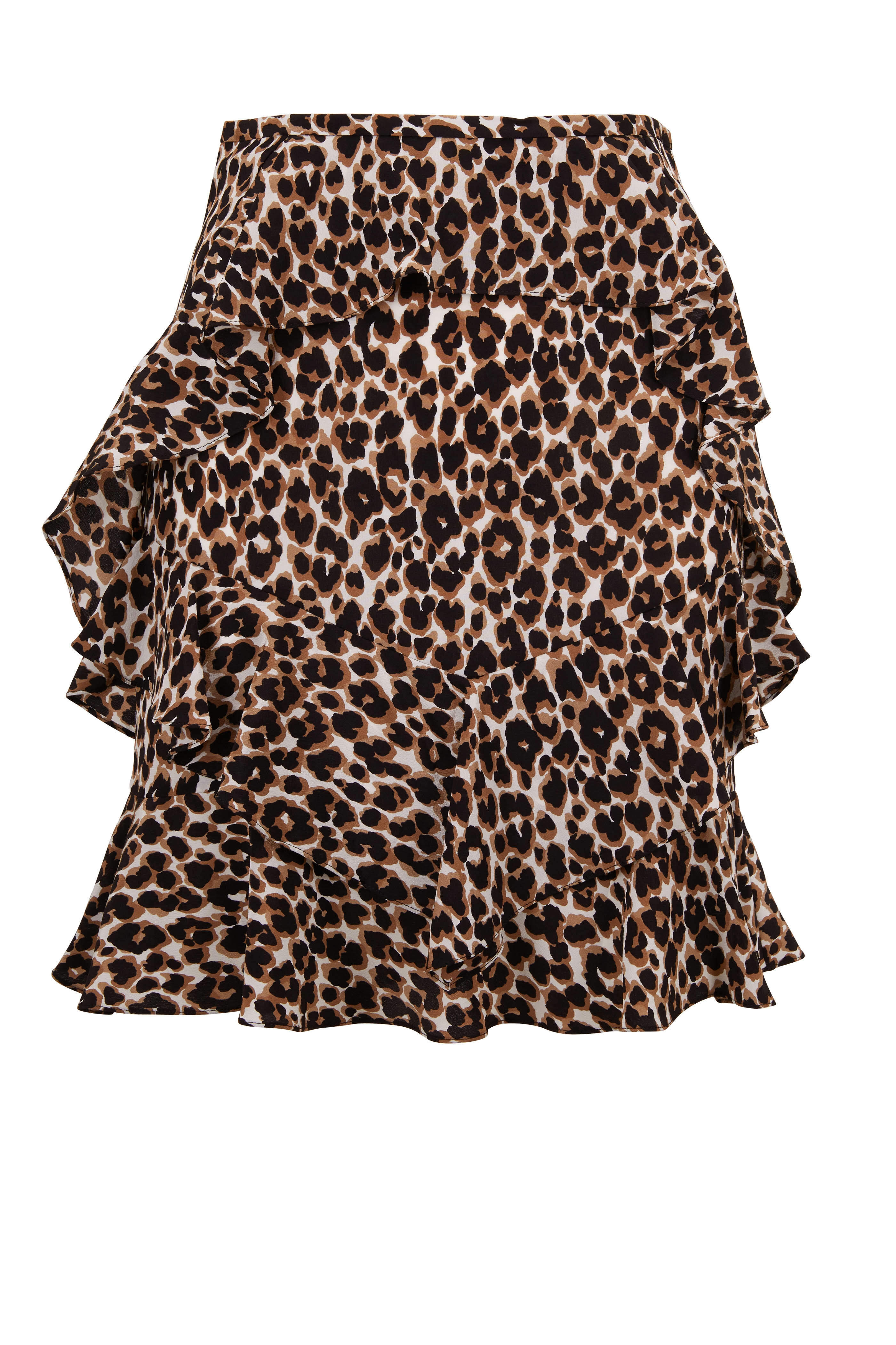 Khaki Crepe De Chine Leopard Ruffle Skirt