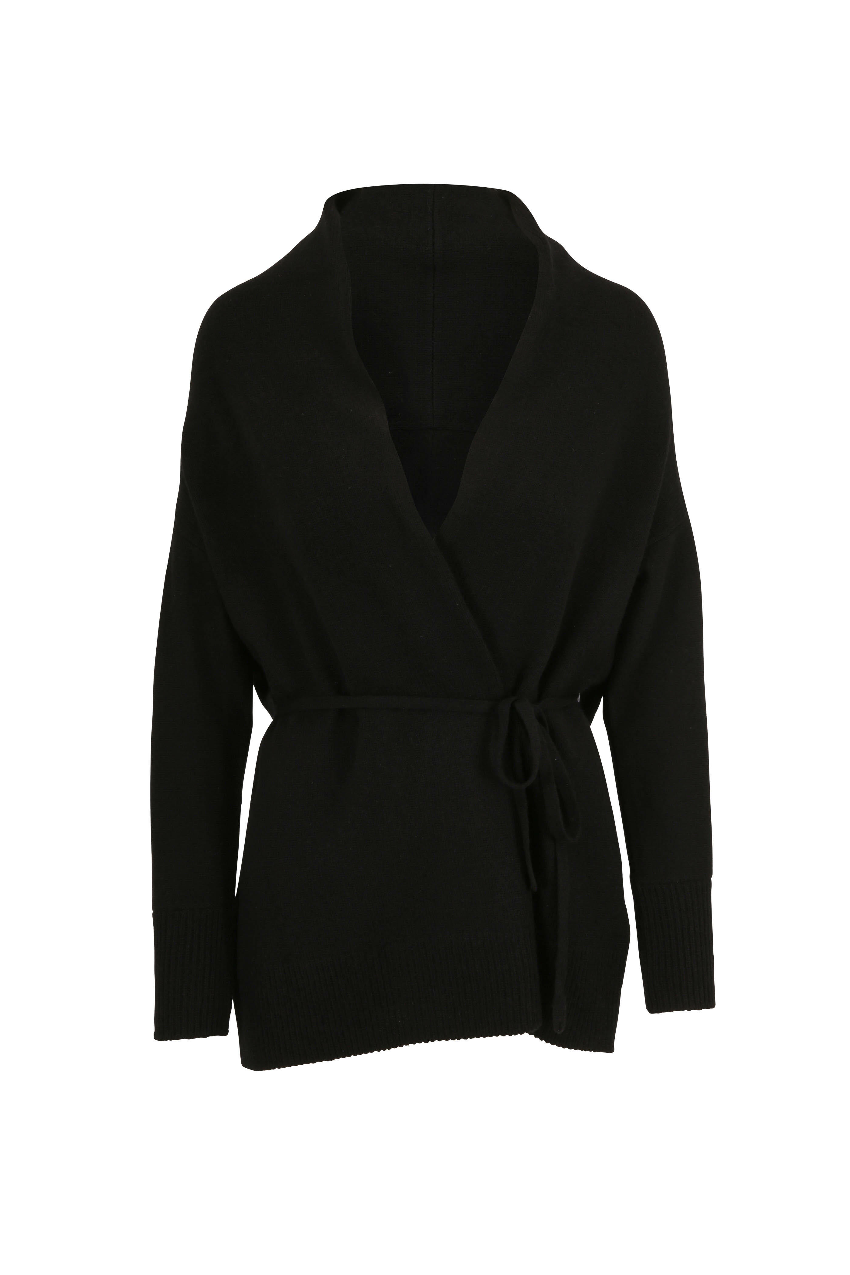 Black Wool & Cashmere Drape Front Belted Cardigan