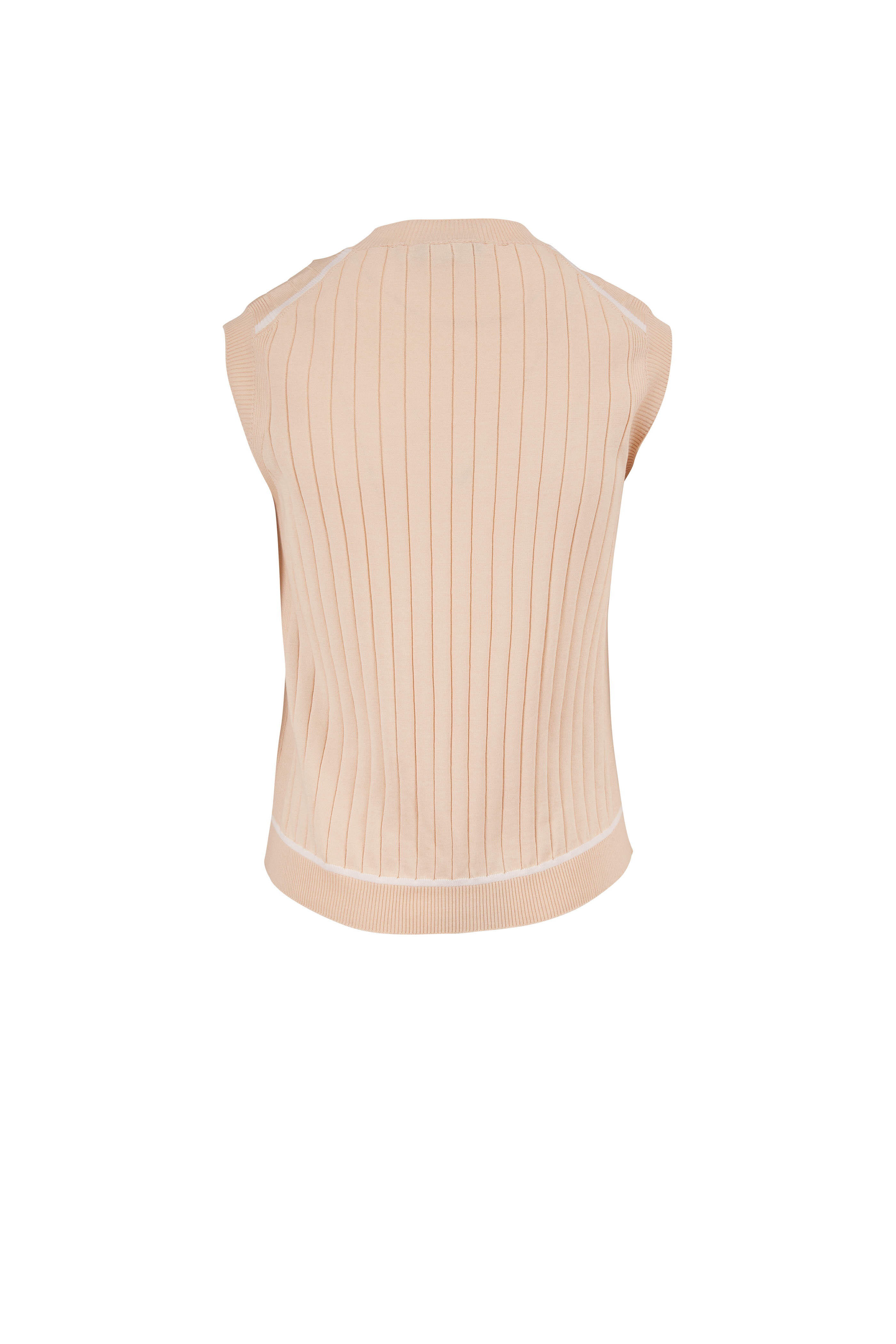 Round neckline. Contrast rib detail. Made in Italy. 55% silk, 45% cotton. Dry clean.