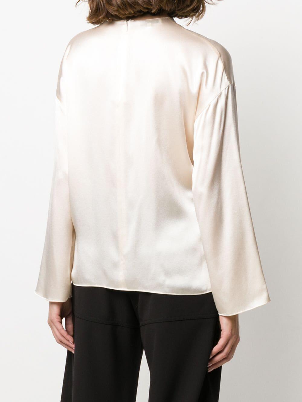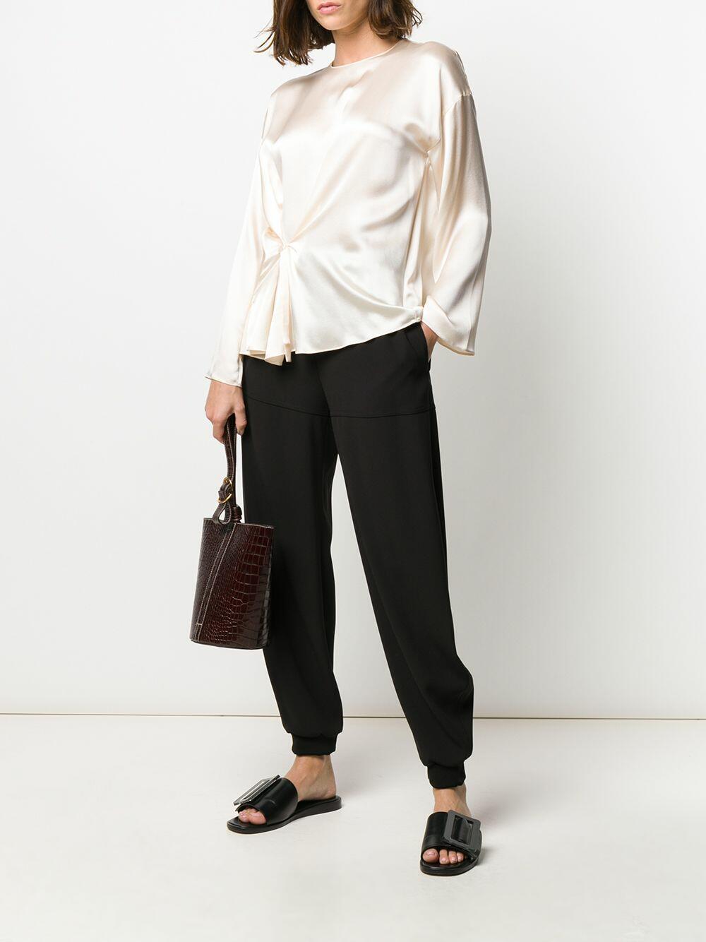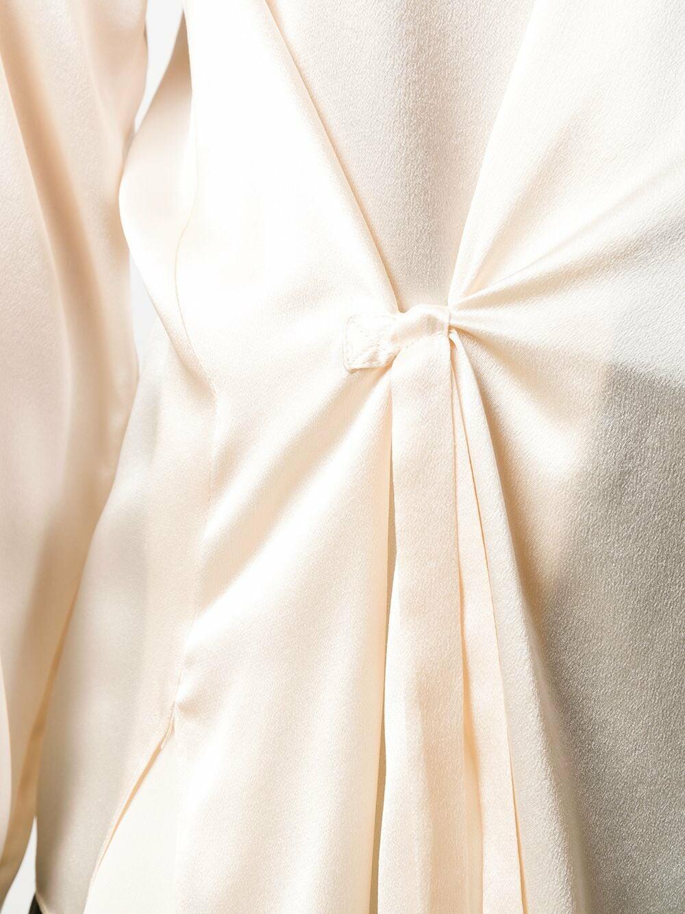 Jewel neckline. Concealed back zip. Drop shoulders. Front knot detail. Imported. 100% silk. Dry clean.