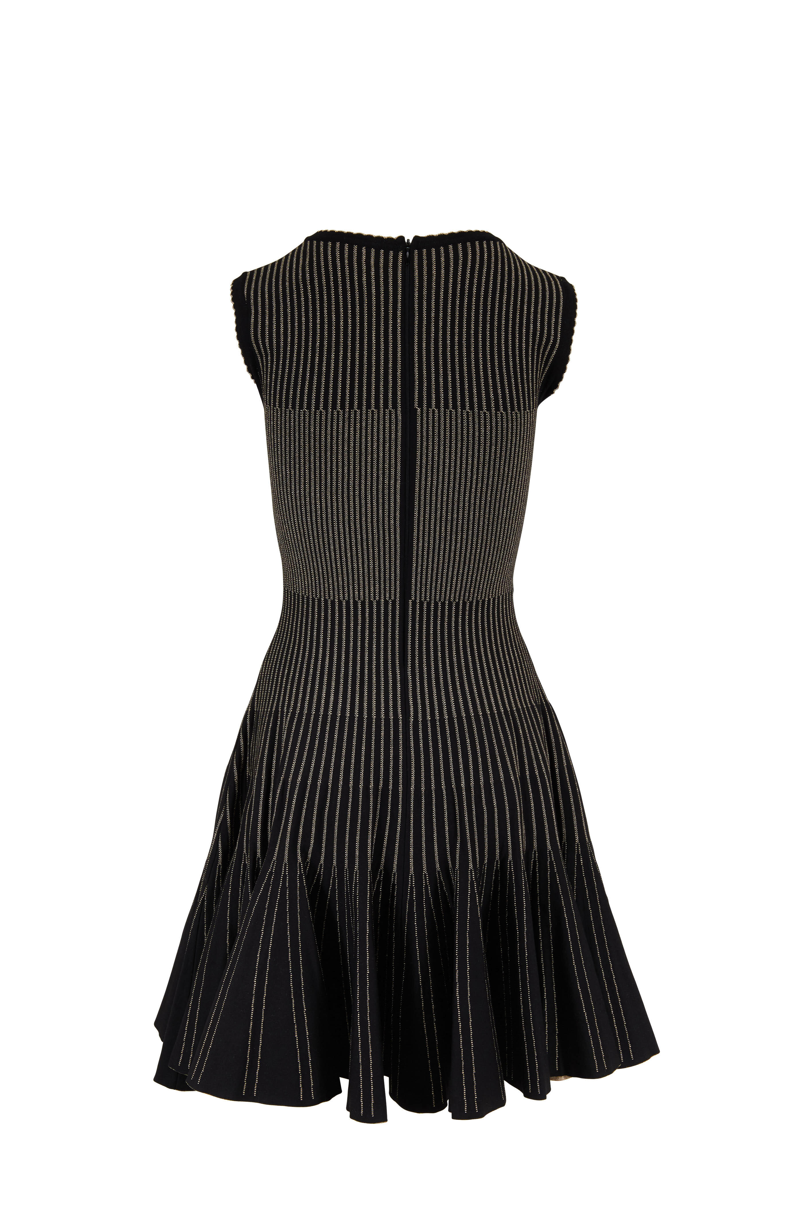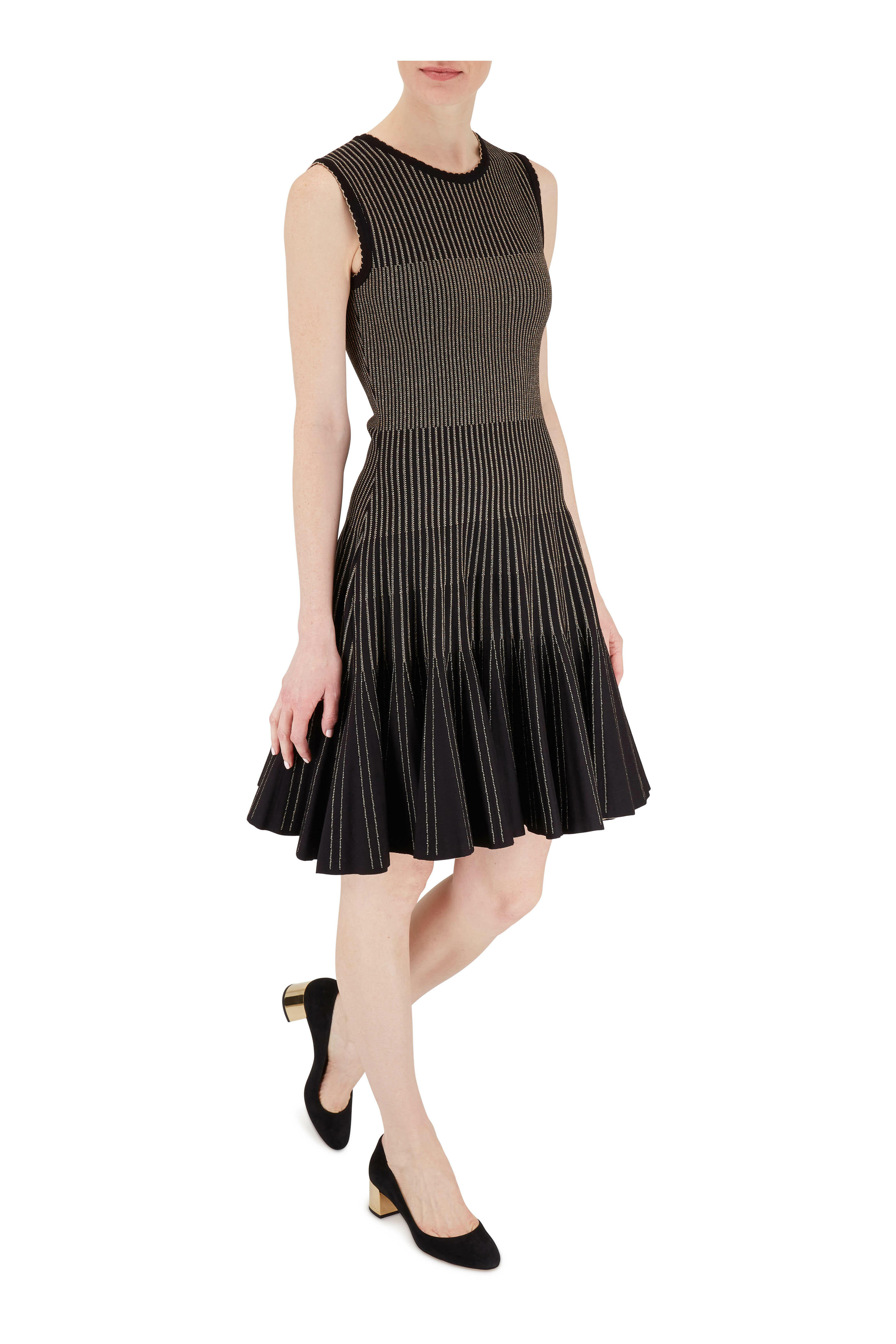 Black/Gold Accordion Fit & Flare Sleeveless Dress
