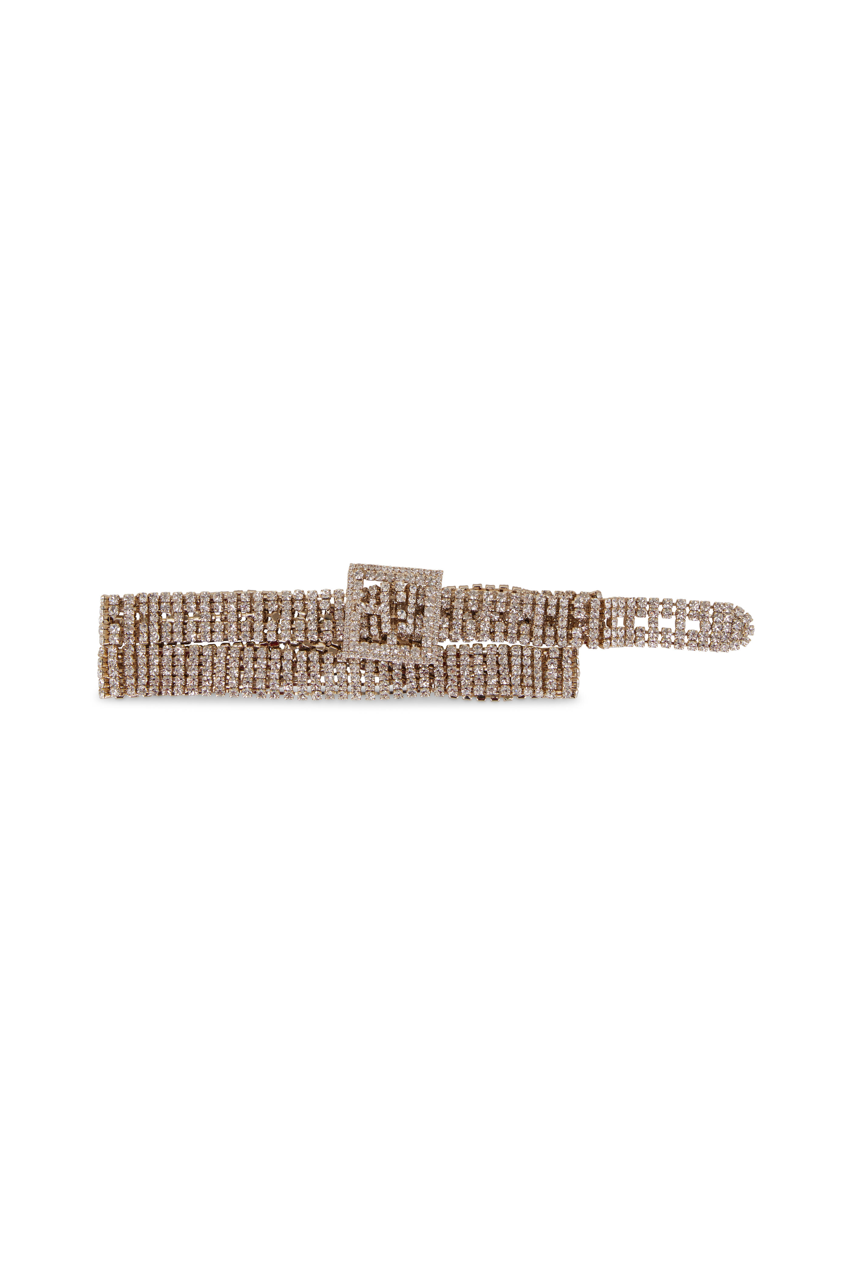 Genuine crystals. Rounded tip. Square buckle. Made in Italy. Width: ¾".