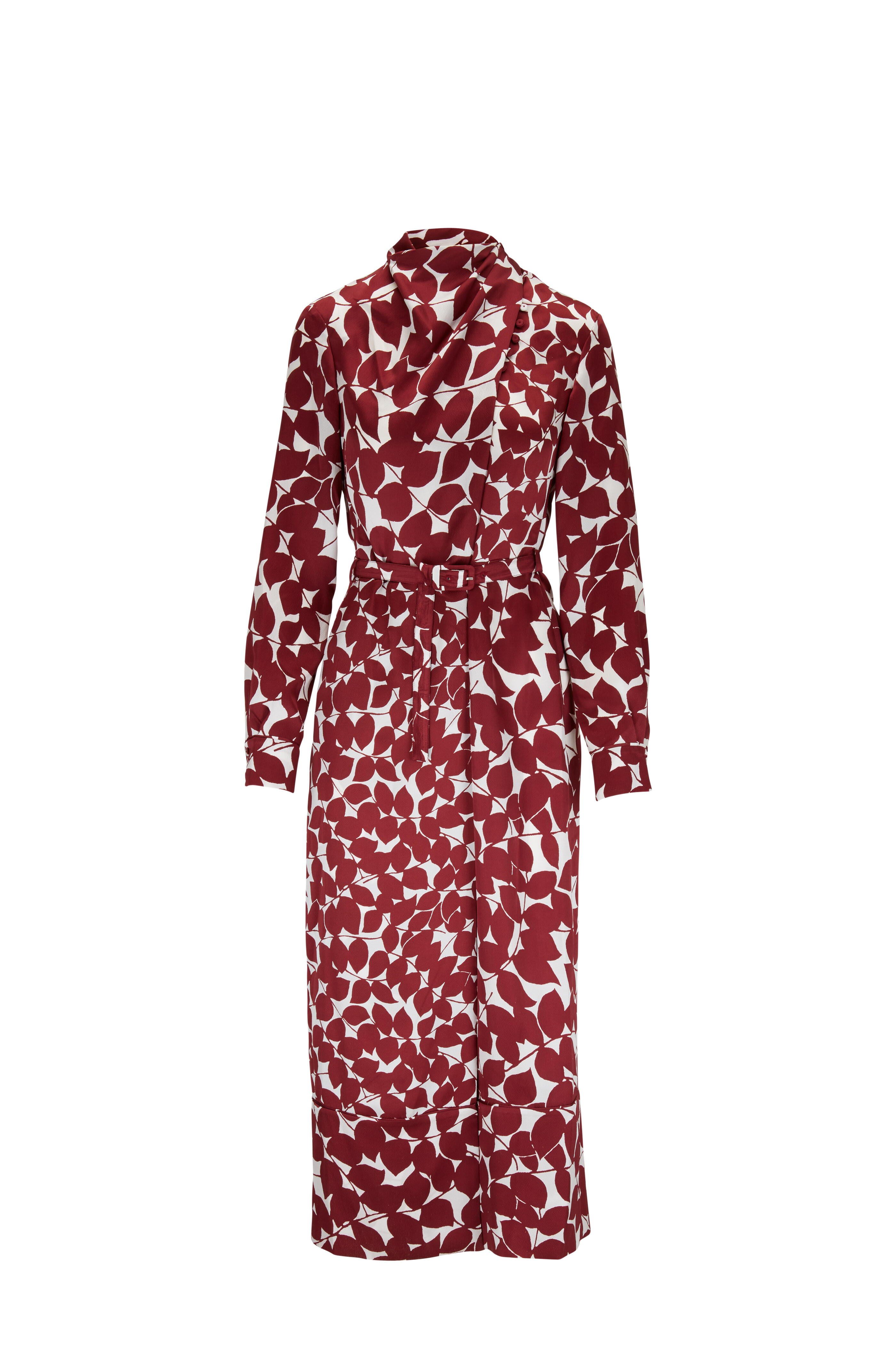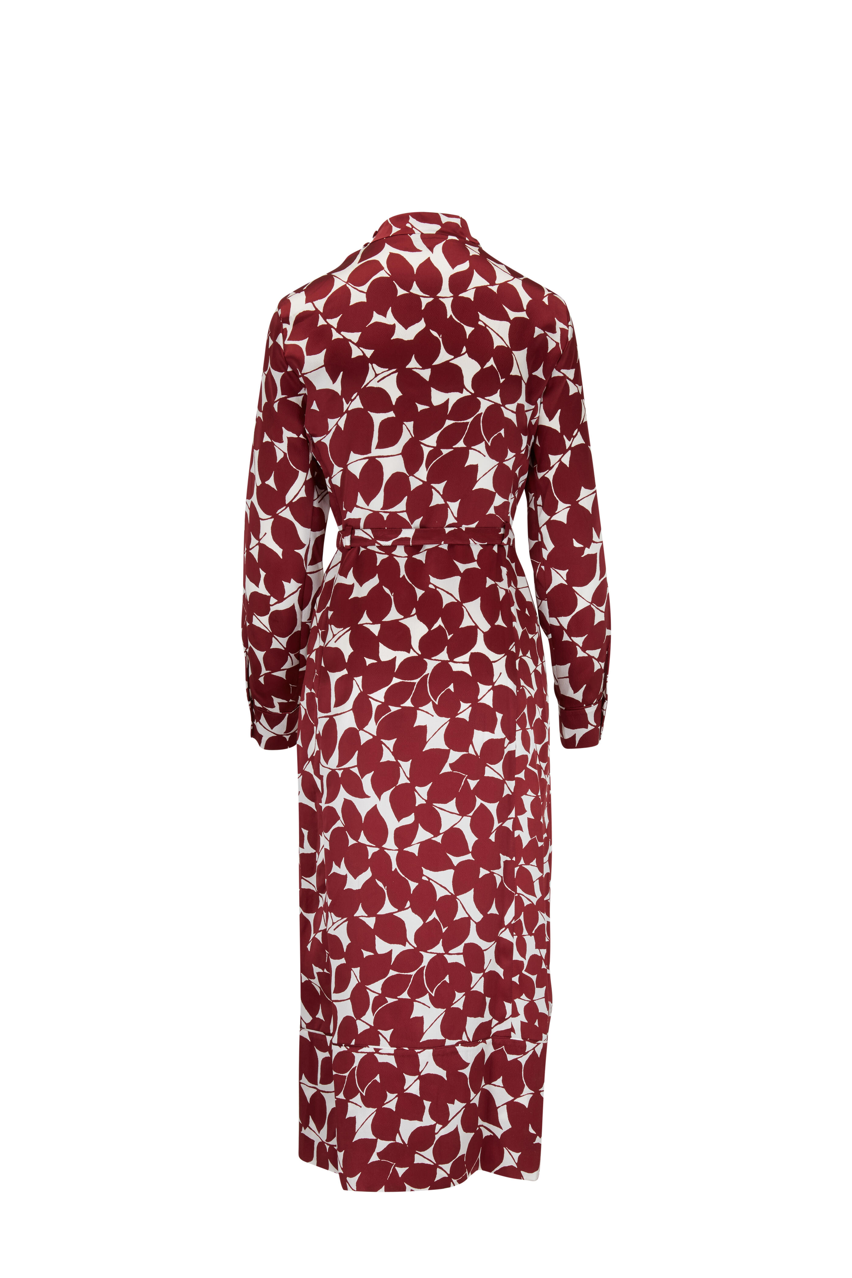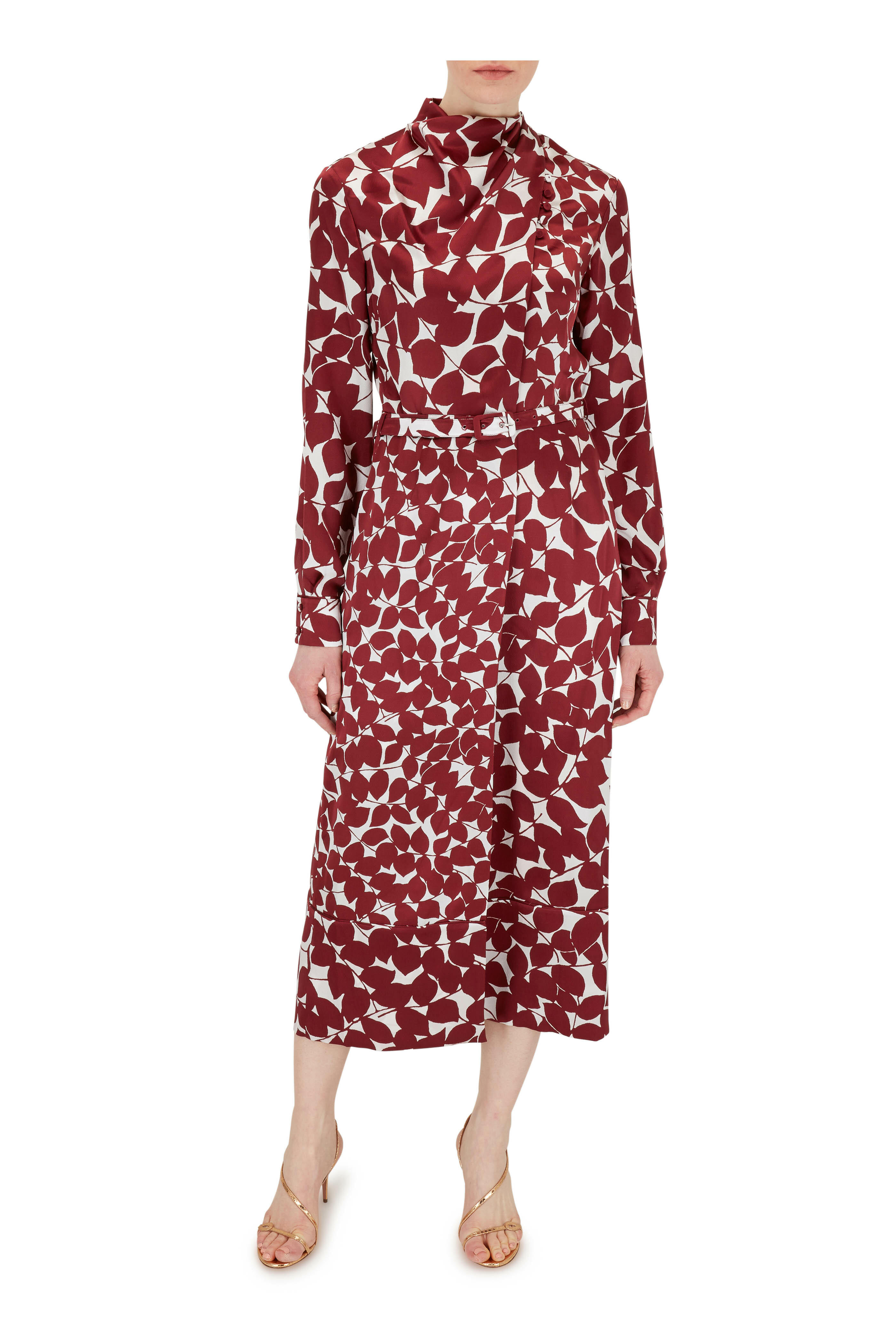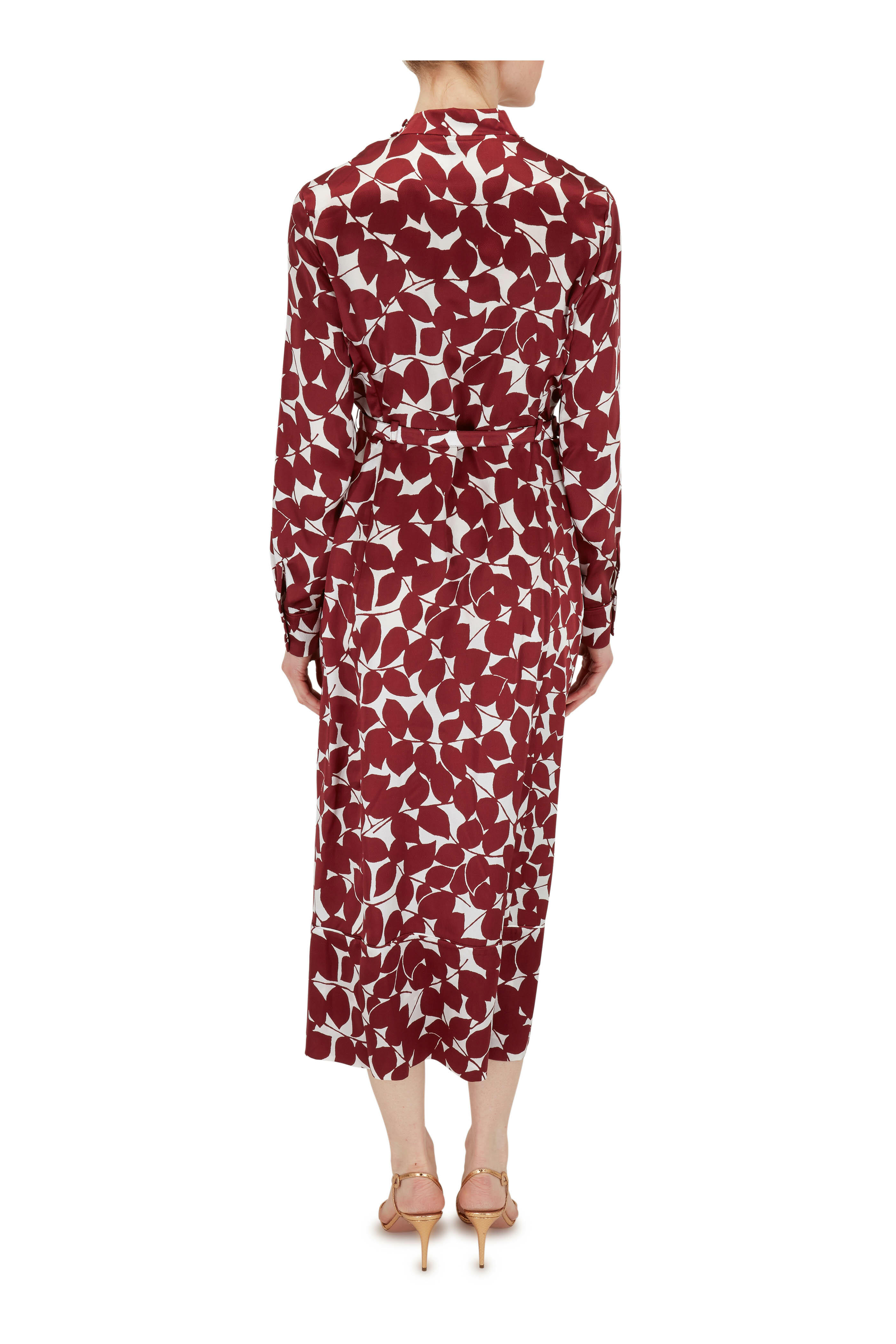 Josefina Maroon Foliage Print Long Sleeve Dress