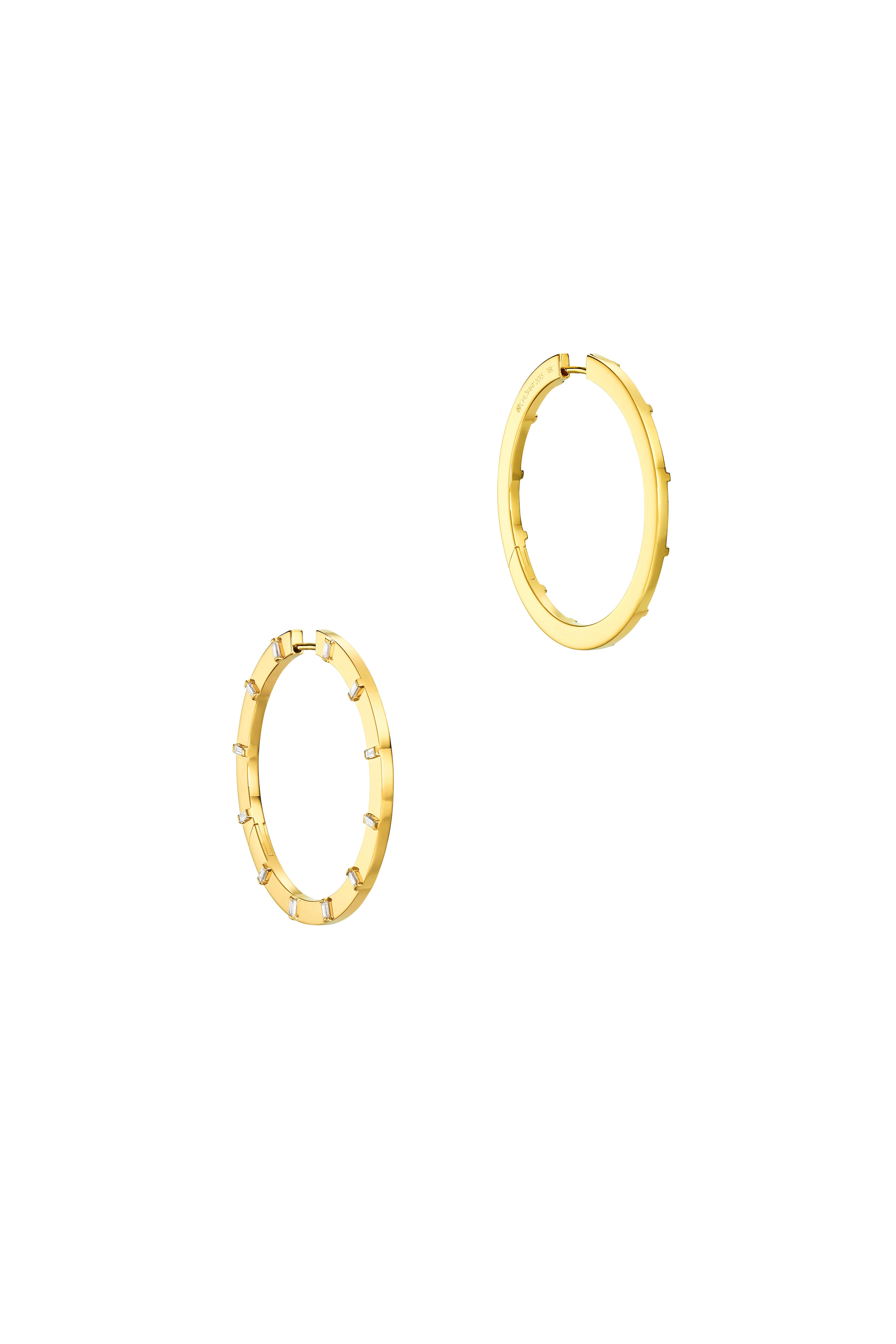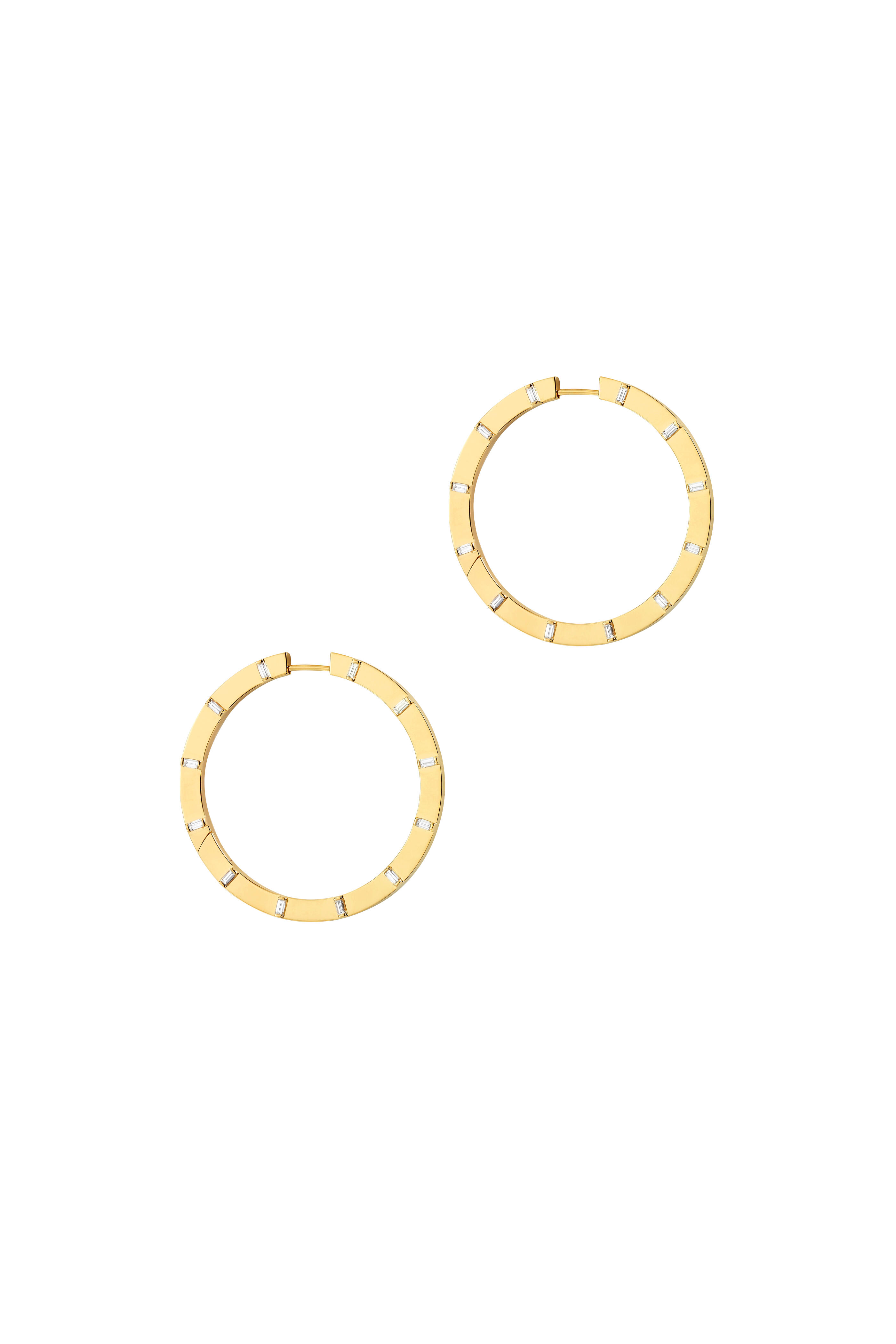 18K Yellow Gold Sole Diamond Large Hoop Earrings