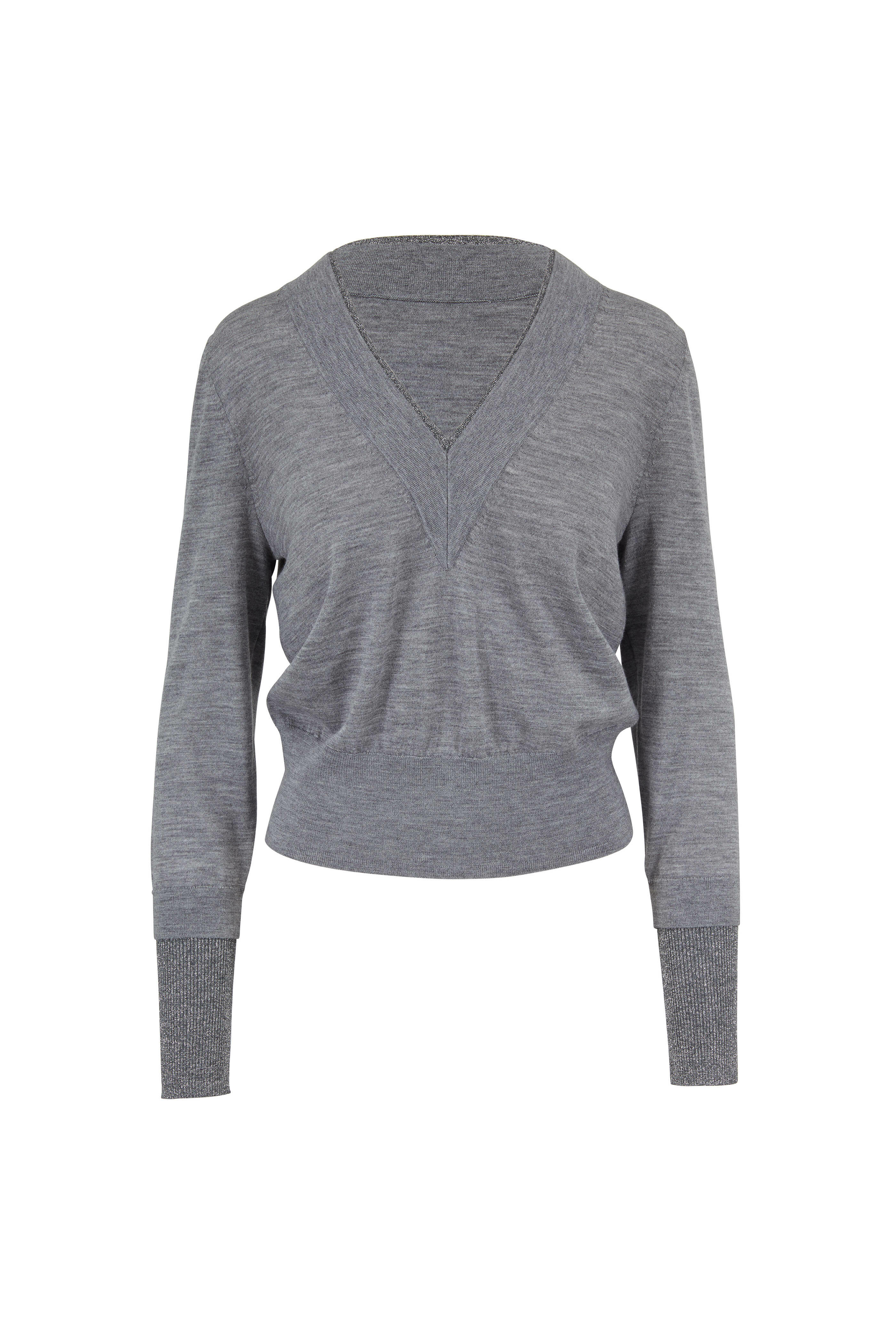 Tatiana Gray Melange Lurex Trim Sweater Pullover