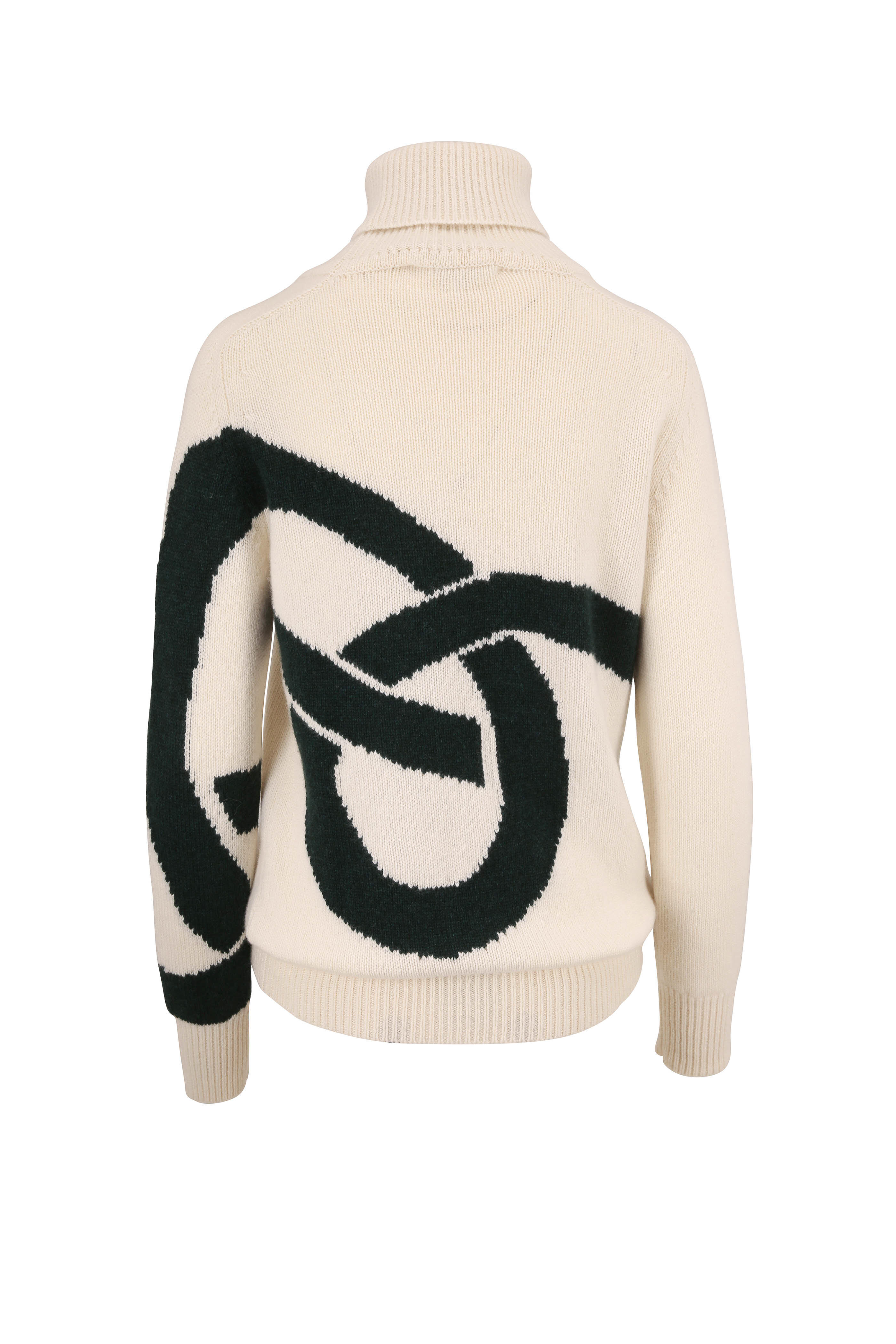 Turtleneck. Ribbed trim. Made in England. 100% cashmere. Dry clean.