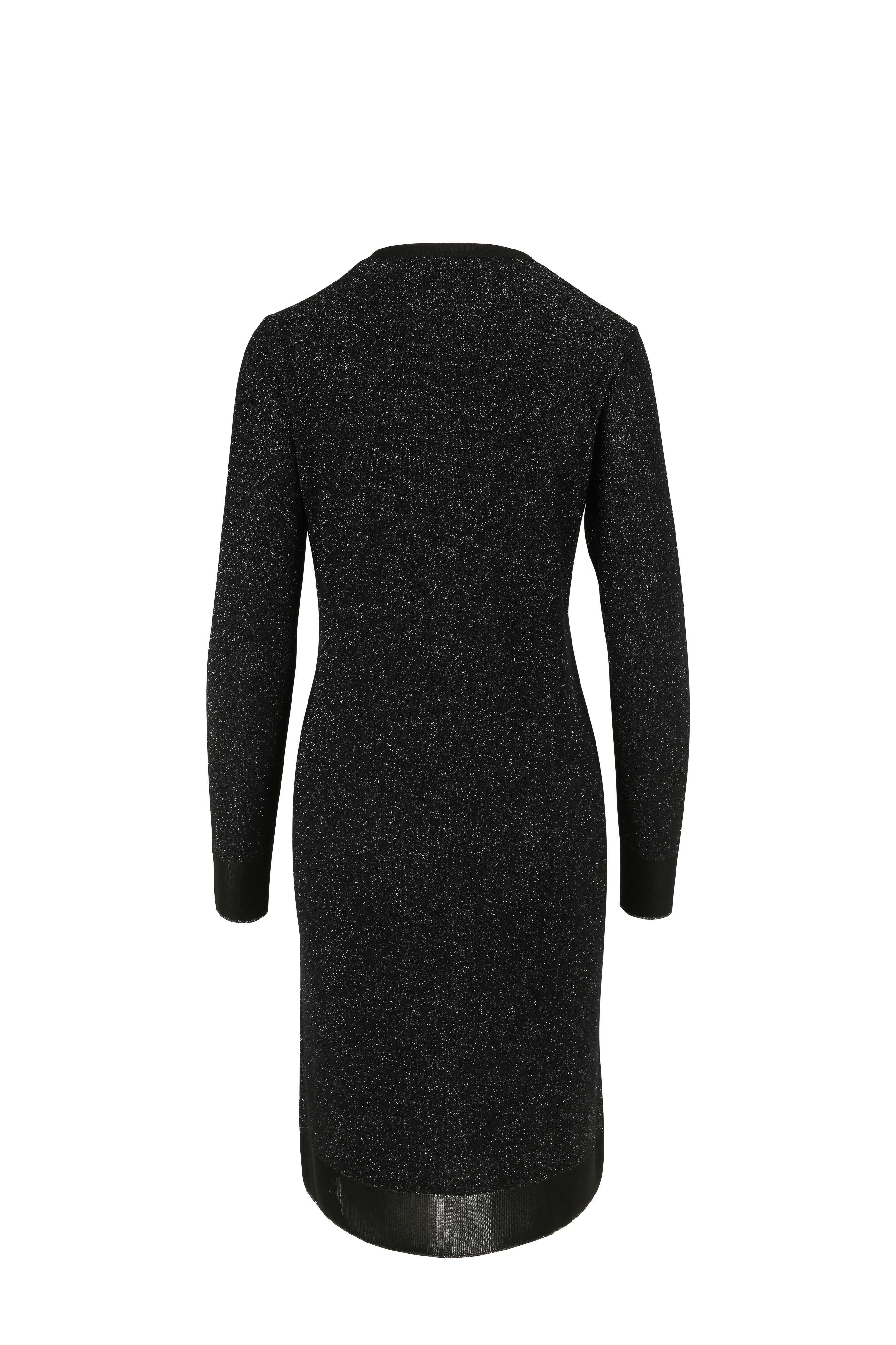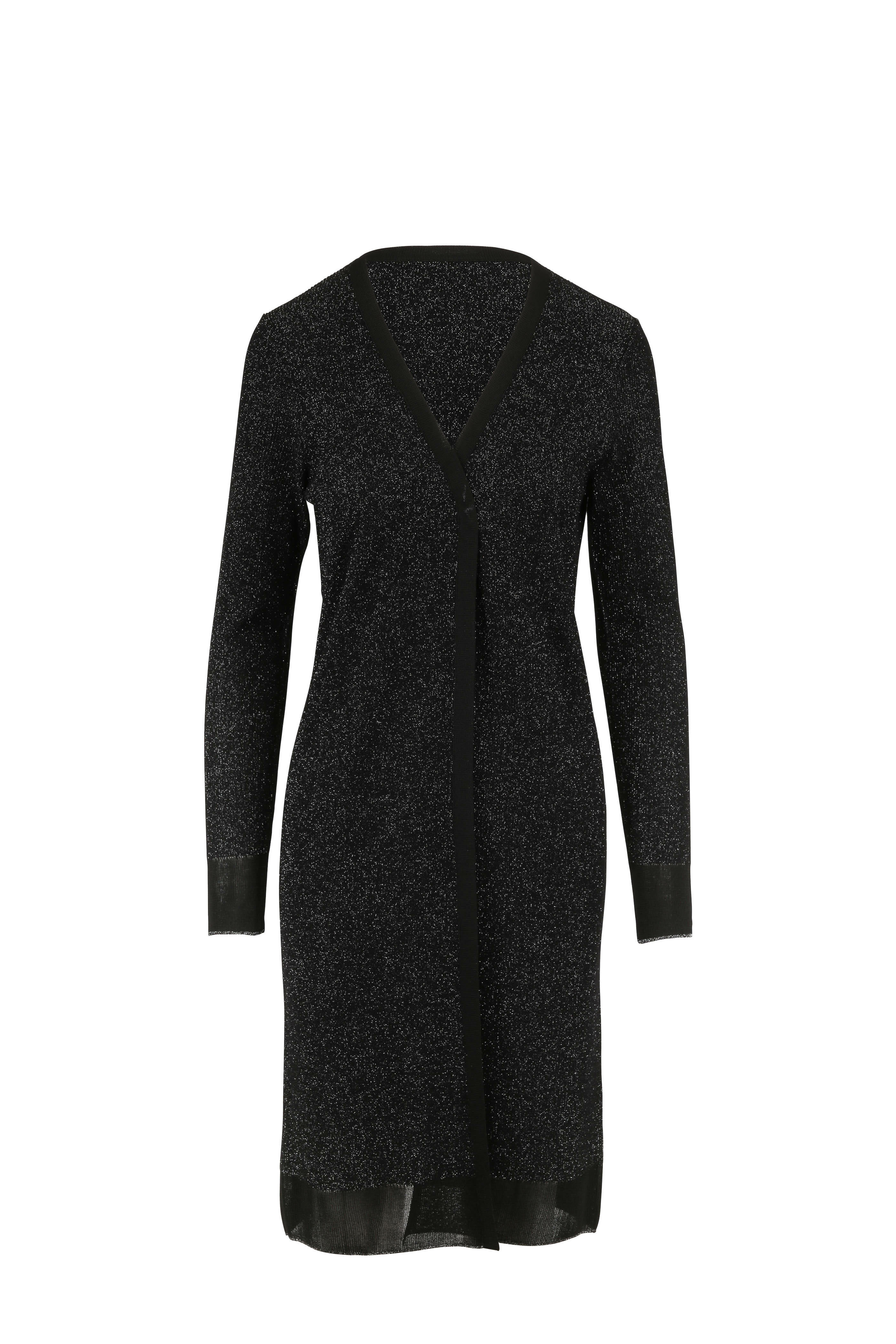 Open front. Ribbed trim. Imported. 35% merino wool, 27% viscose, 17% polyester, 9% nylon, 9% metallized fiber, 3% cashmere. Dry clean.