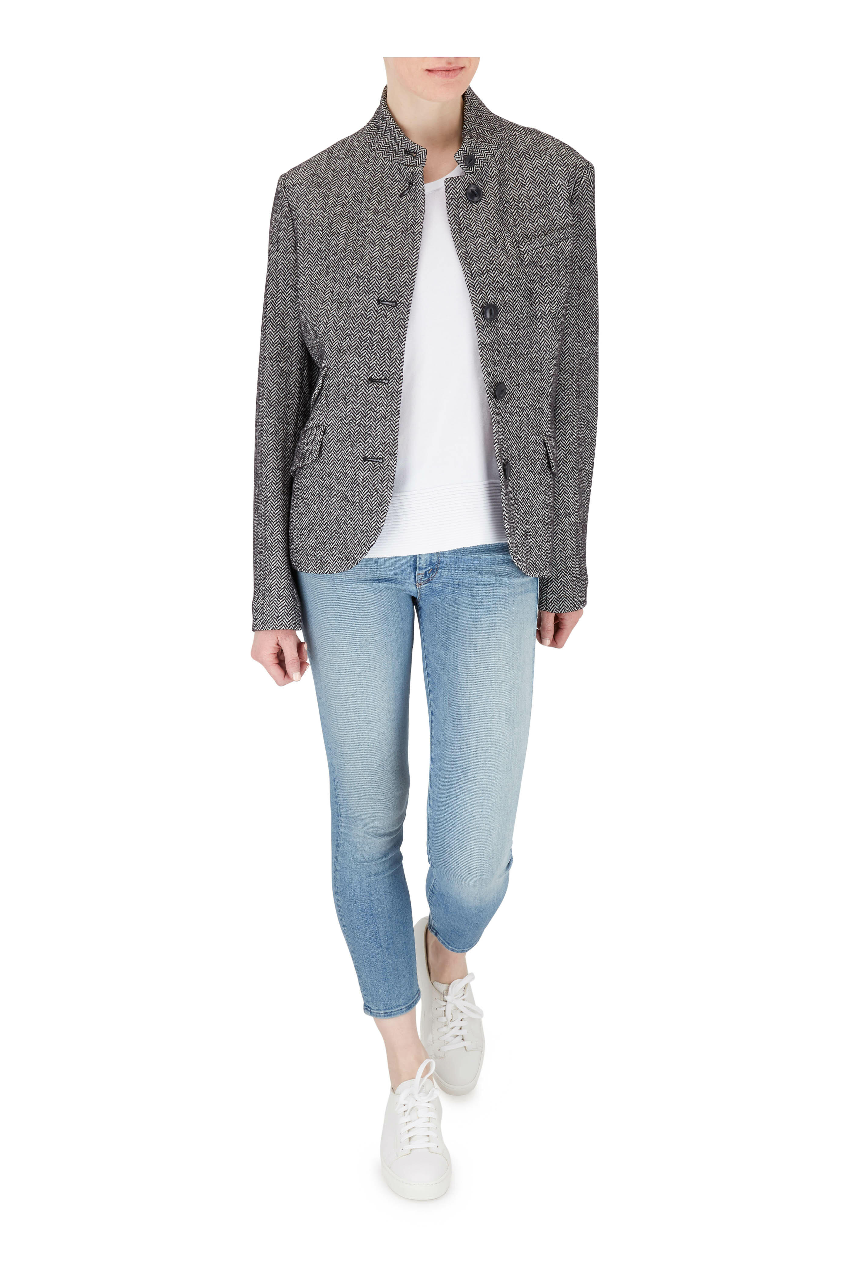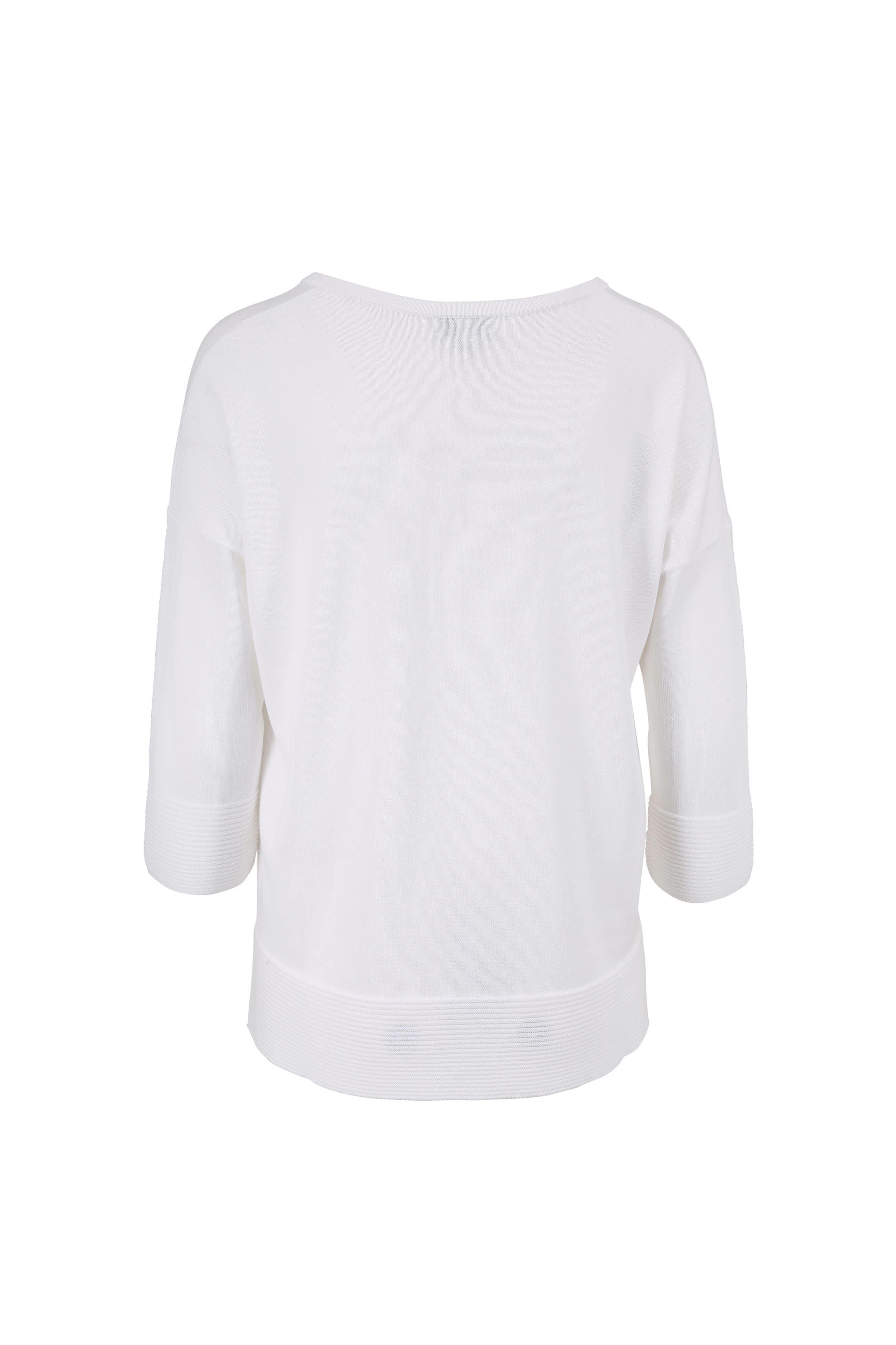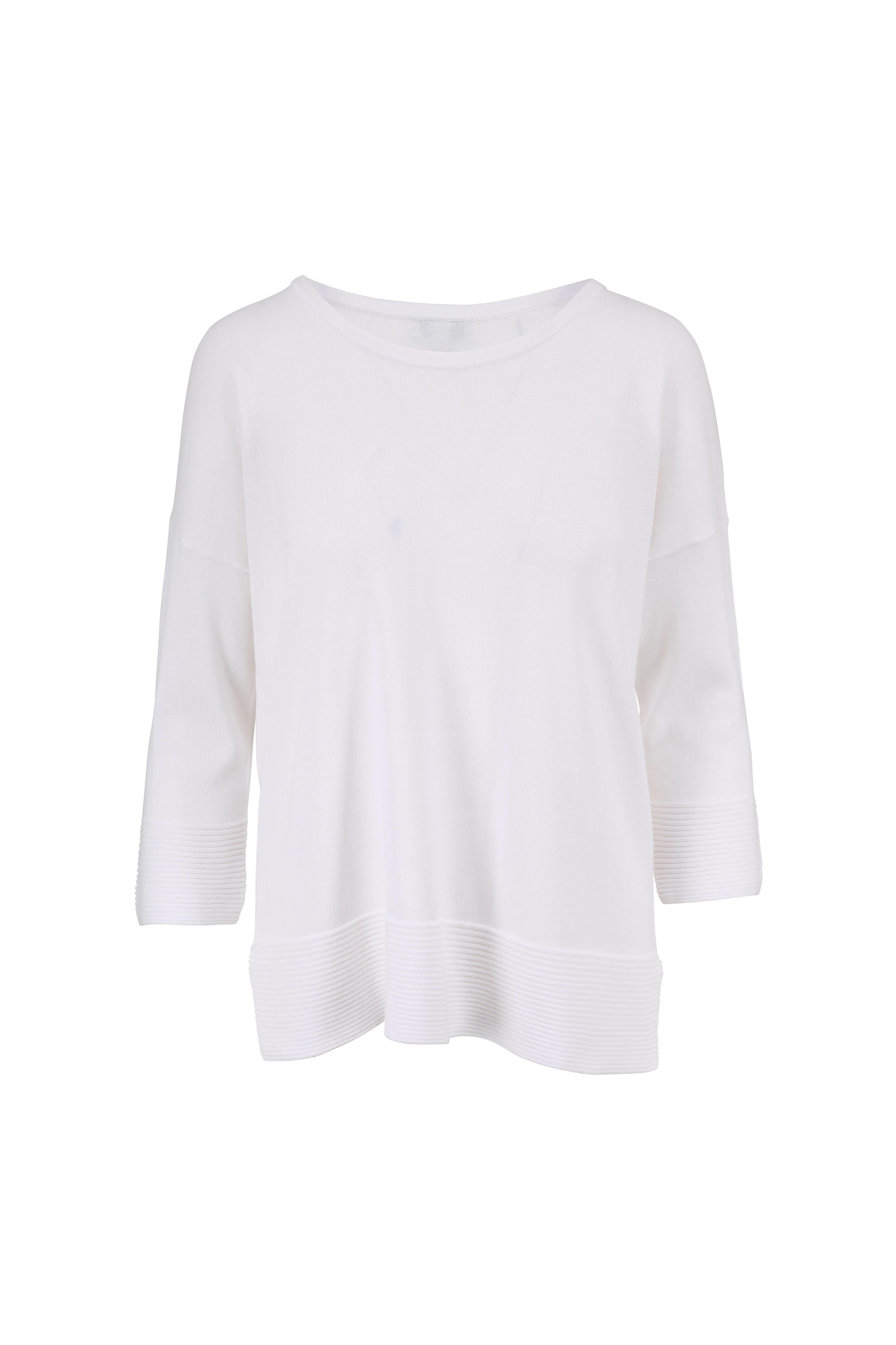 Round neckline. Dropped shoulders; three-quarter sleeves. Vented hem. Garter stitch trim. Imported. 100% cotton. Hand wash.