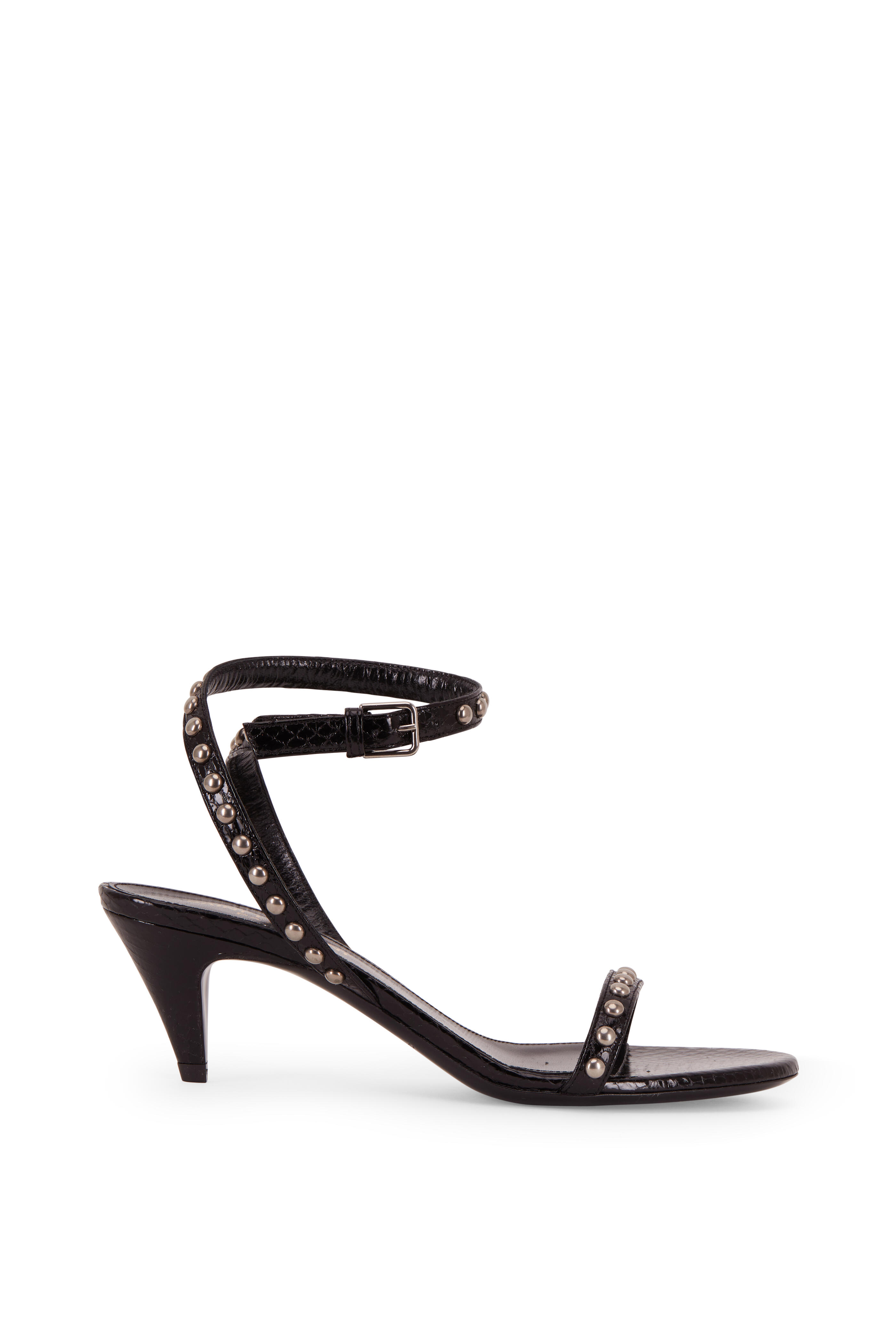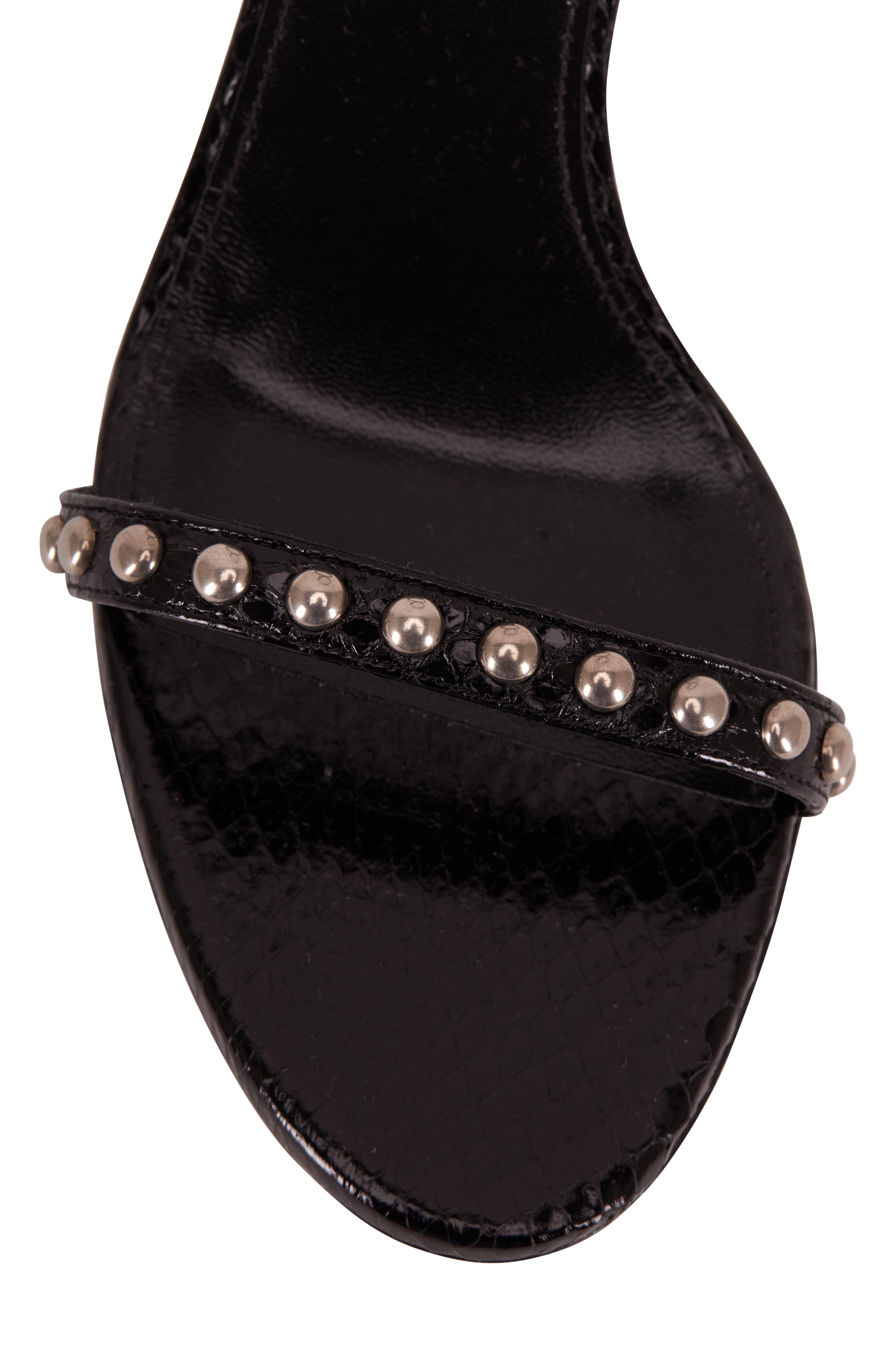 Kiki Black Snakeskin Studded Sandal, 55mm