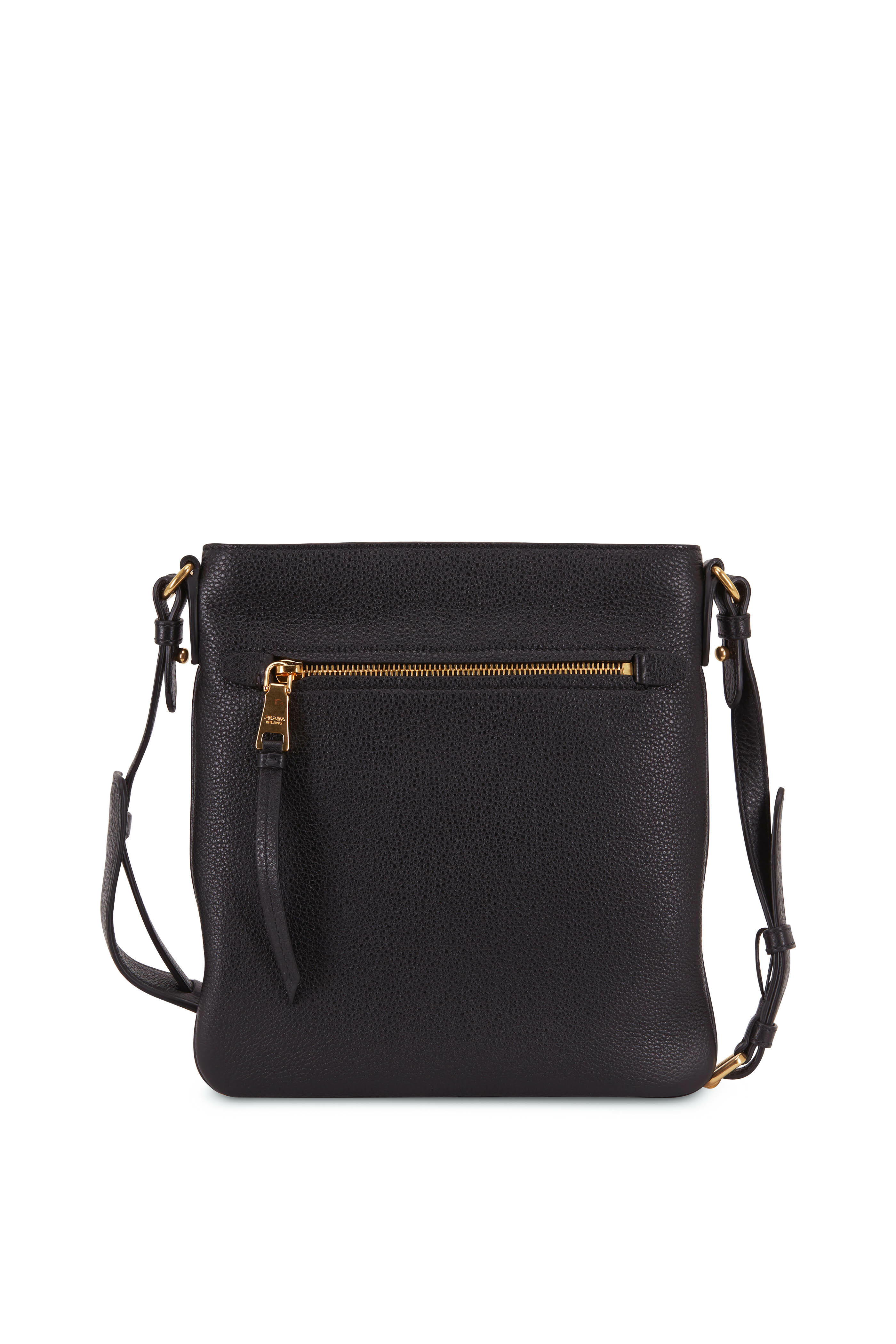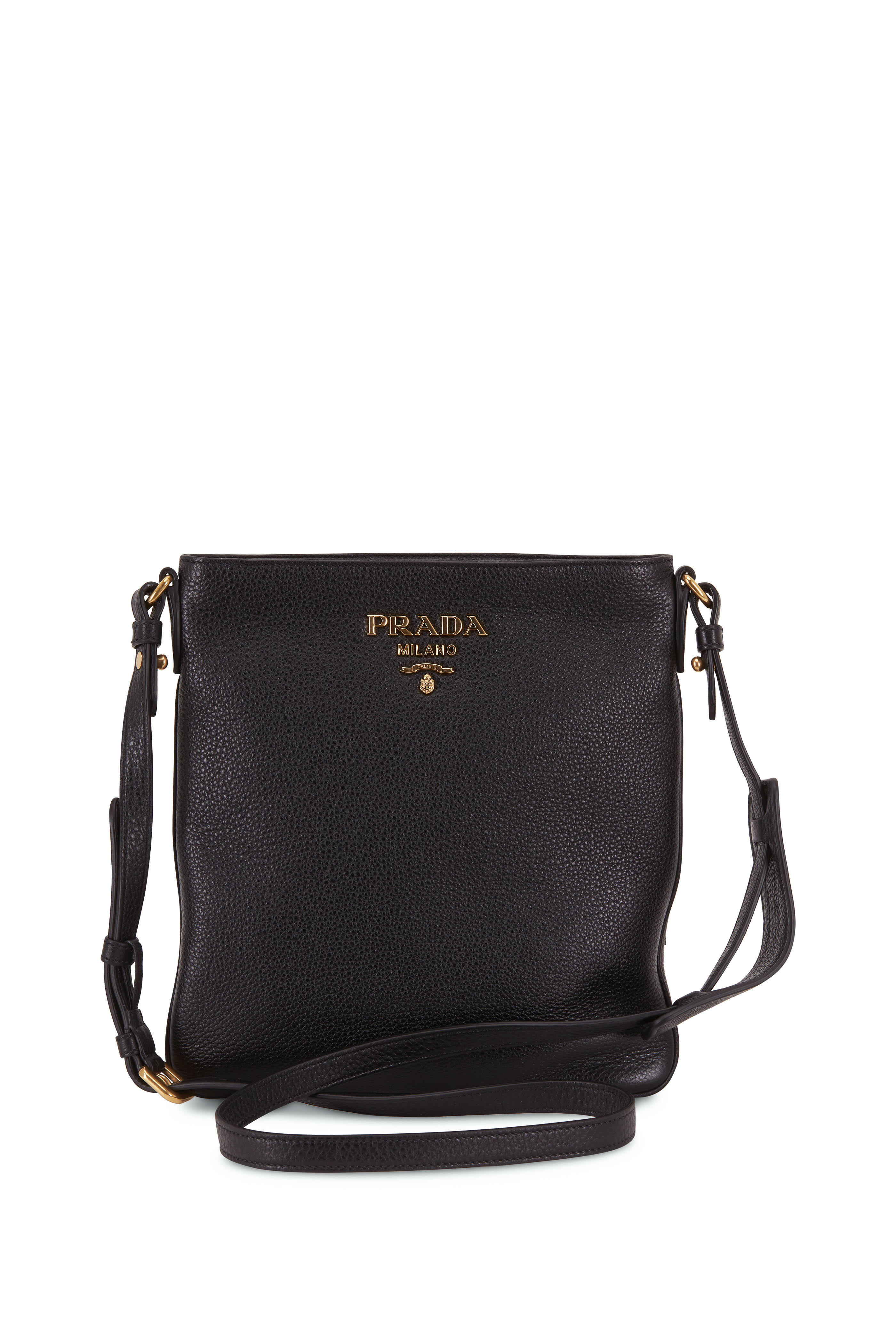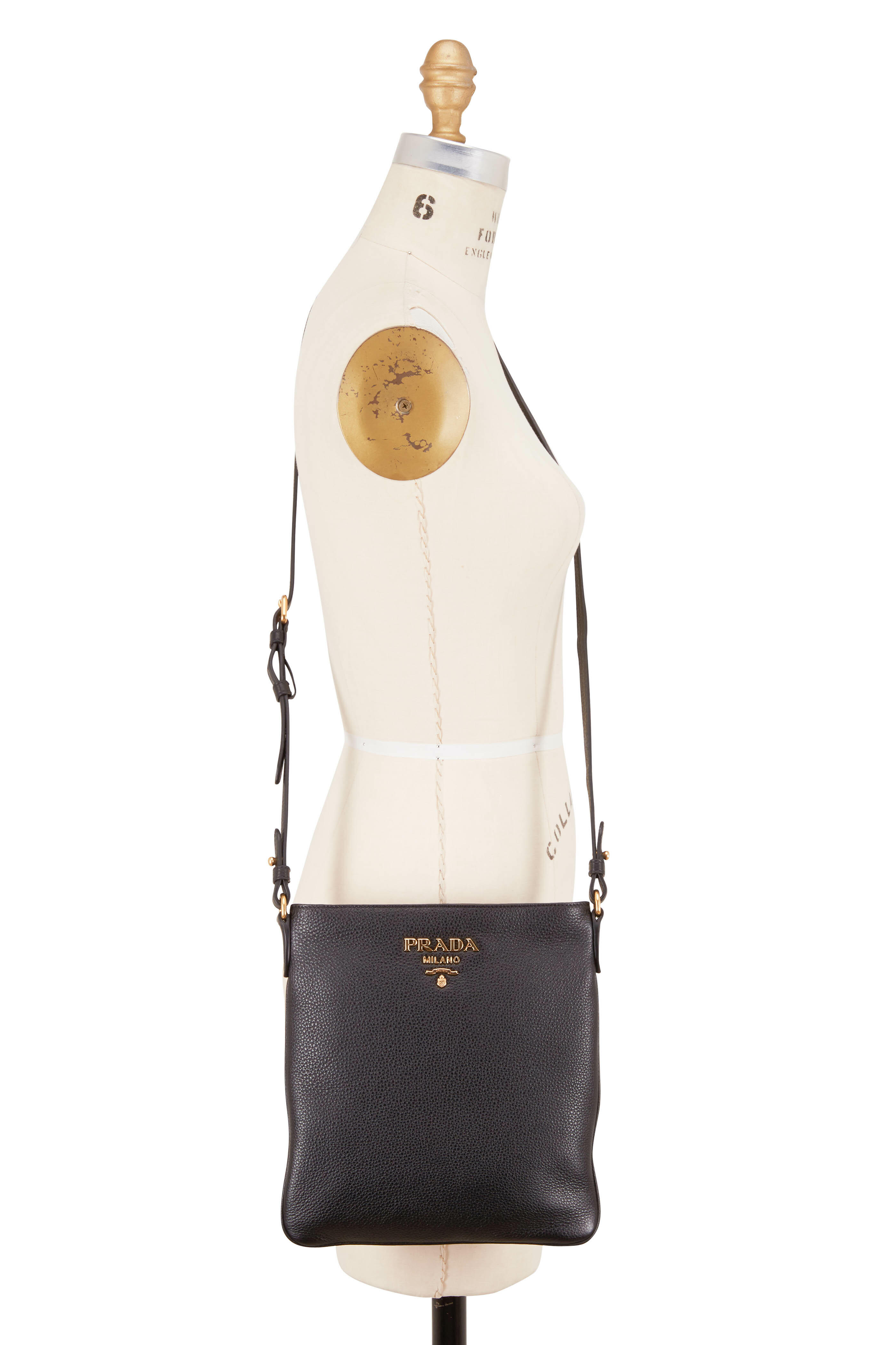 Vitello leather. Adjustable shoulder strap. Top zip closure. Exterior back zip pocket. One interior open pocket. Lined in signature jacquard fabric. Made in Italy. Width: 9". Height: 10". Depth: 1". Adjustable strap drop: 21".