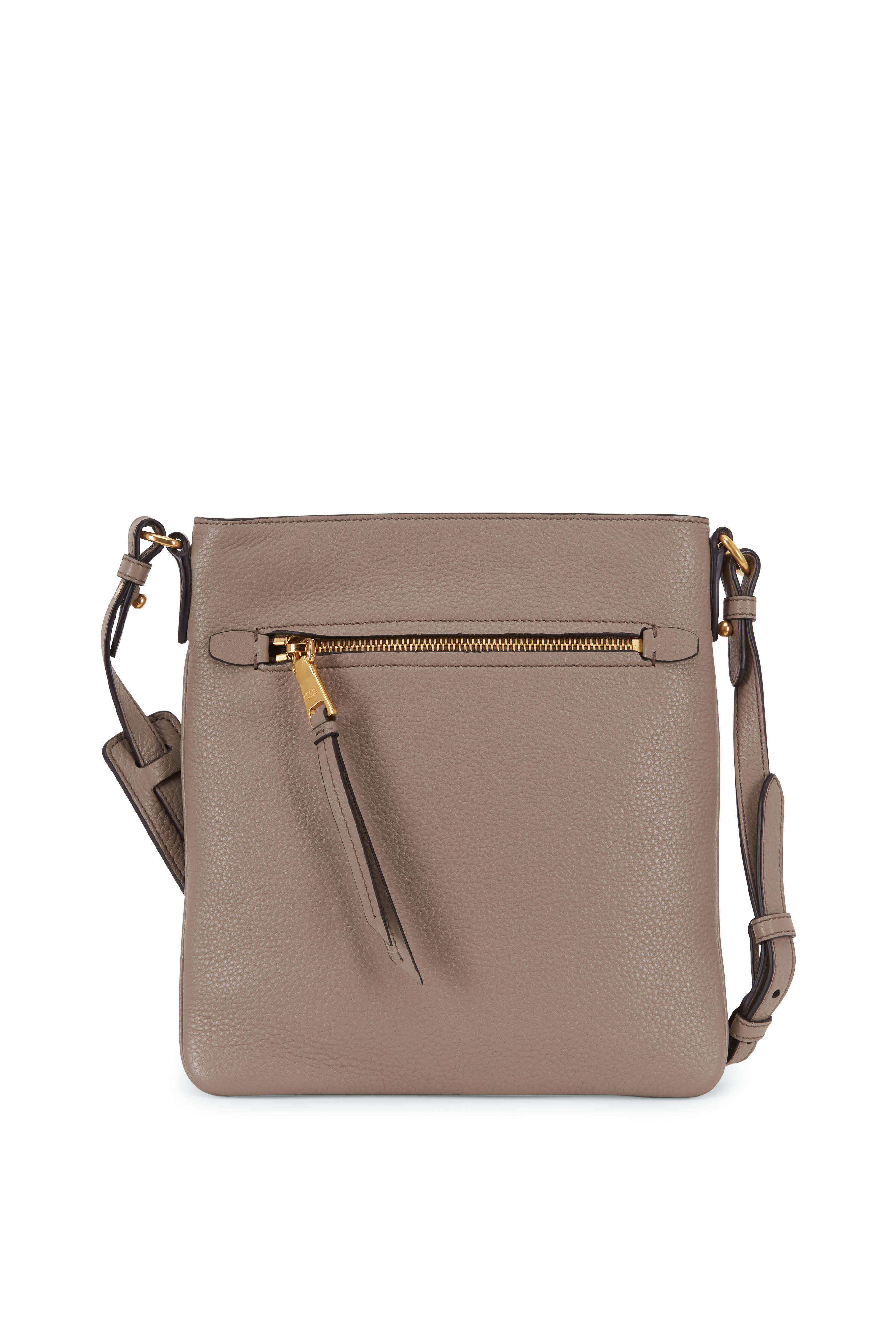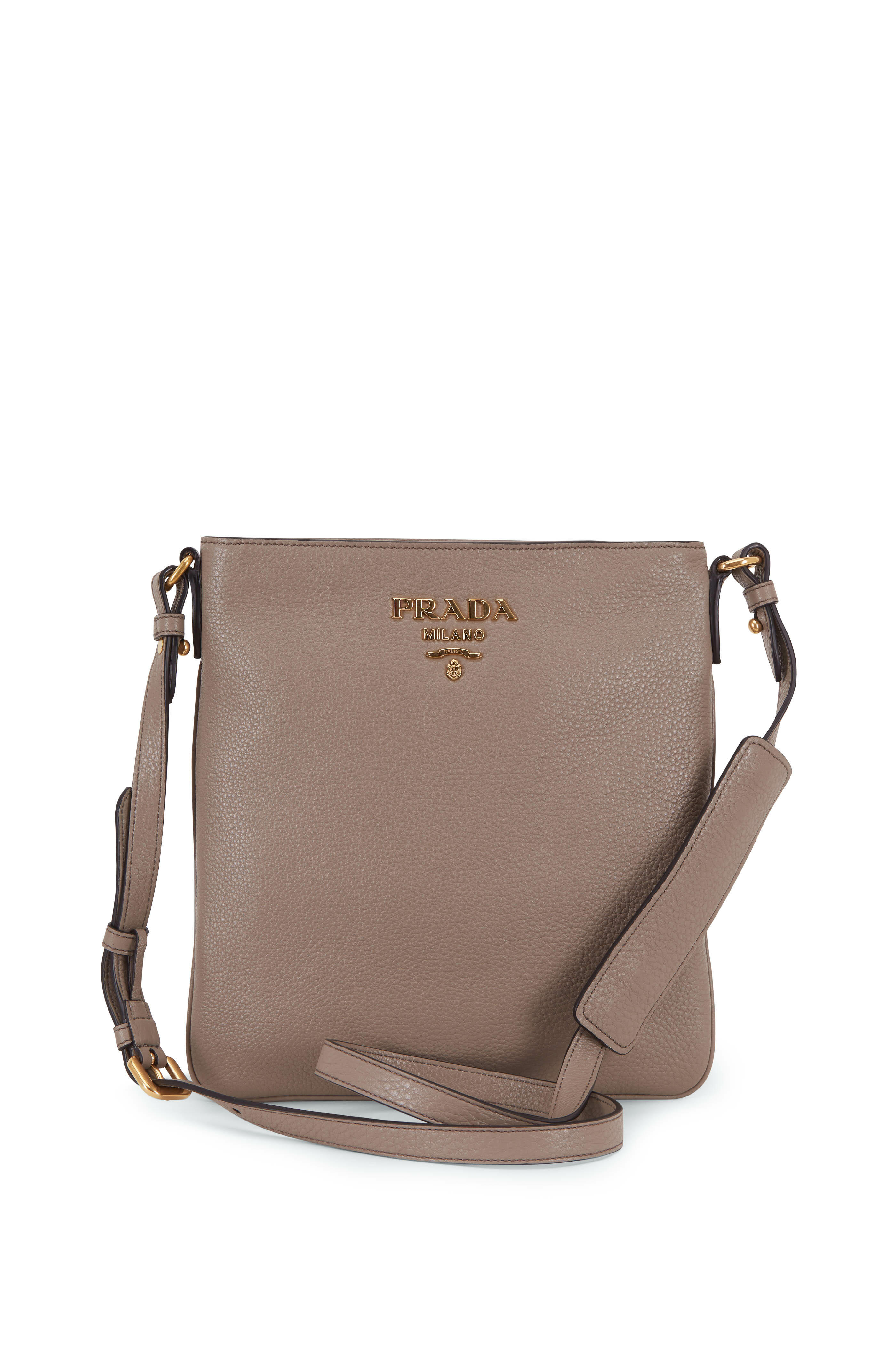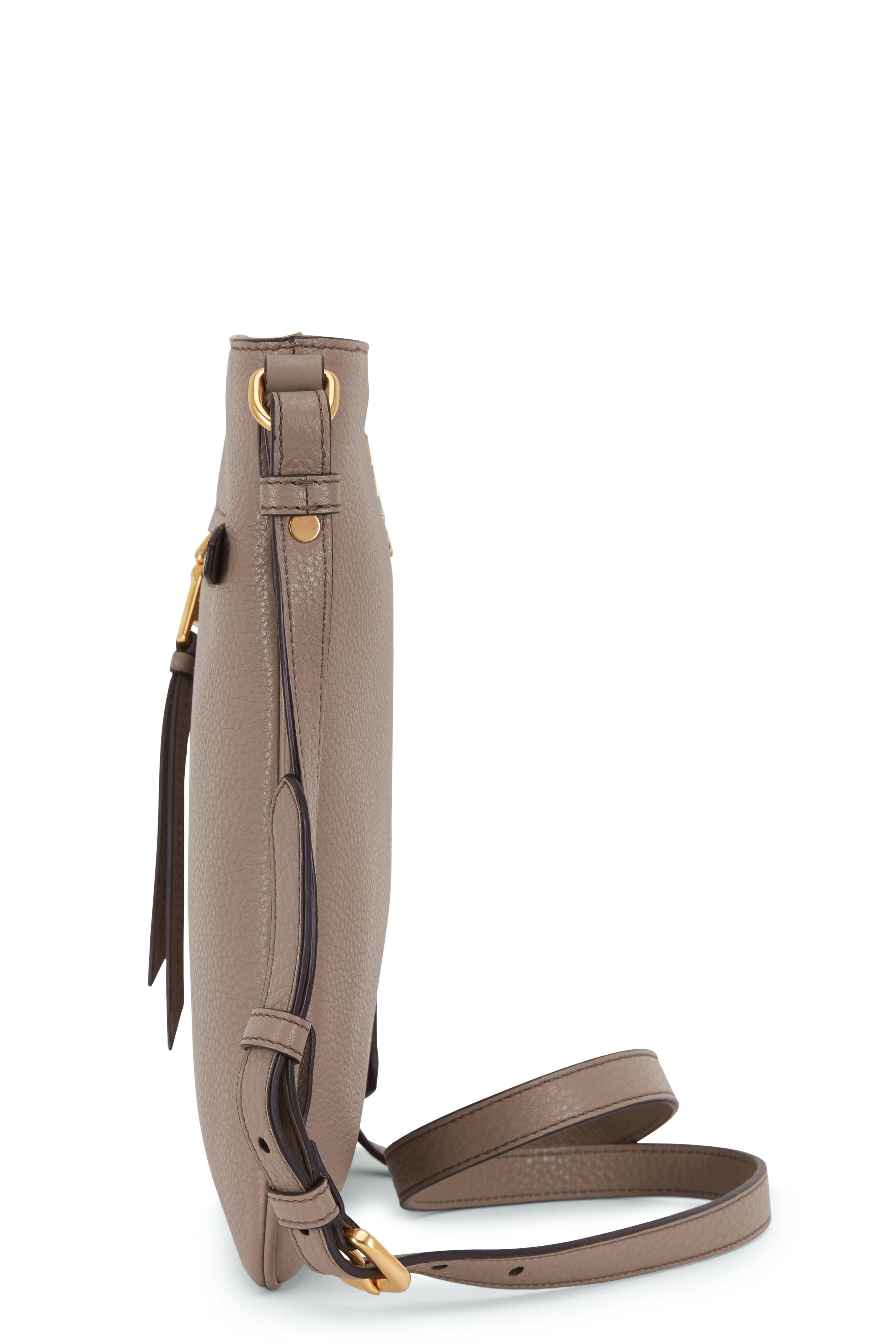 Vitello leather. Adjustable shoulder strap. Top zip closure. Exterior back zip pocket. One interior open pocket. Lined in signature jacquard fabric. Made in Italy. Width: 9". Height: 10". Depth: 1". Adjustable strap drop: 21".