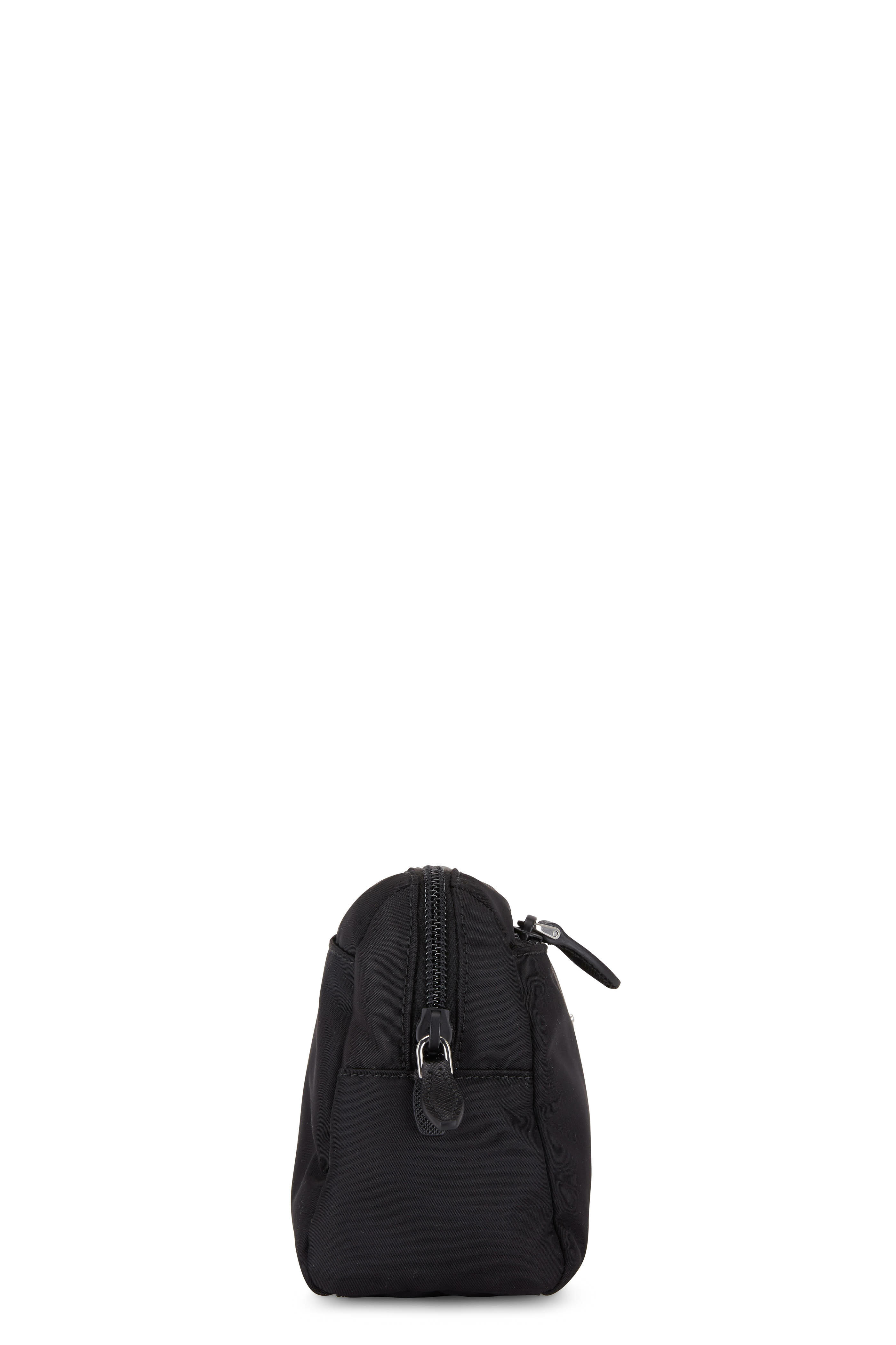 Nylon. Top zip closure. Interior zip pocket; two open pockets. Exterior zip pocket; two open pockets. Lined in nylon. Logo detail on front. Made in Italy. Width: 9". Height: 6½". Depth: 2½".