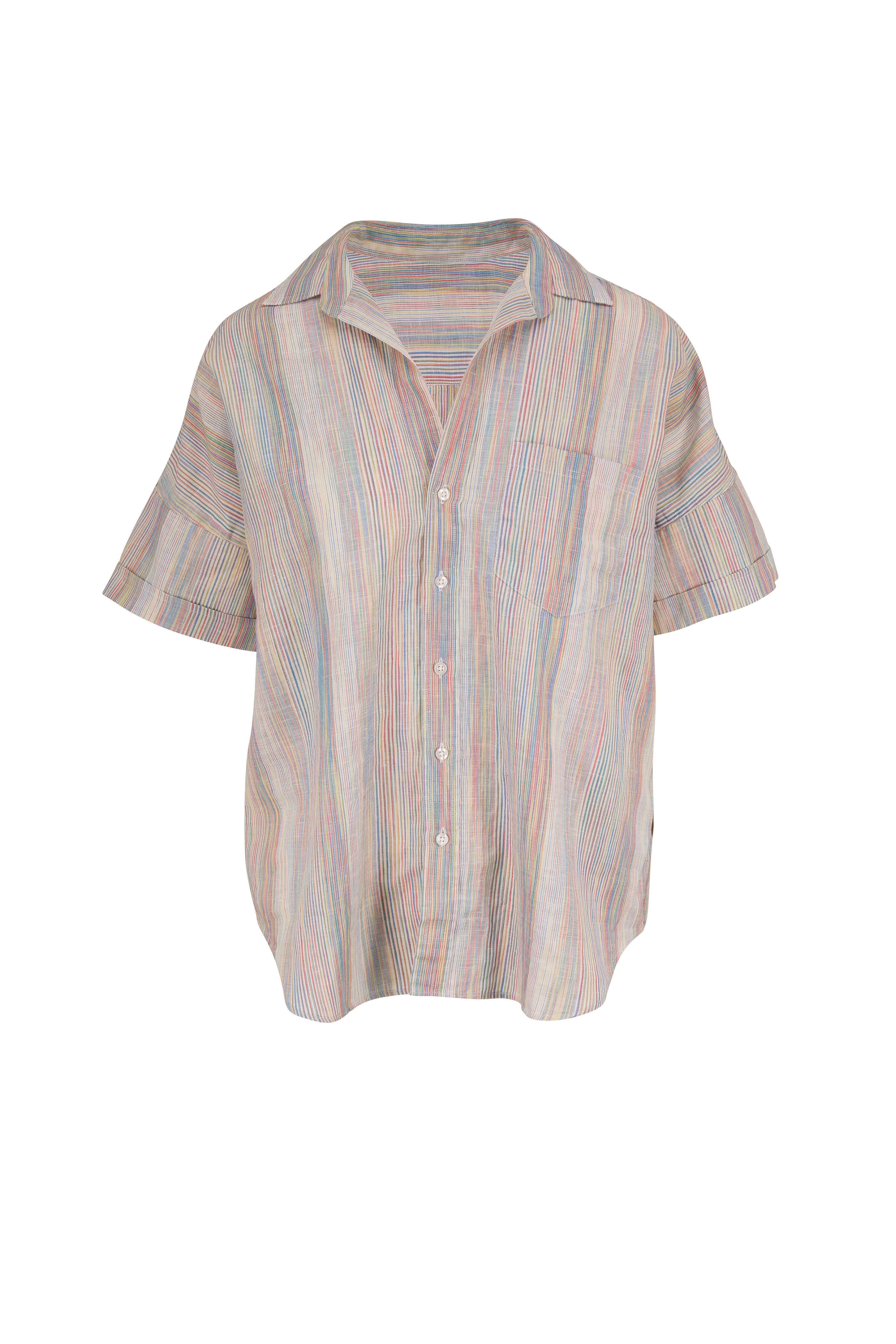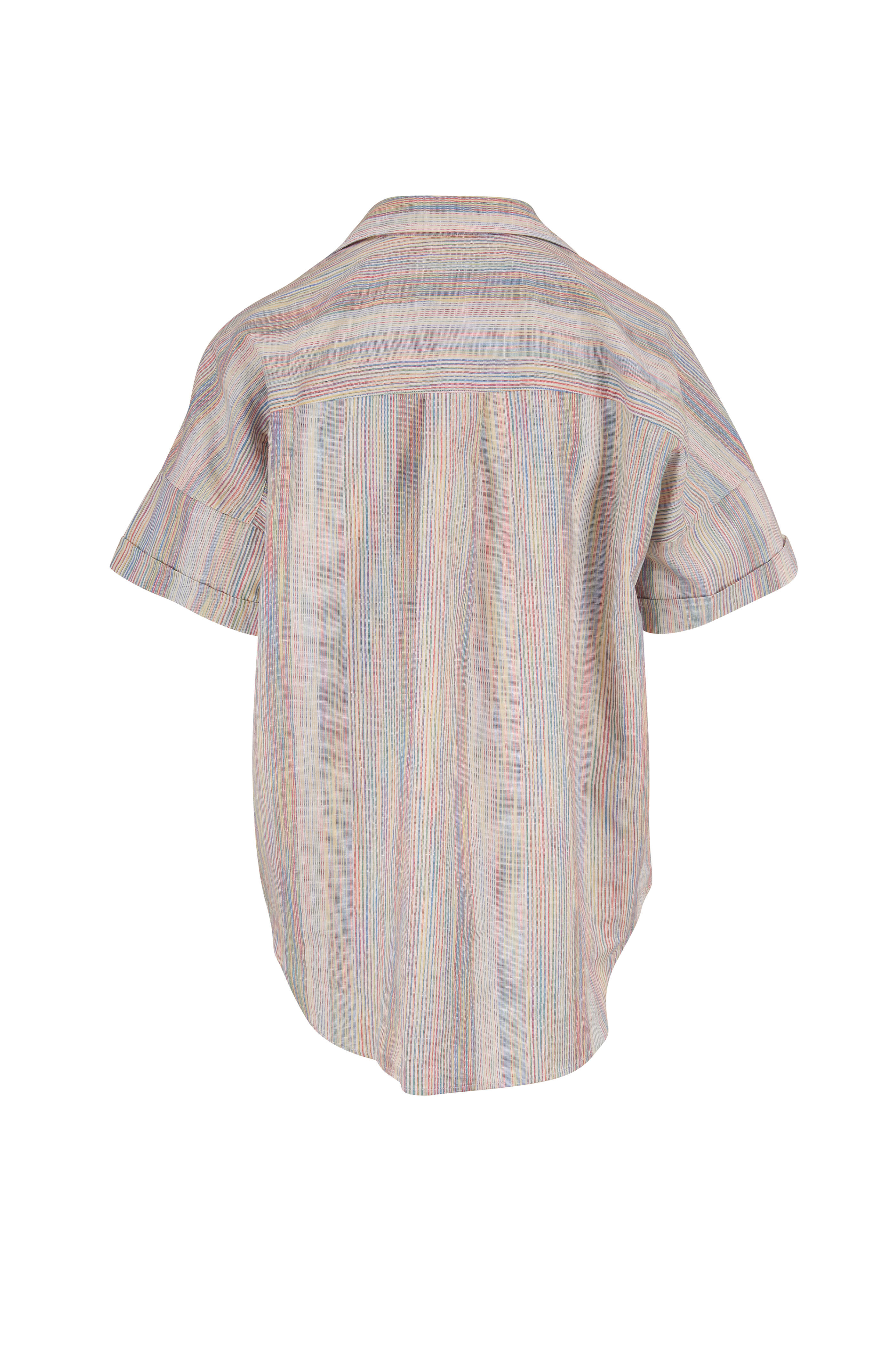 Spread collar. Folded cuffs. Chest patch pocket. Imported. 66% linen, 34% cotton. Machine wash.