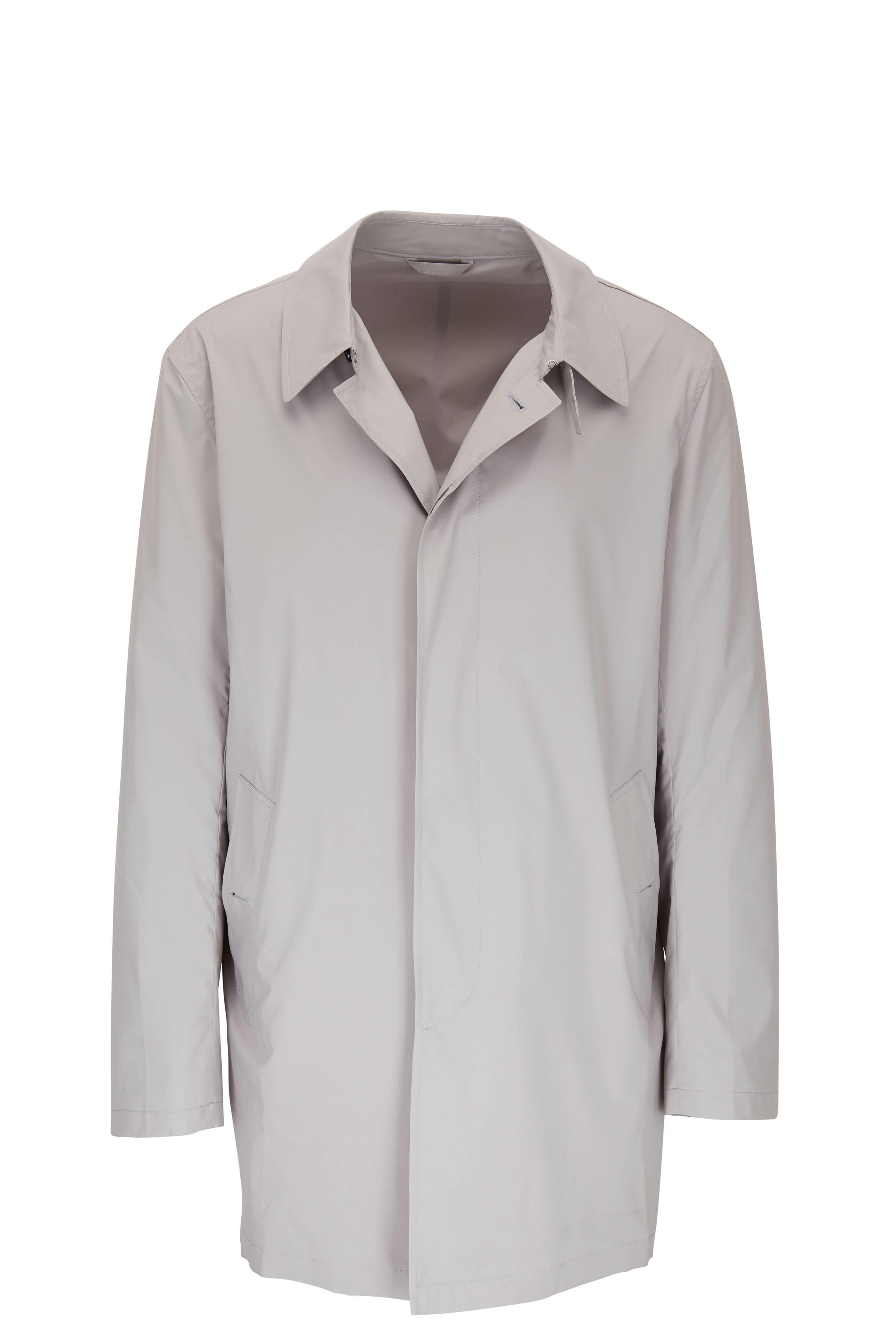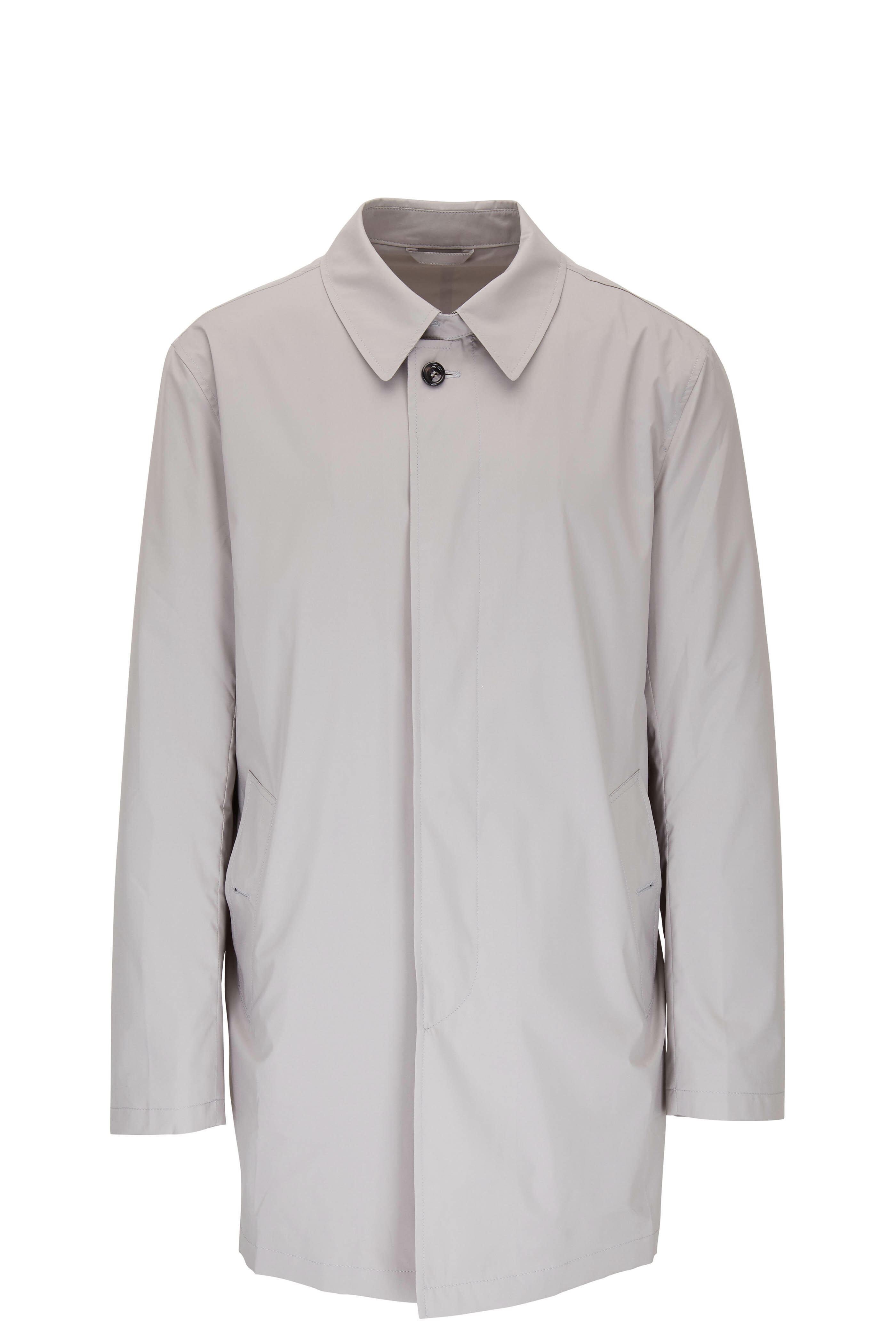 Spread collar. Concealed button placket. Lower button slip pockets. Back vent. Made in Italy. Water and wind proof. 100% polyester; lined. Machine wash.