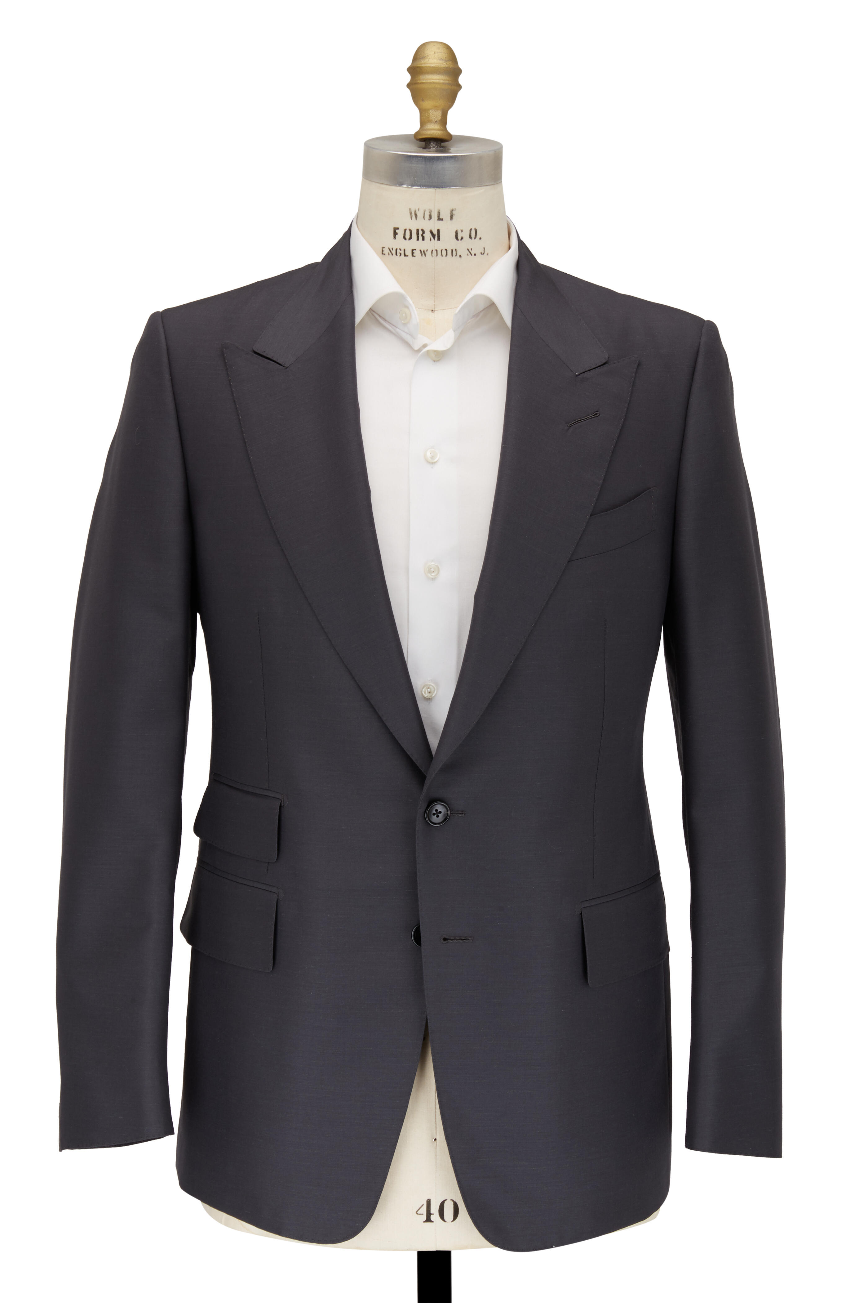 Slate Gray Mohair & Silk Peak Lapel Suit