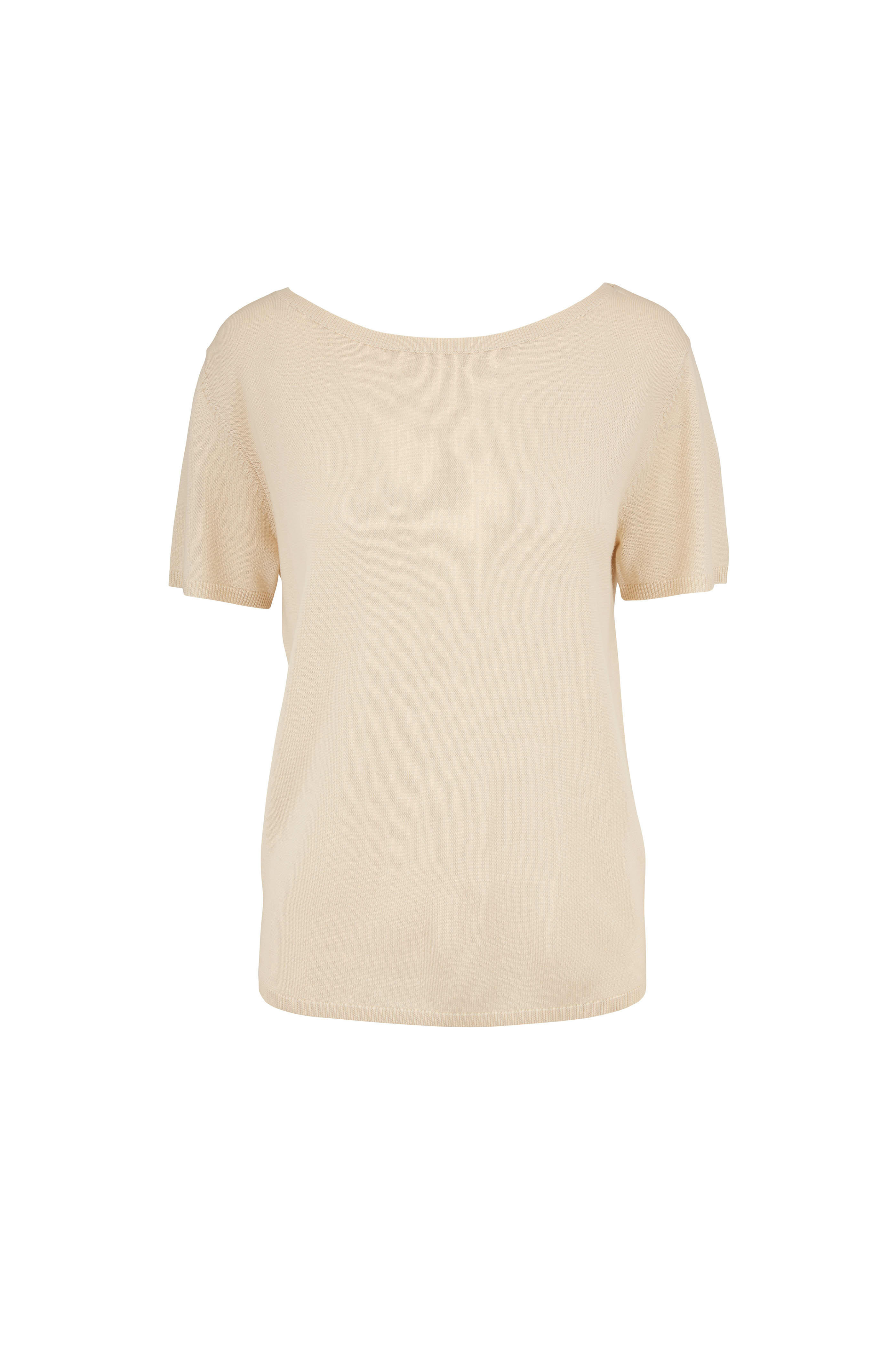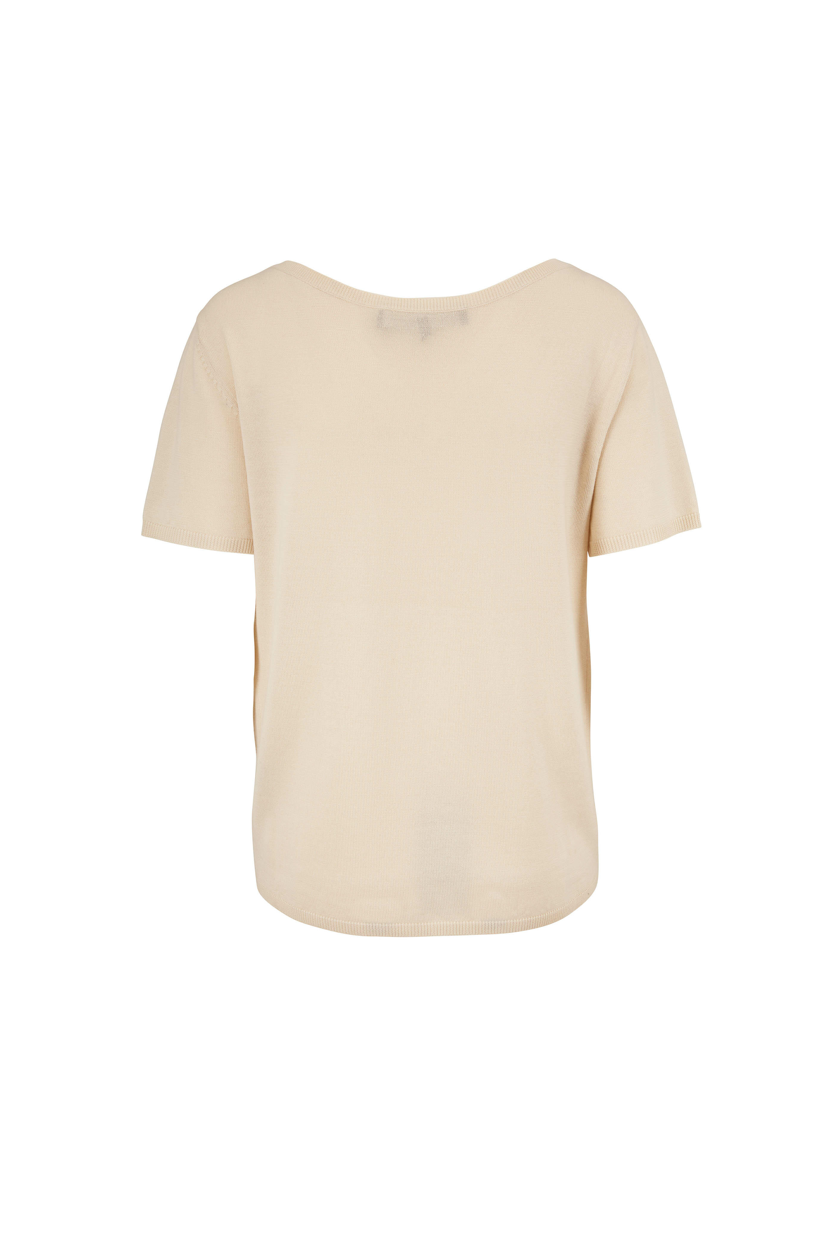 Cream Merino Wool & Silk & Cashmere Bateau Sweater