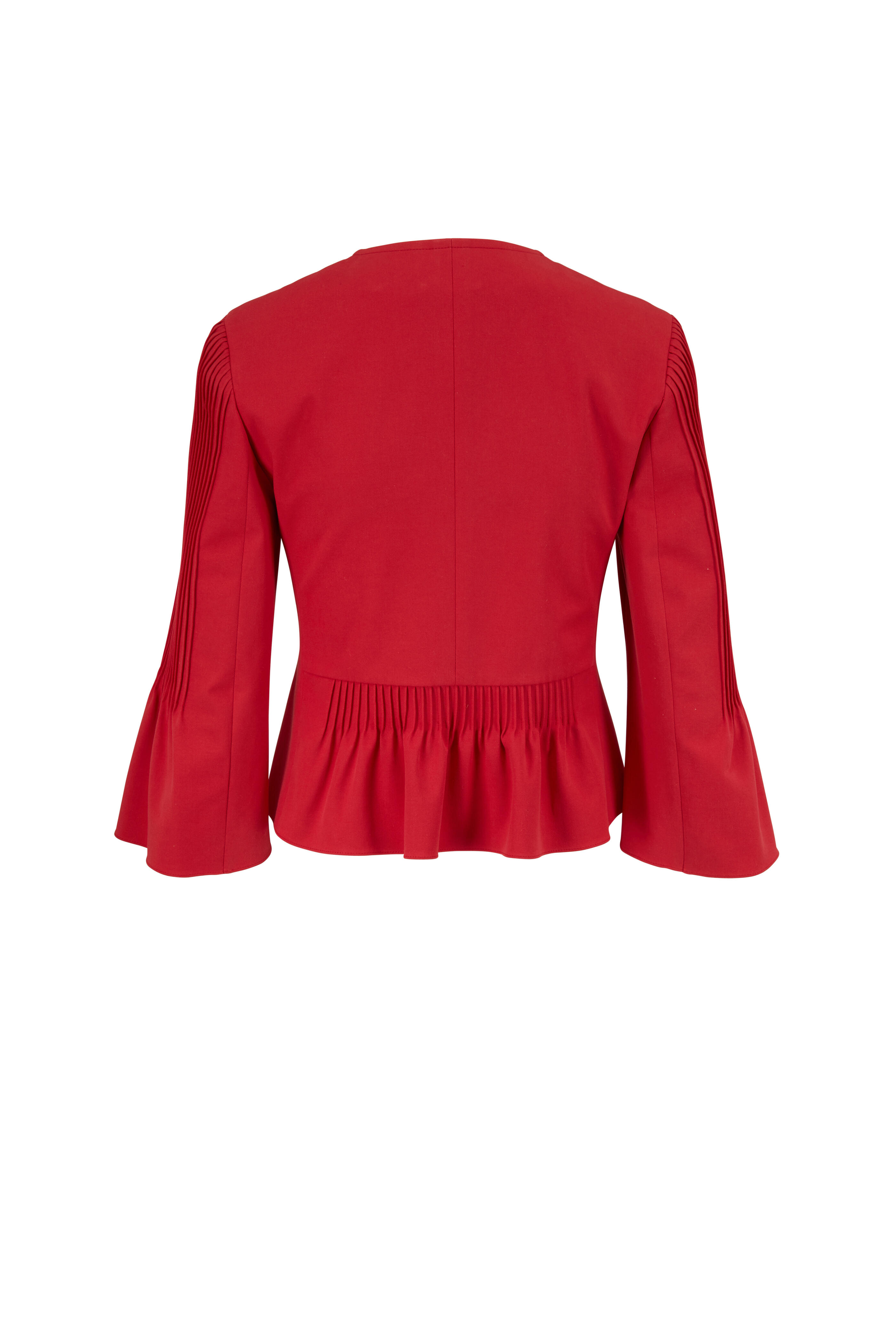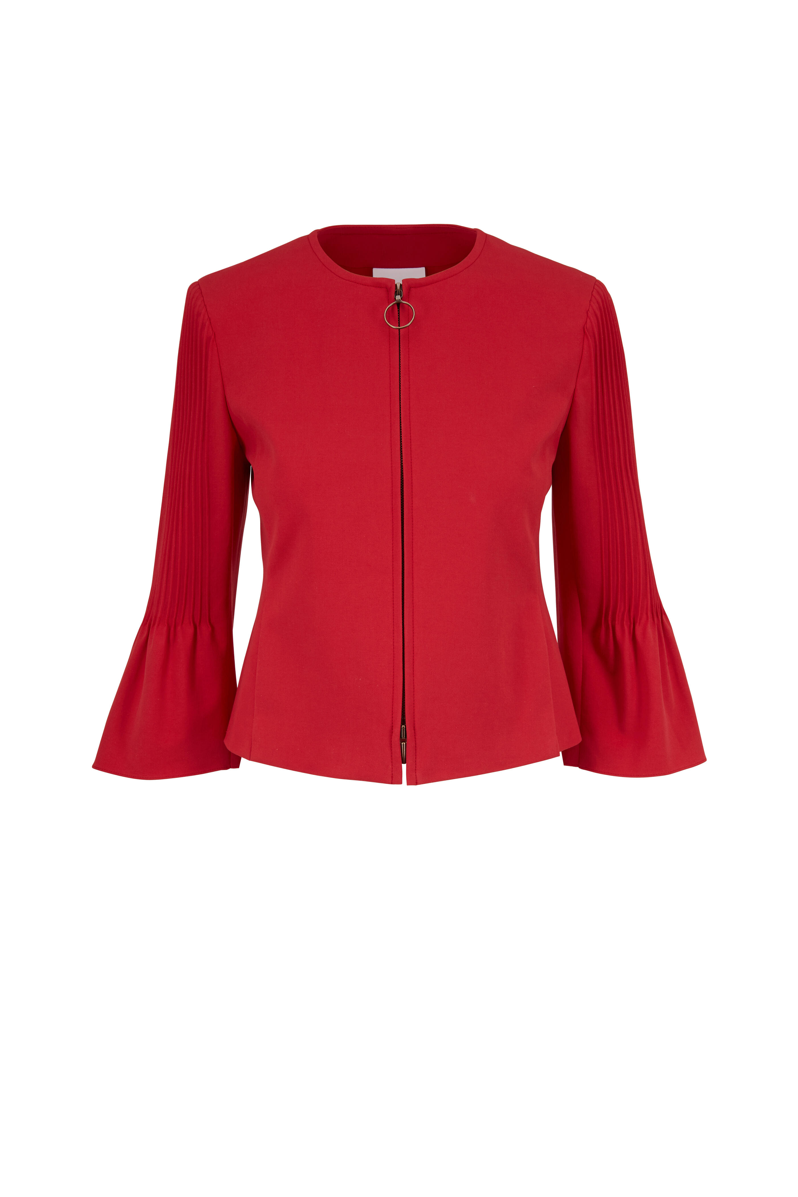 Luminous Red Pleated Sleeve Front Zip Jacket