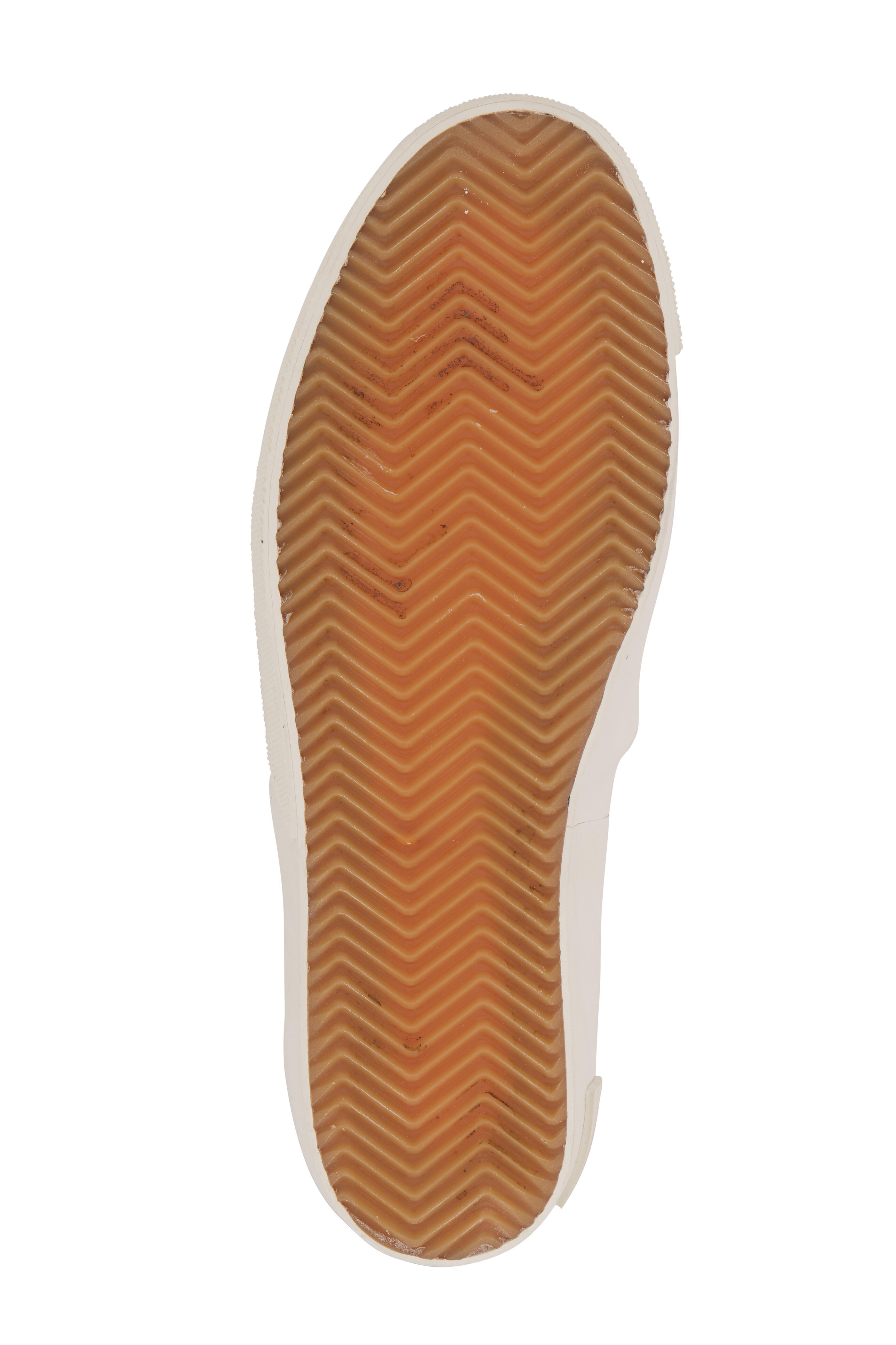 Suede and canvas upper. Round toe. Elastic side gores. Canvas lining, cushioned insole. Rubber sole. Made in Italy.