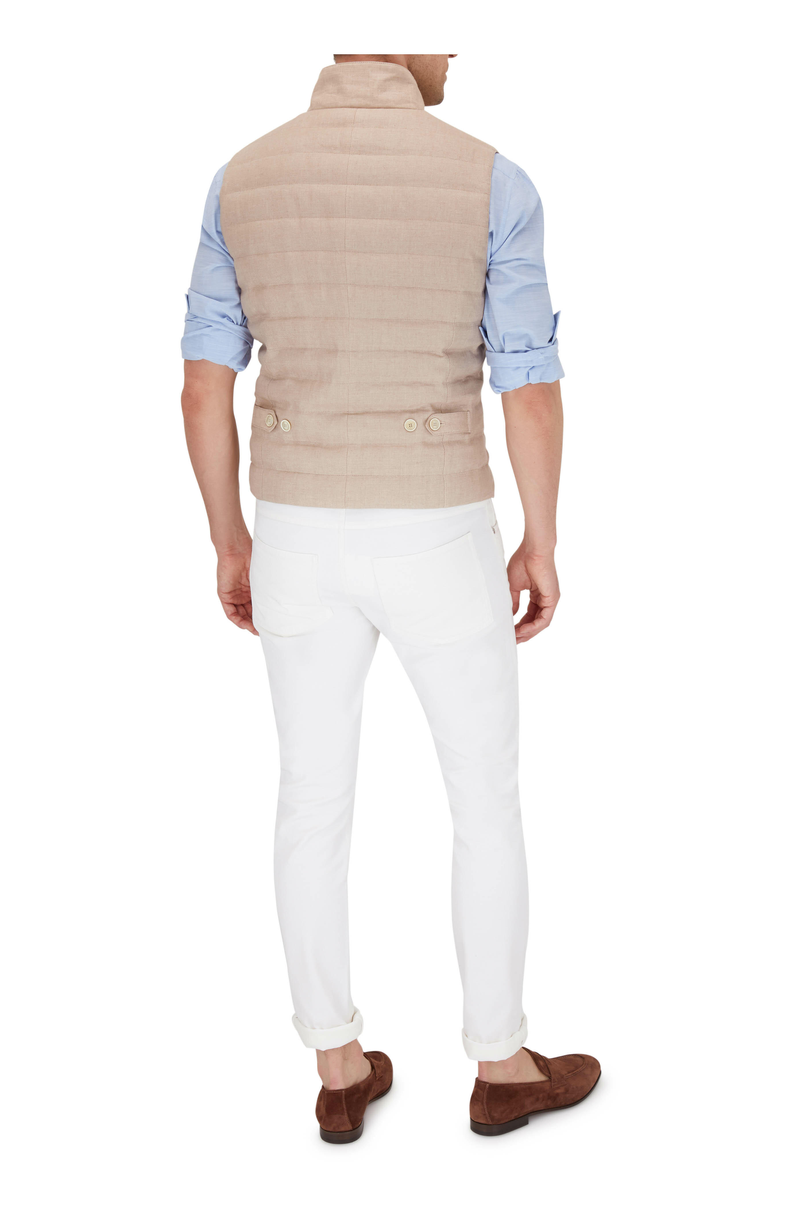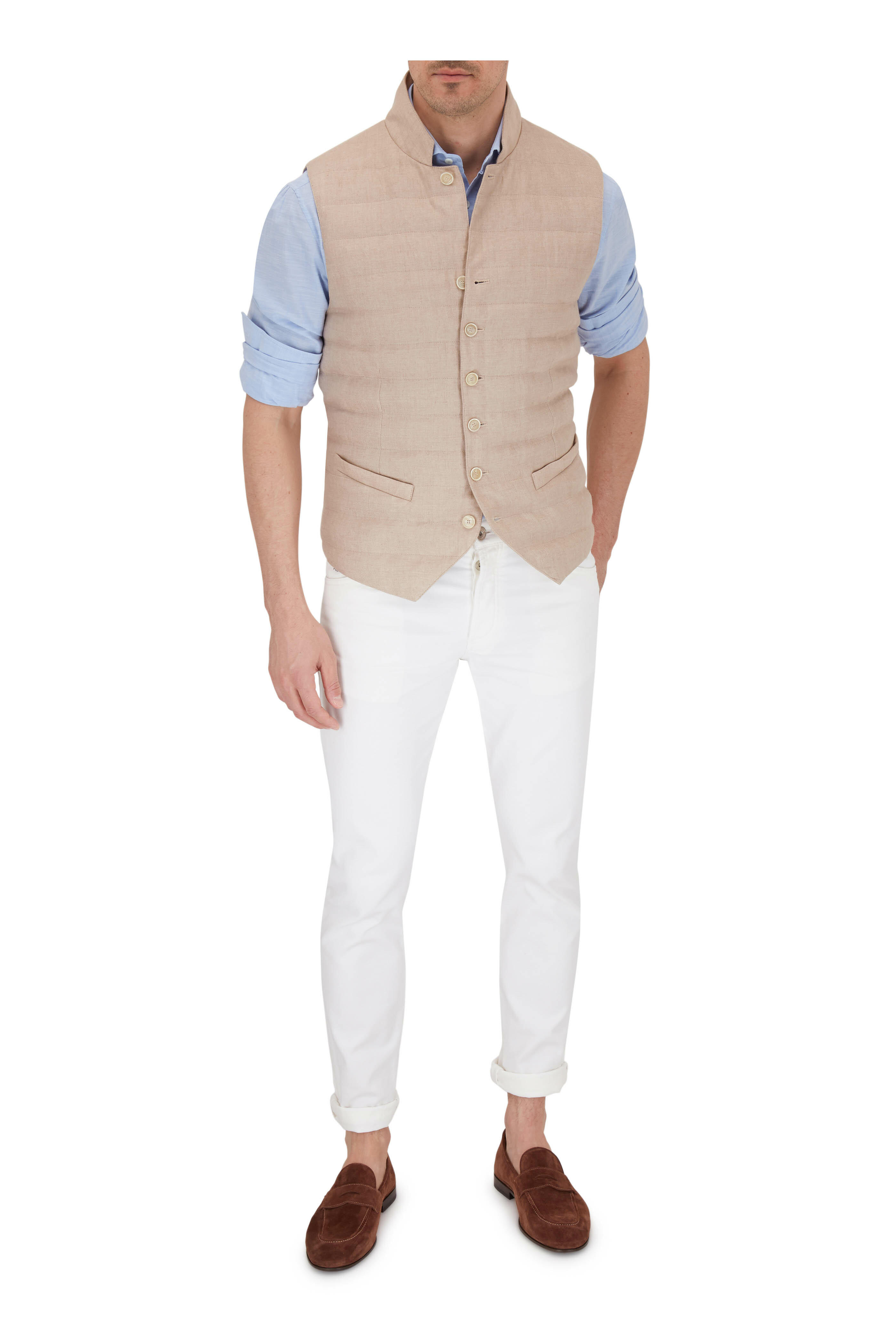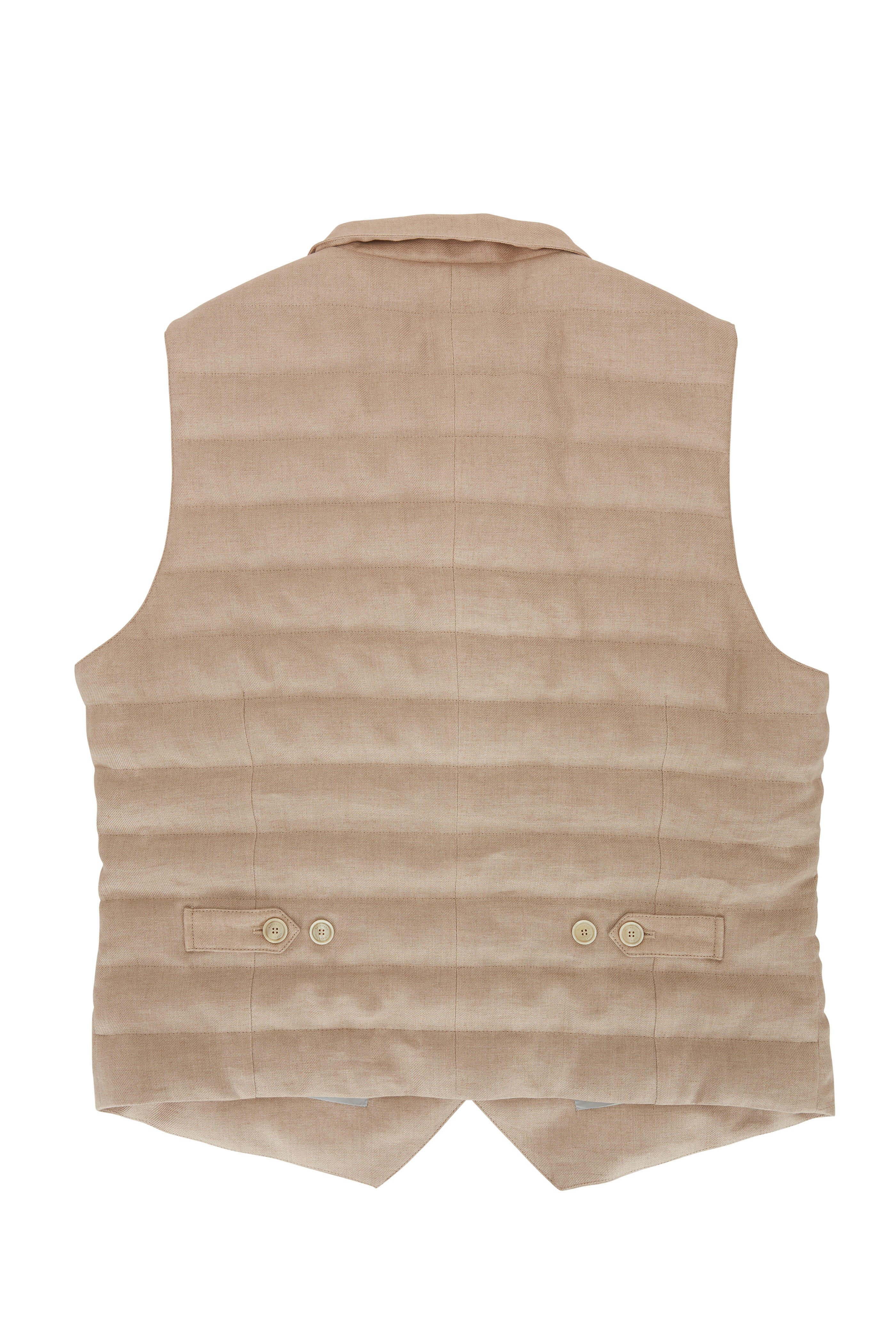 Light Brown Linen Quilted Button Front Vest