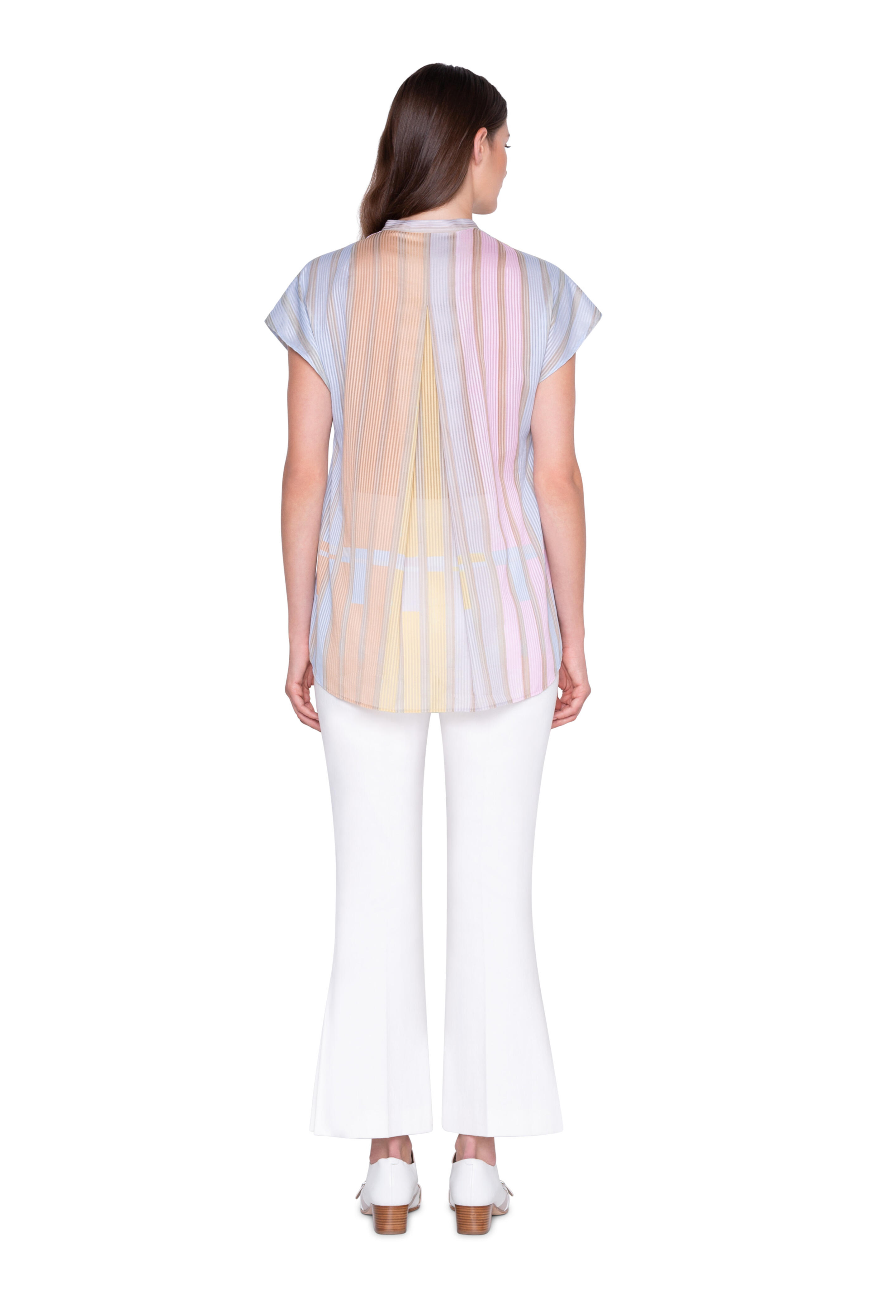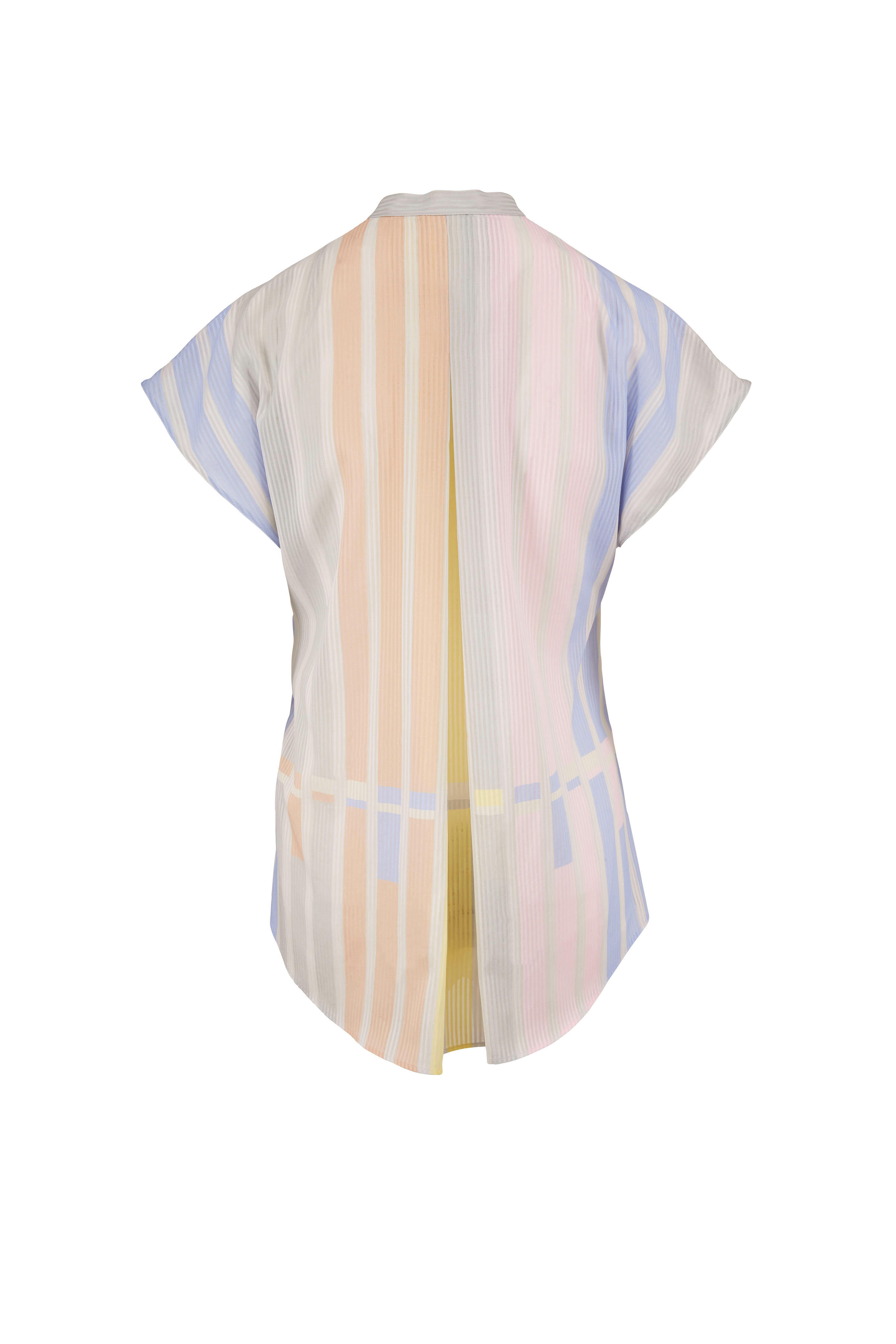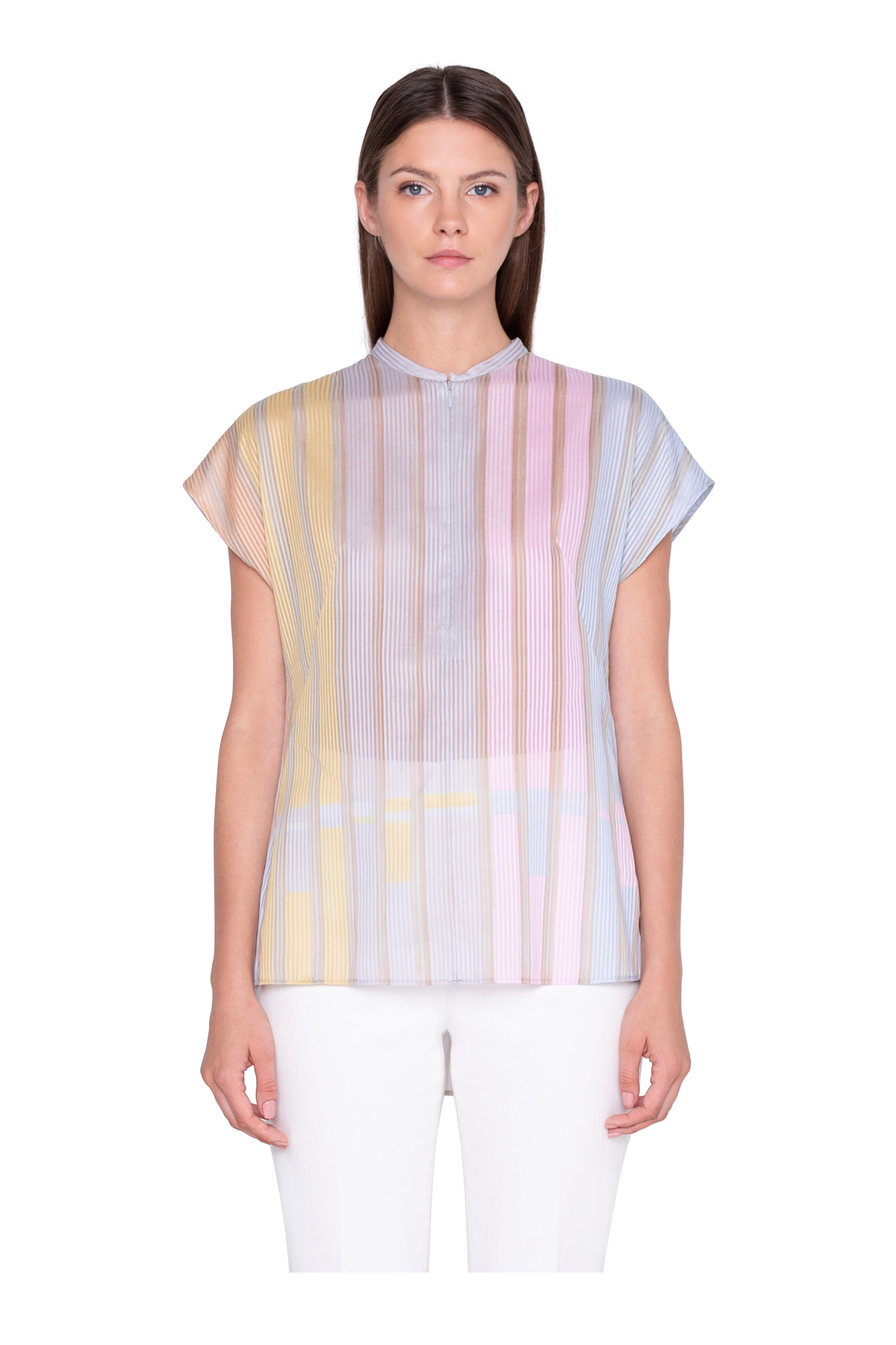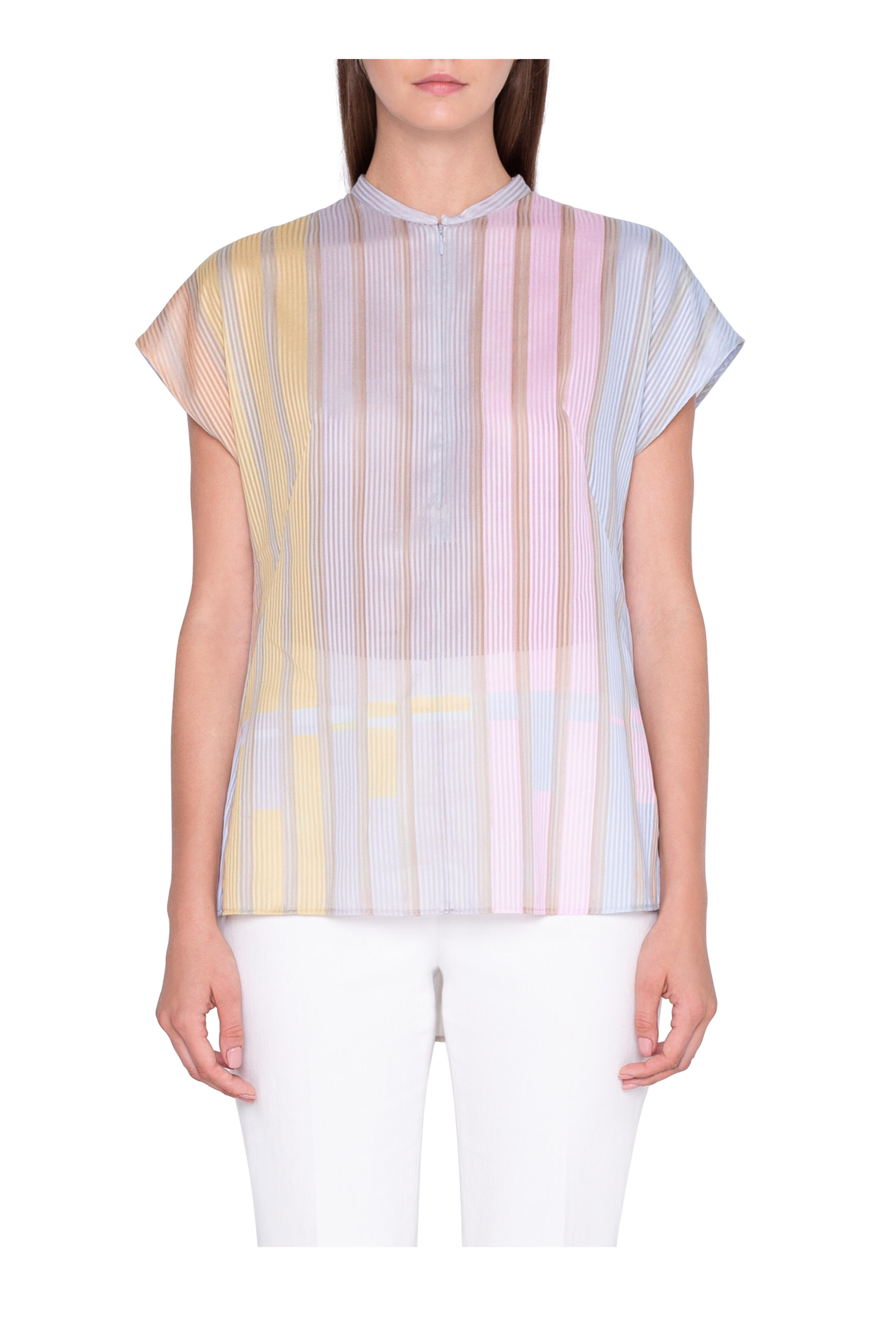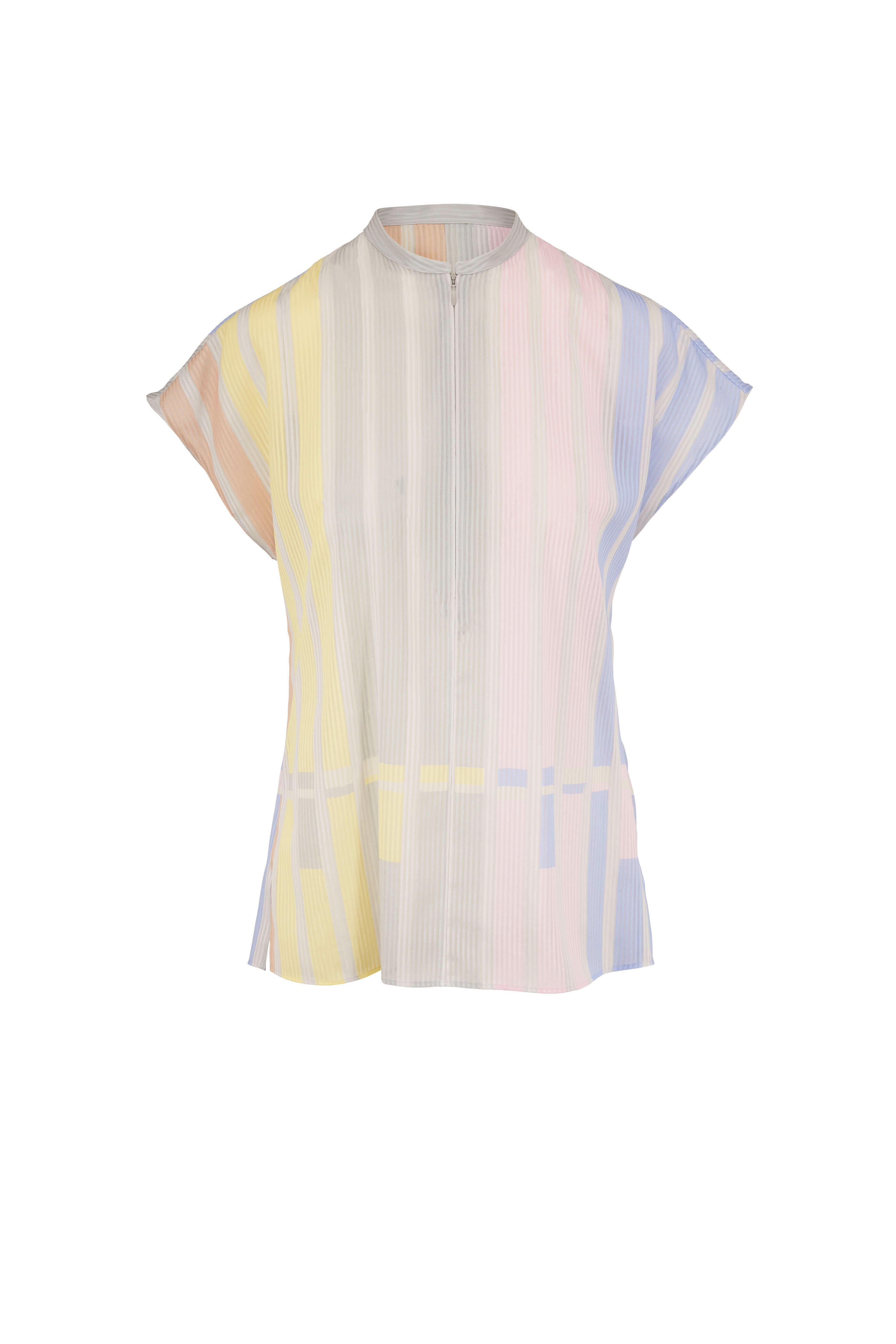 • Akris - Multicolor Pastel Stripe Front Zip Blouse