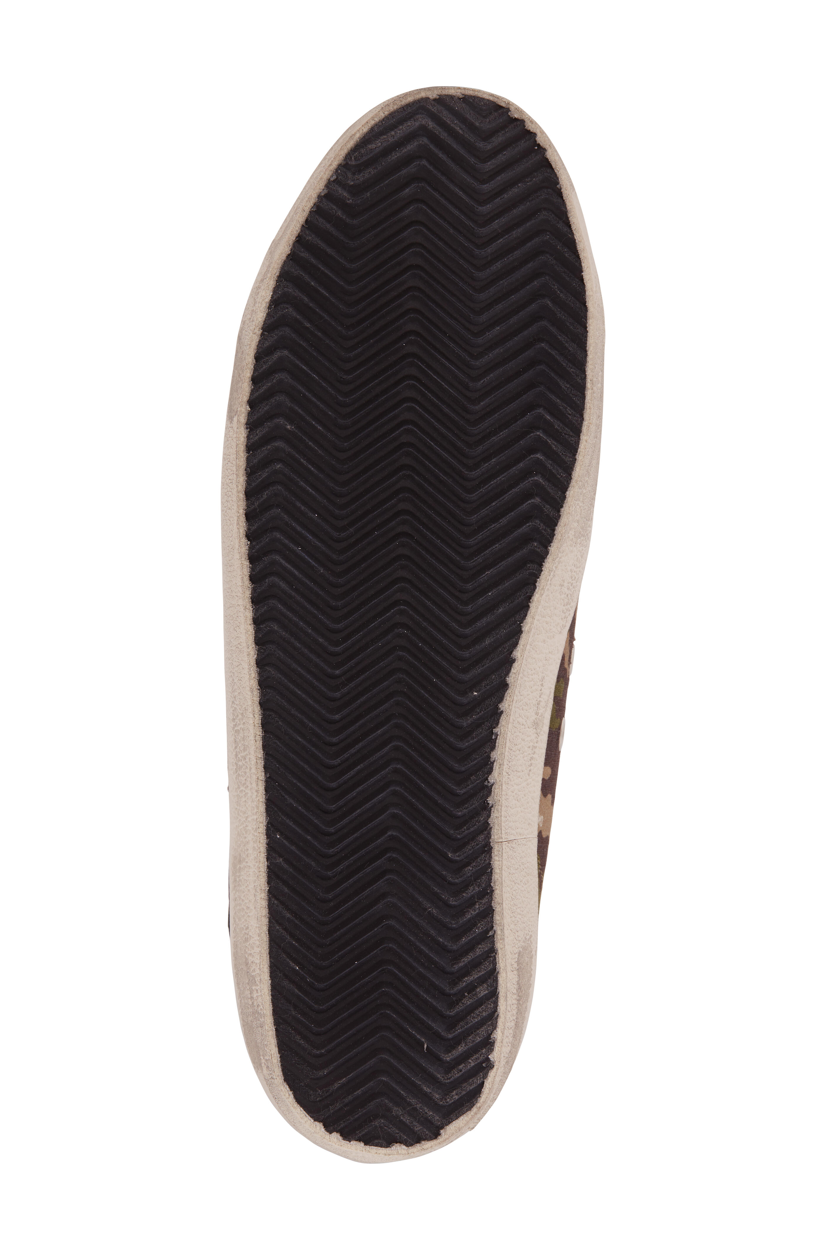 Canvas and suede upper. Round toe. Lace-up closure. Ice suede star detail. Contrast black leather logo embossed back heel. Unlined, detachable insole. Rubber sole. Made in Italy.