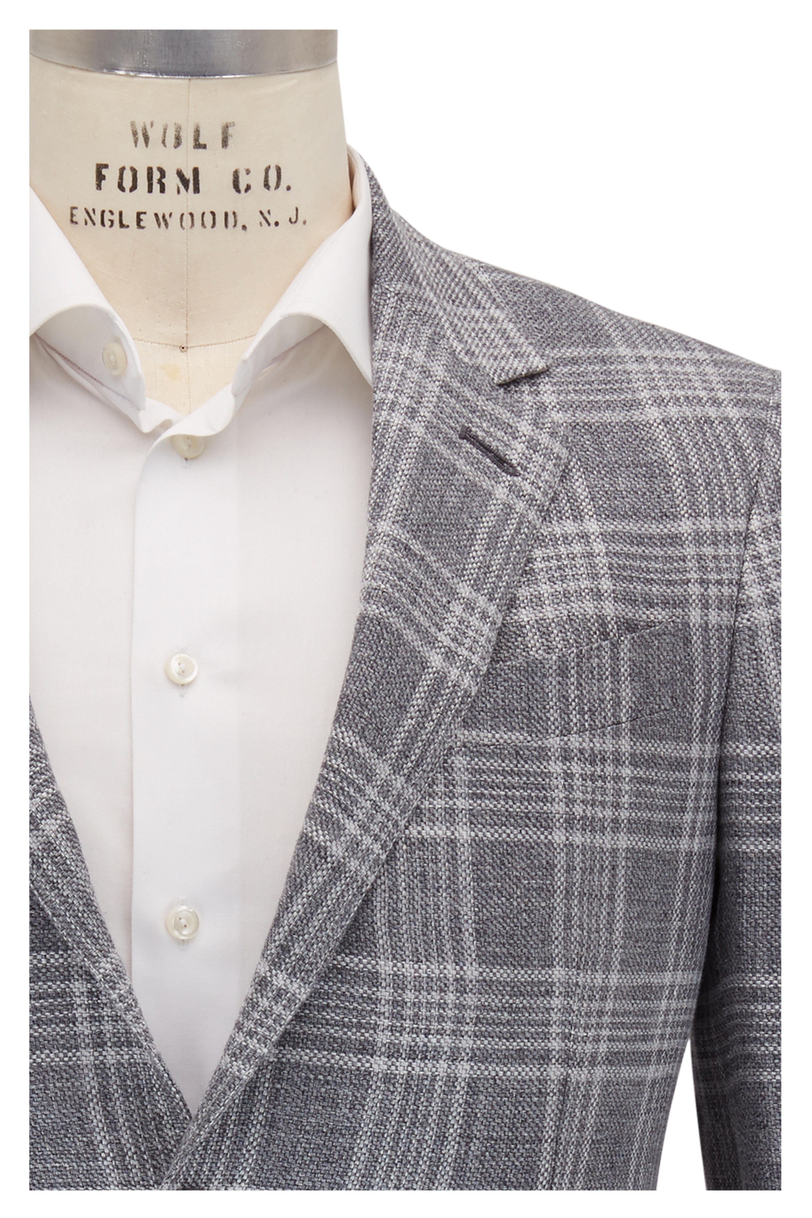 Notched lapels. Two button closure. Lower patch pockets; chest welt pocket. Double vent. Made in Italy. 74% linen, 24% wool, 2% silk; unlined. Dry clean.