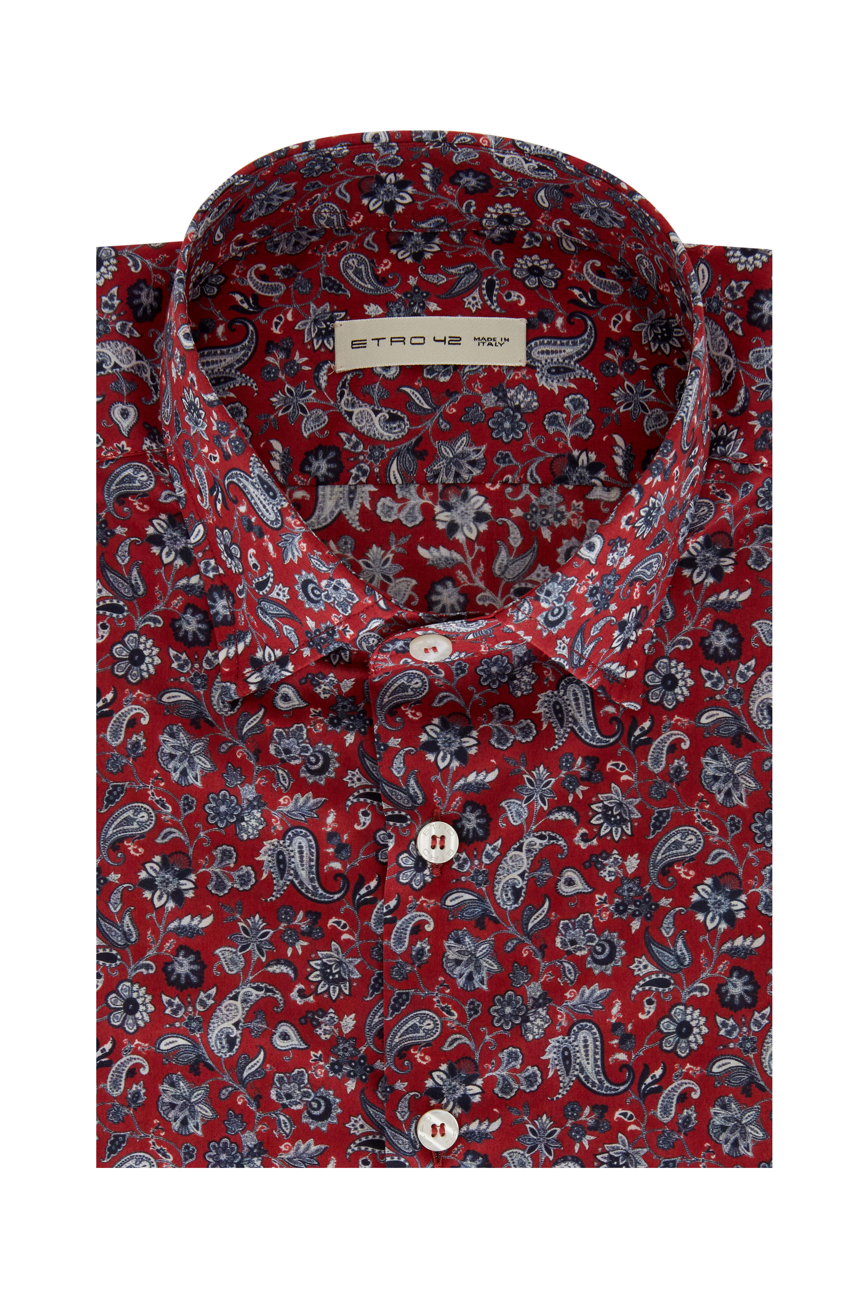Spread collar. Single button barrel cuffs. Made in Italy. 100% cotton. Dry clean.