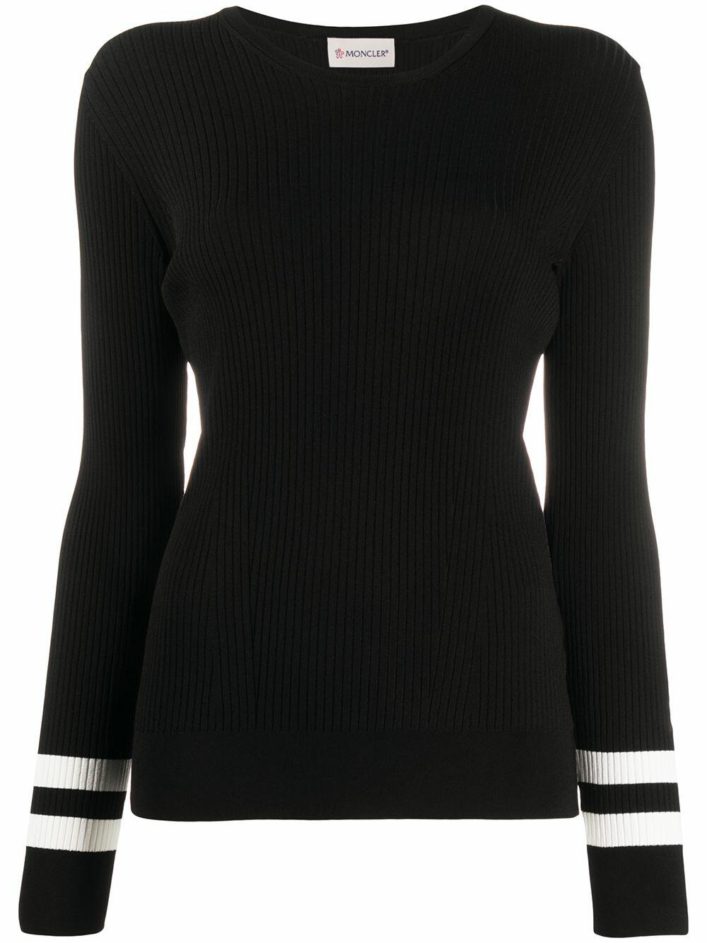 • Moncler - Black Crewneck Stripe Cuff Ribbed Knit Top