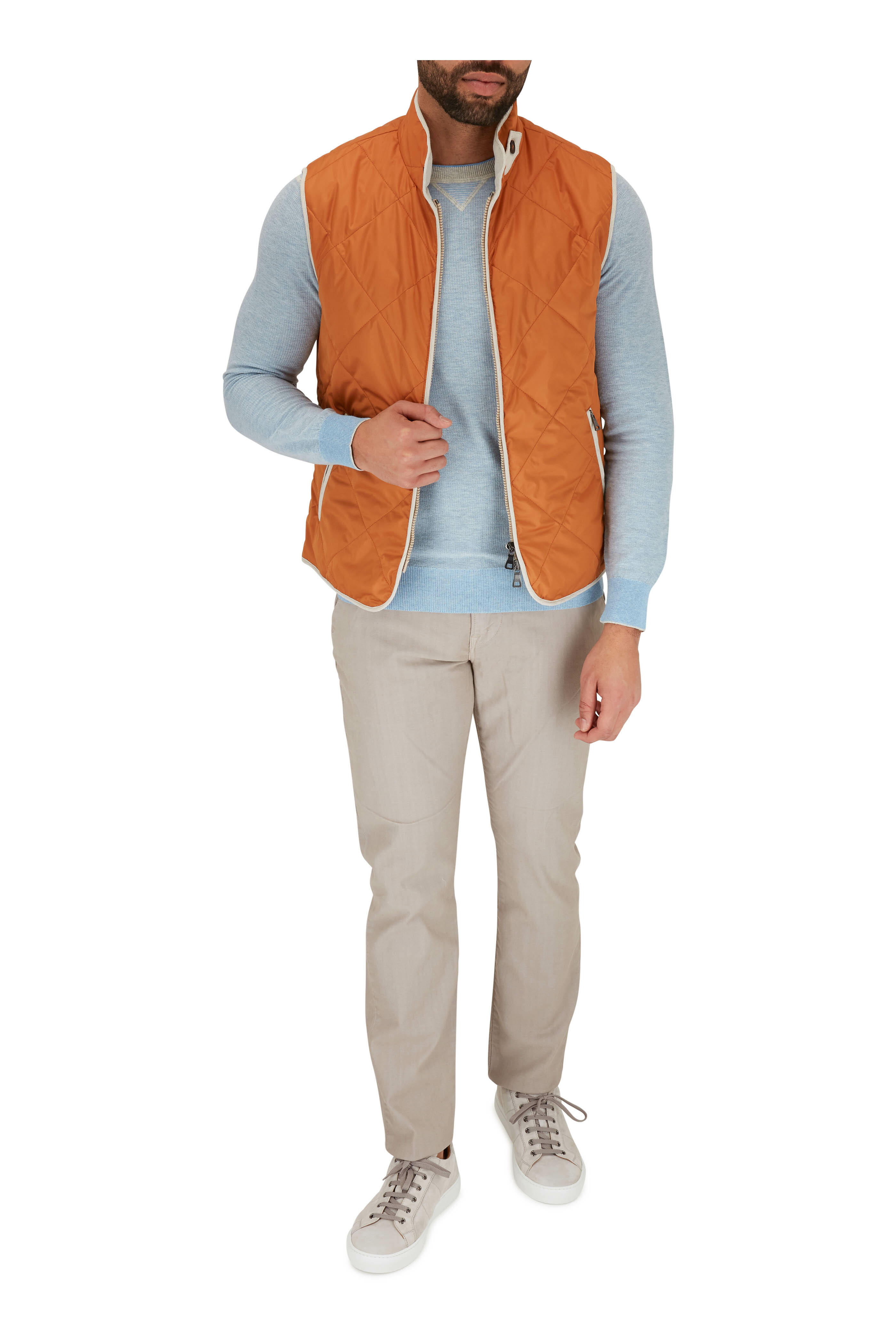 Stand collar; button-latch. Two-way front zip closure. Lower front slant zip pockets. Made in Italy. 100% polyester, trim: 100% linen. Machine wash.