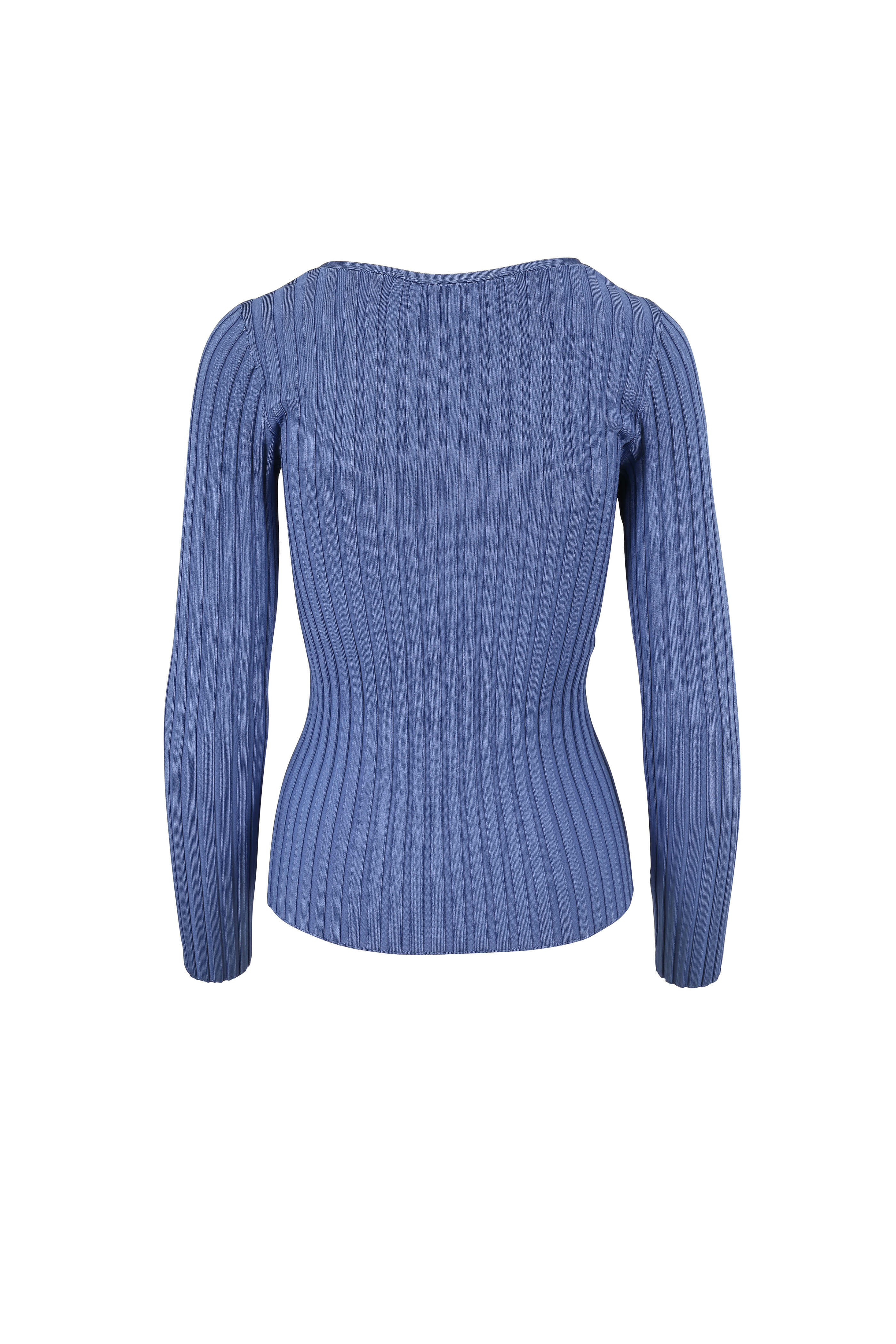 • Veronica Beard - Clara Blue Ribbed Scoop Neck Top