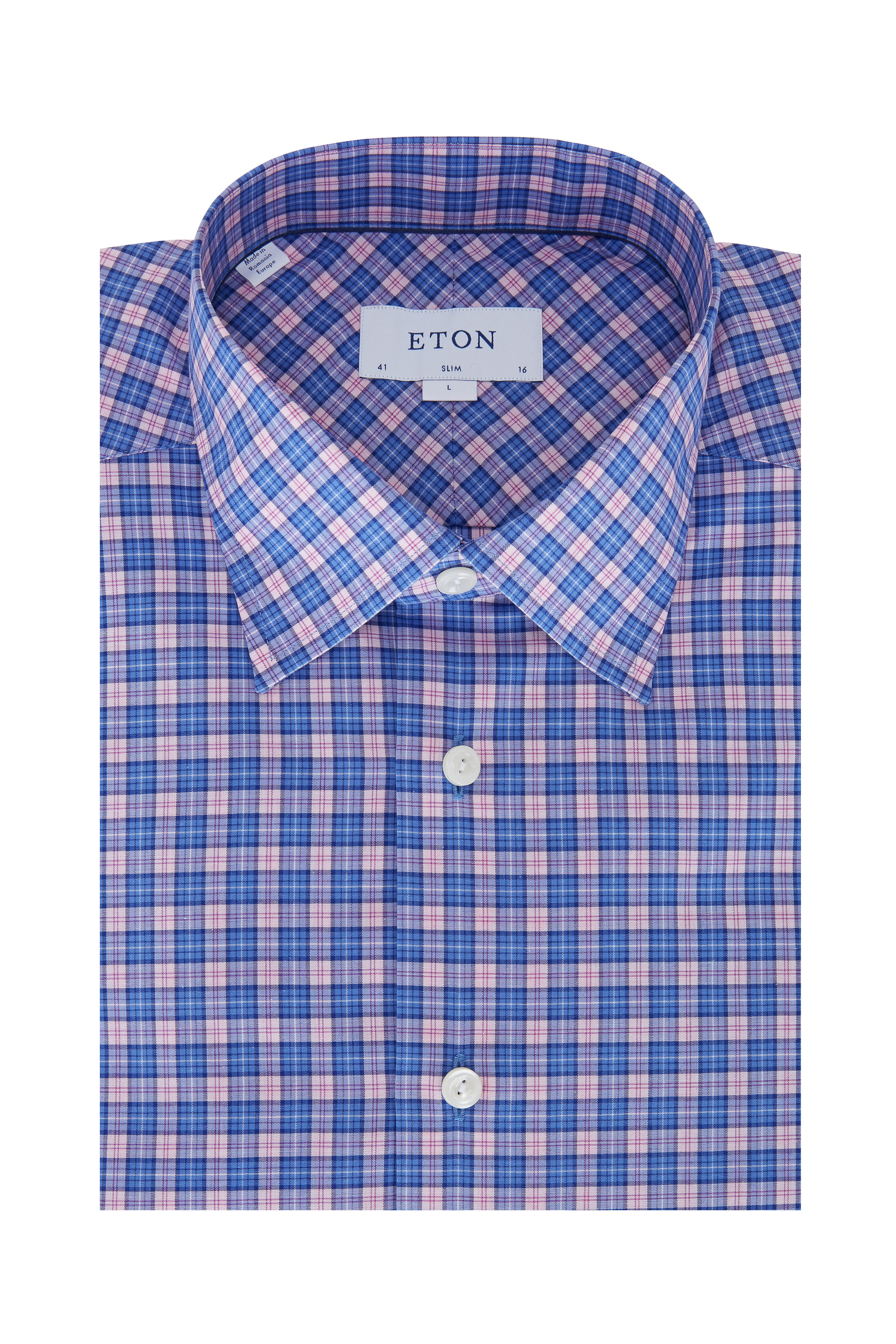 Blue & Pink Plaid Slim Fit Dress Shirt