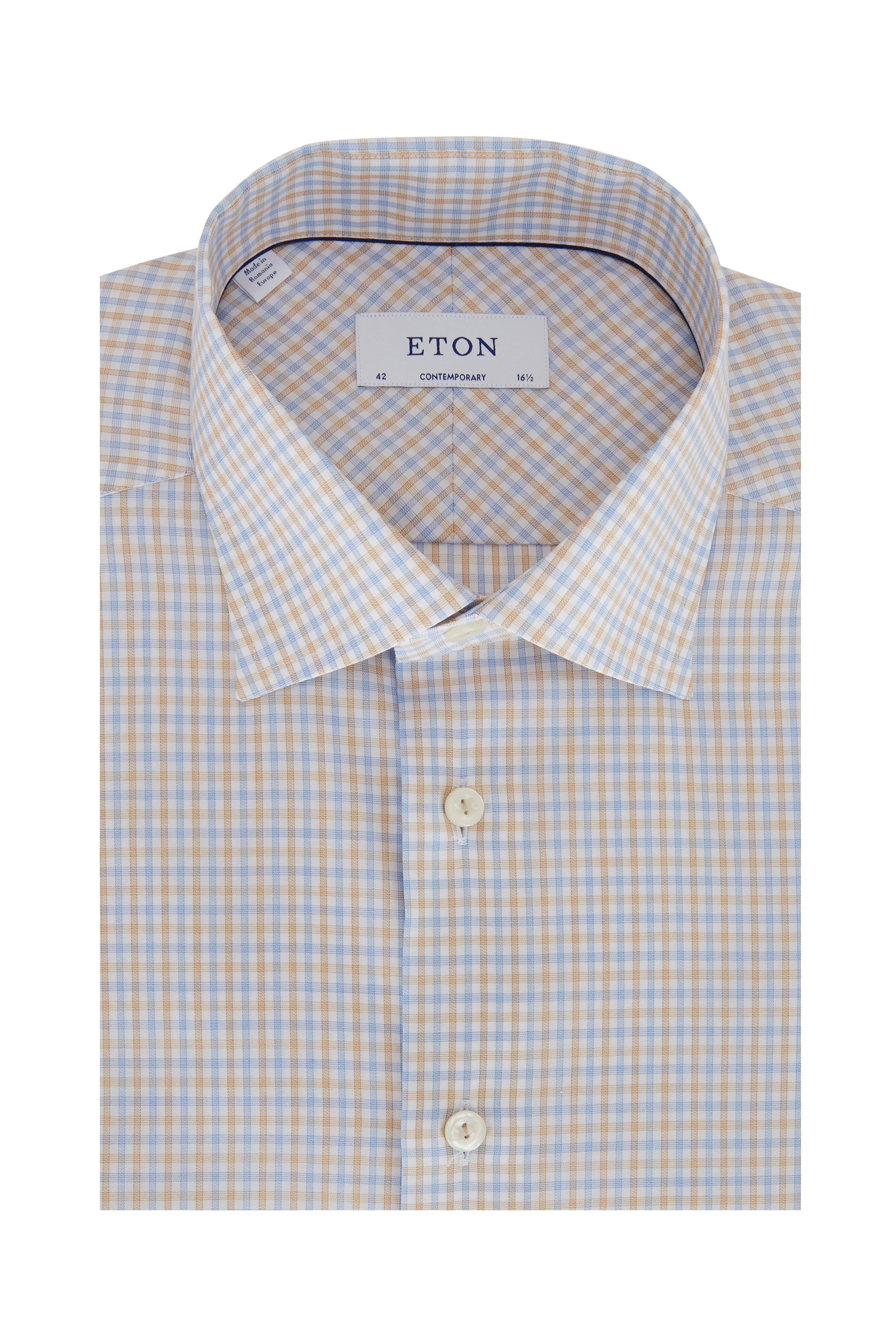 Blue & Tan Check Contemporary Fit Dress Shirt