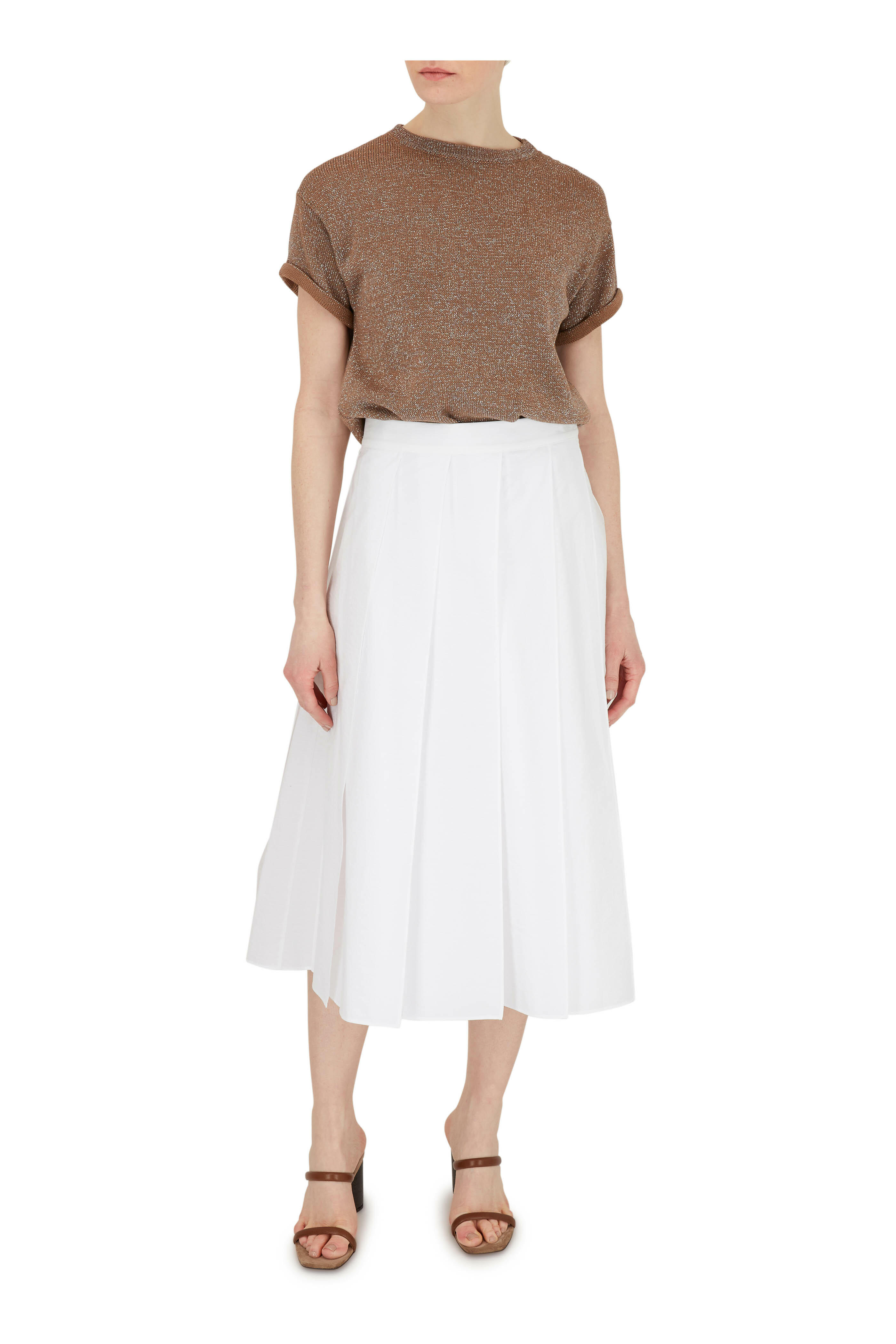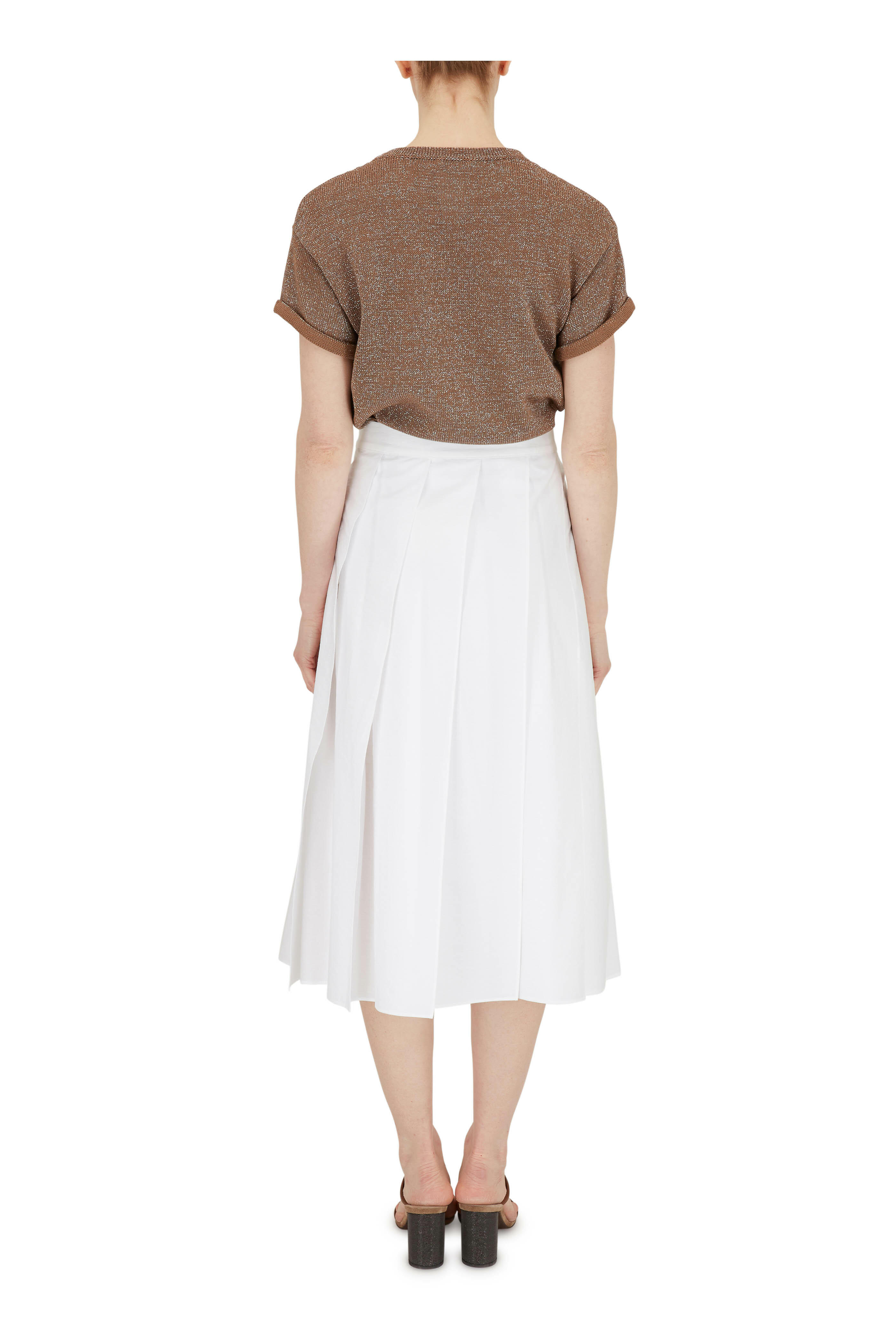 White Cotton Paneled Pleated Midi Skirt