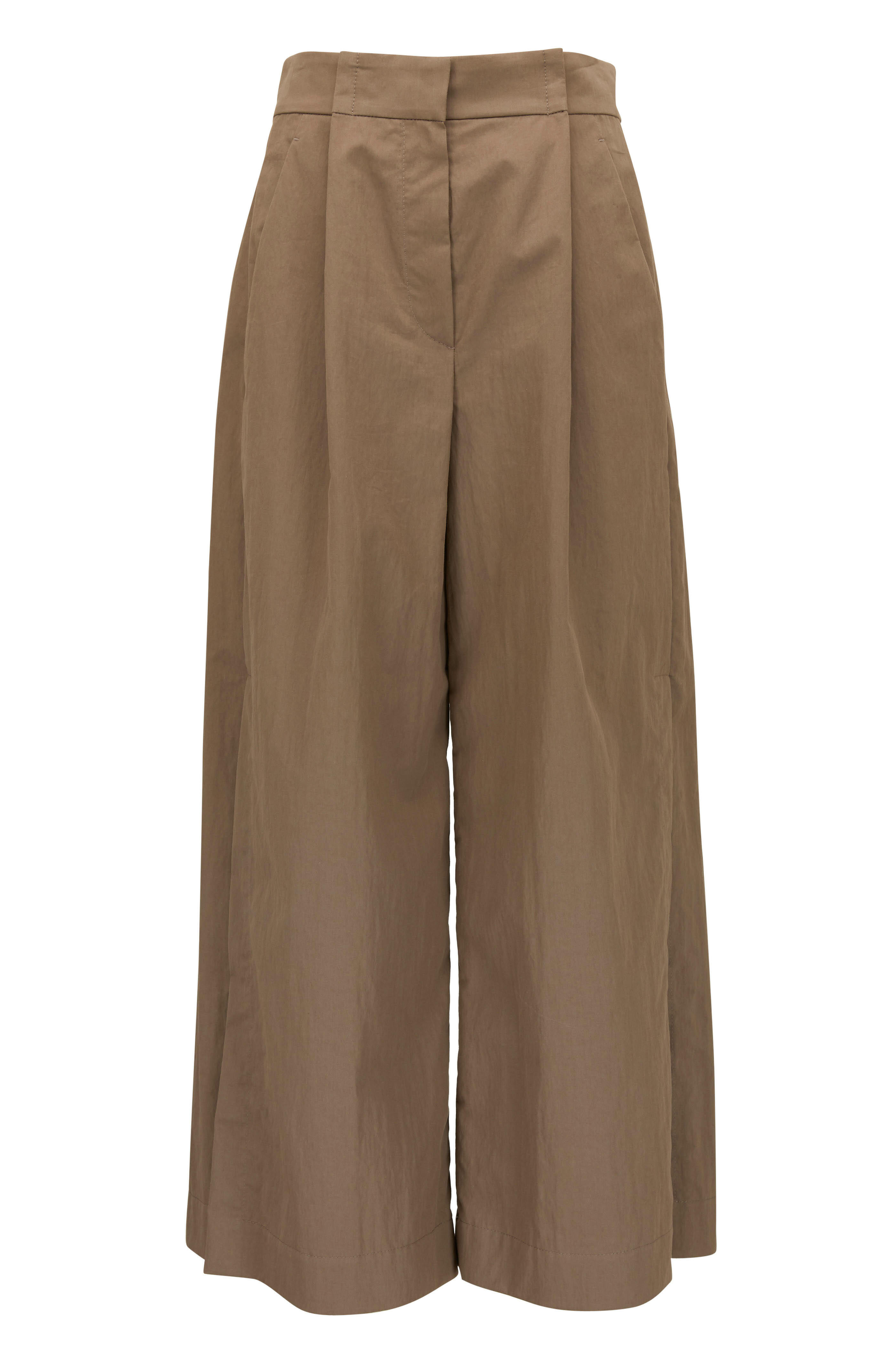 Khaki Crisp Cotton Split Wide Leg Pleated Pant
