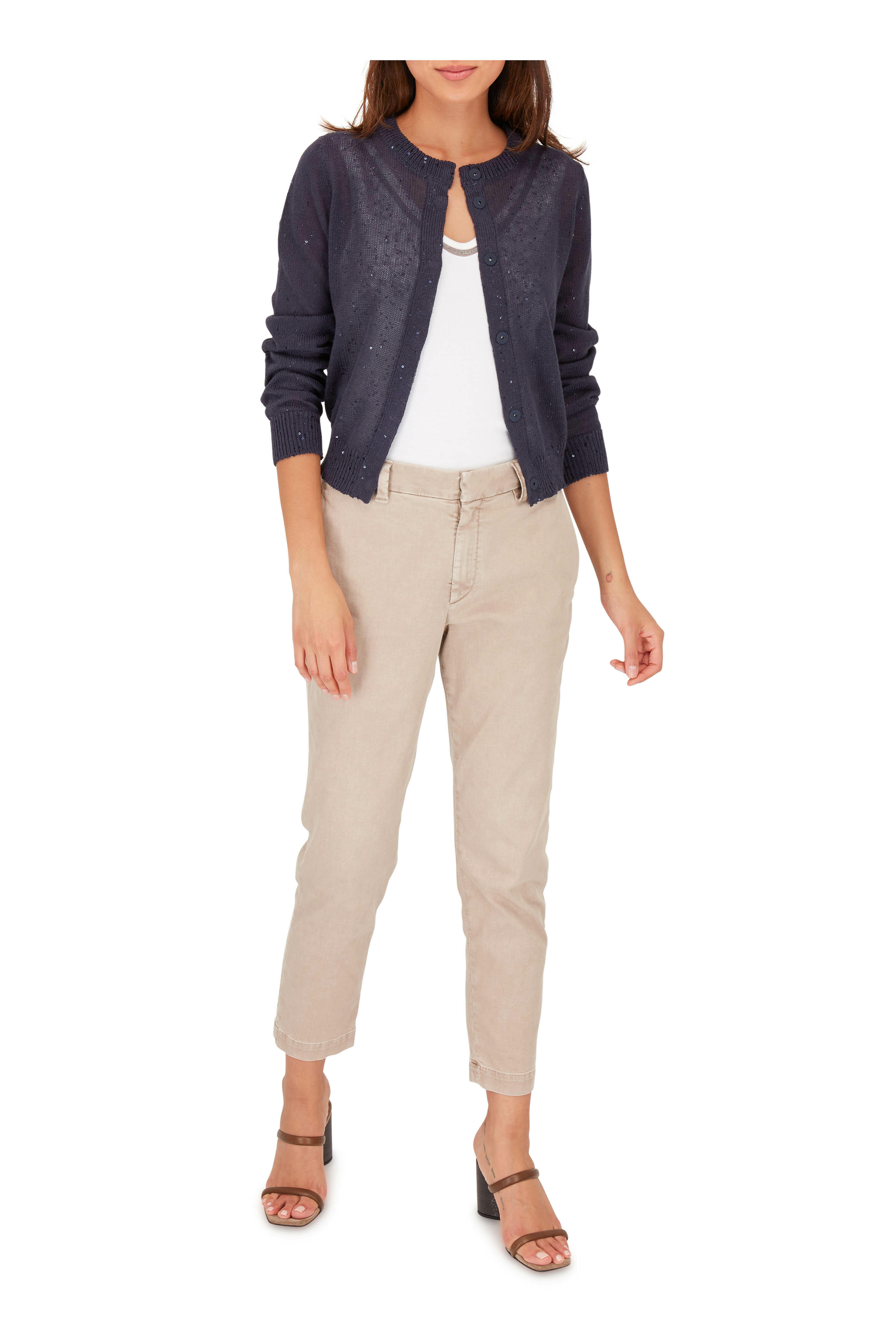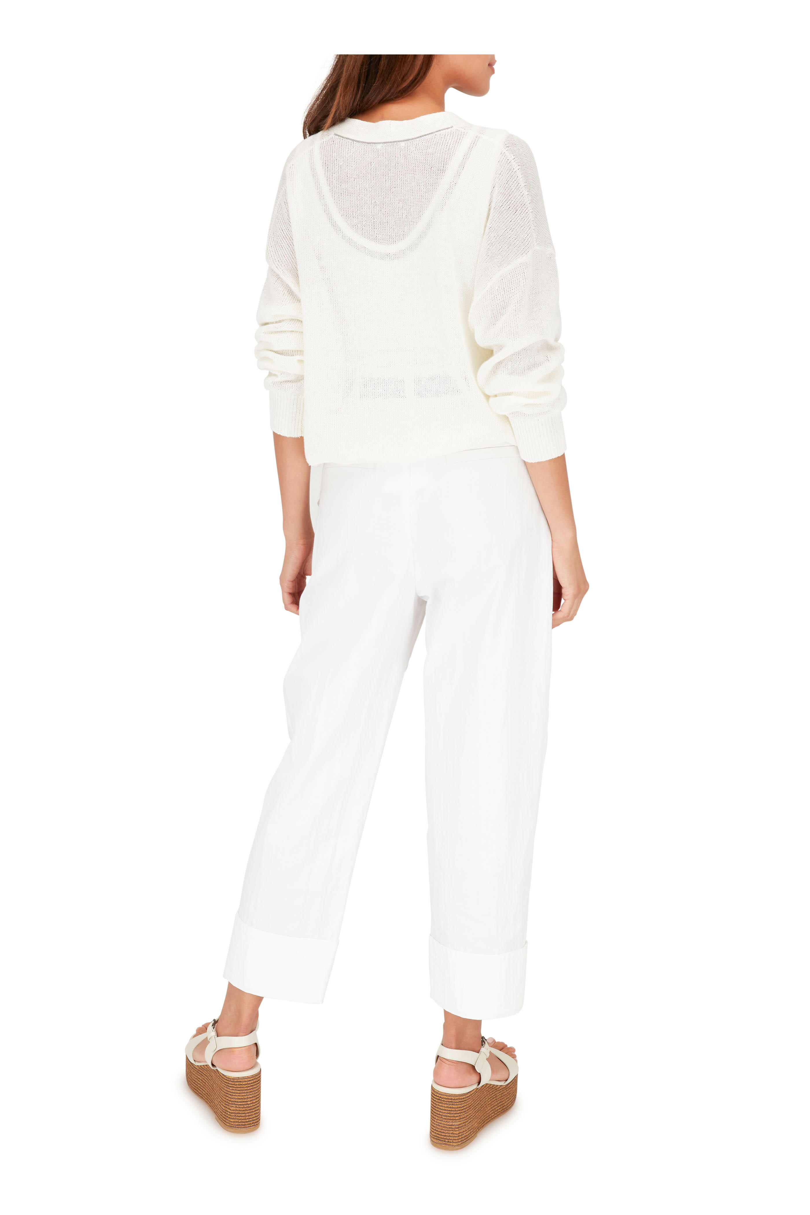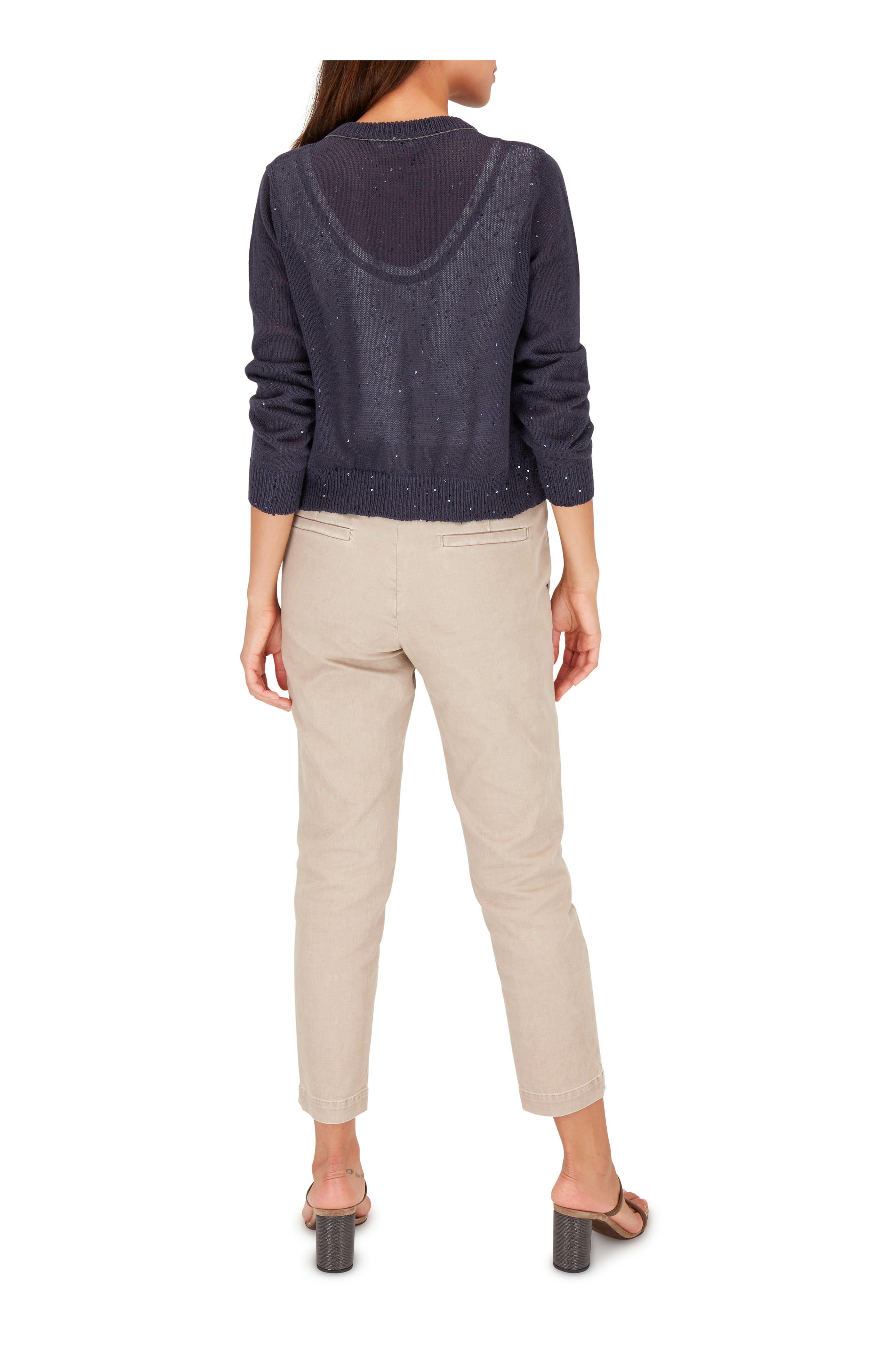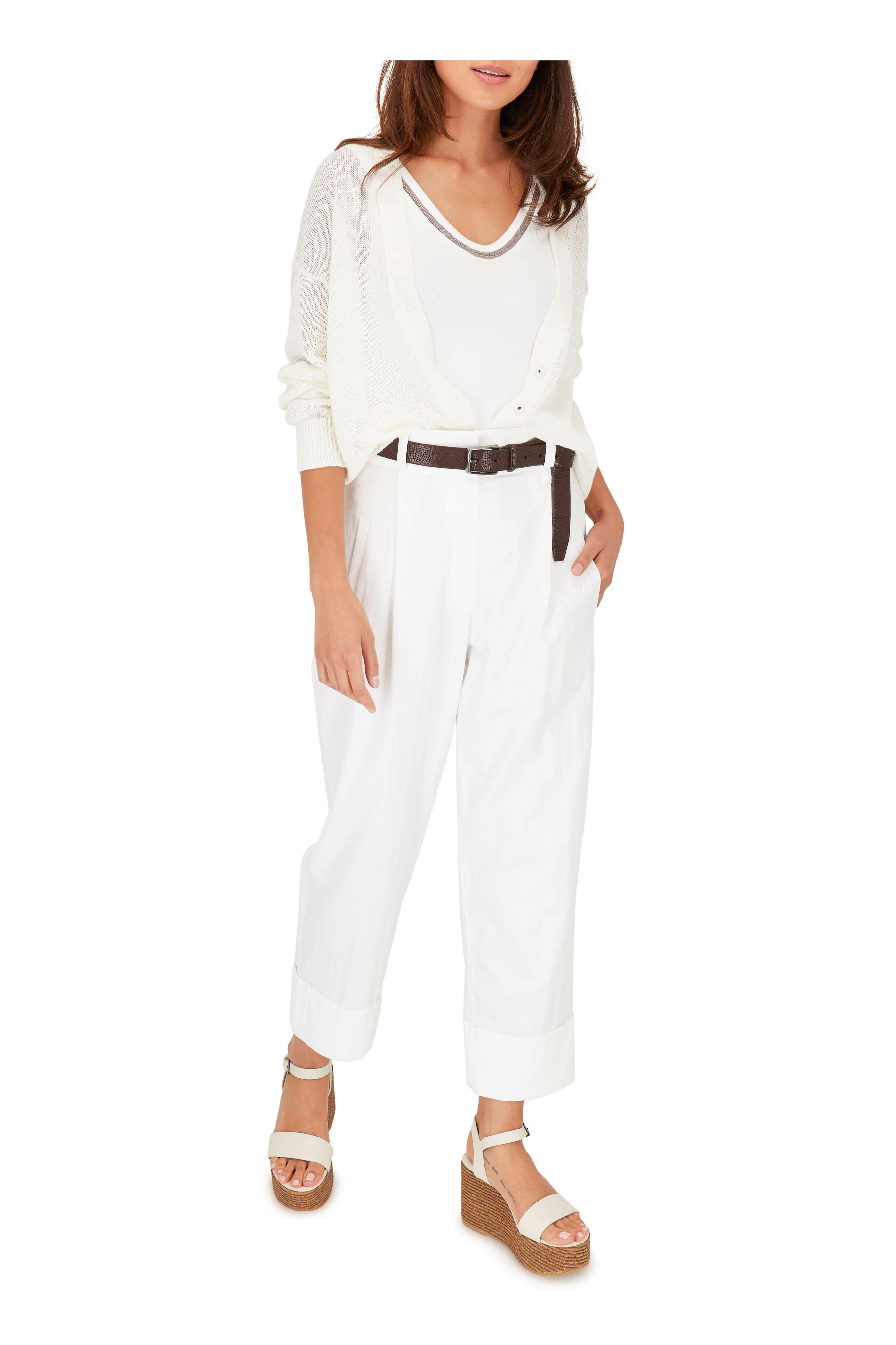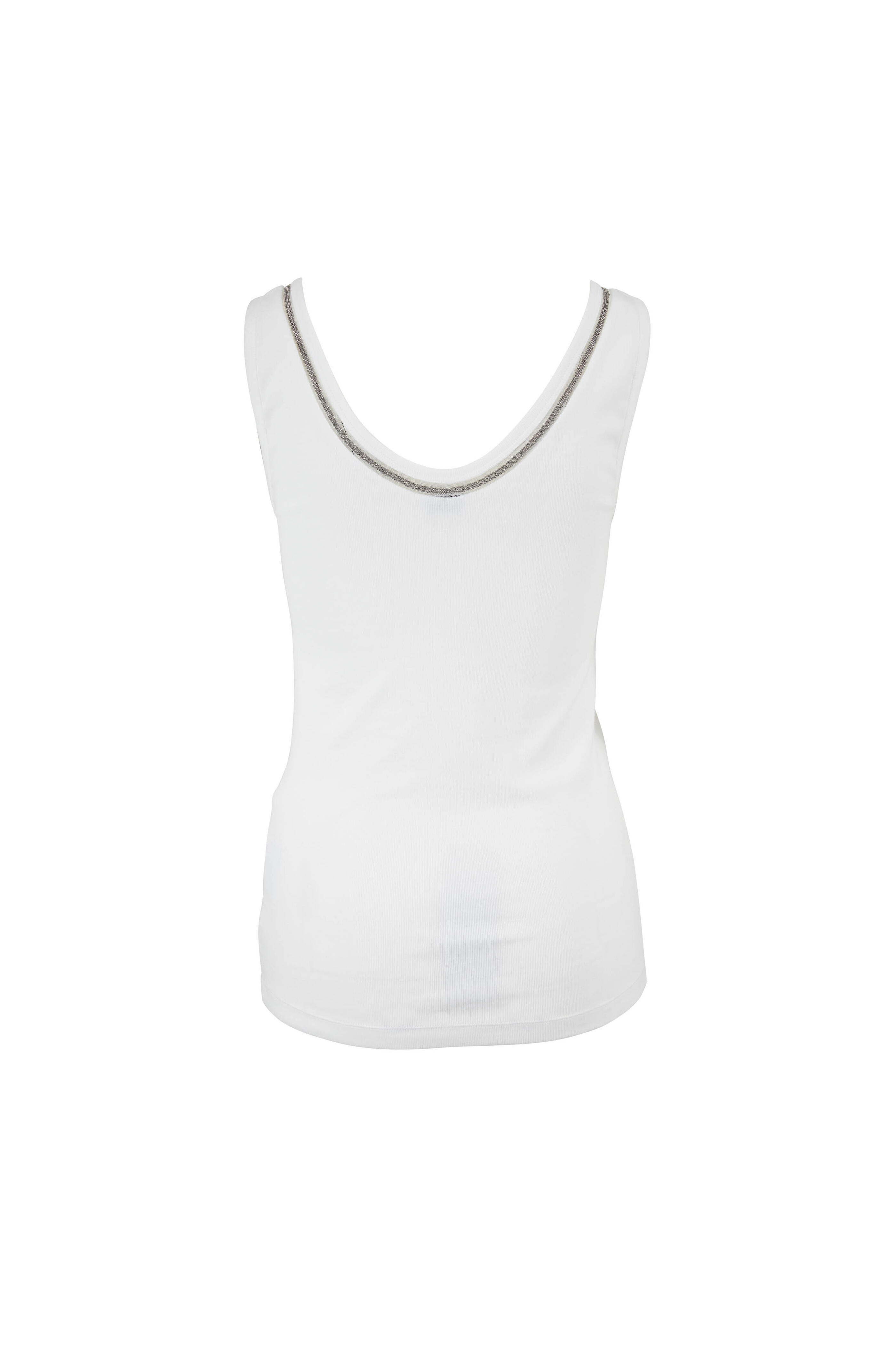 Scoop neckline; monili and mesh trim. Scoop back. Made in Italy. 94% cotton, 6% elastane. Hand wash.